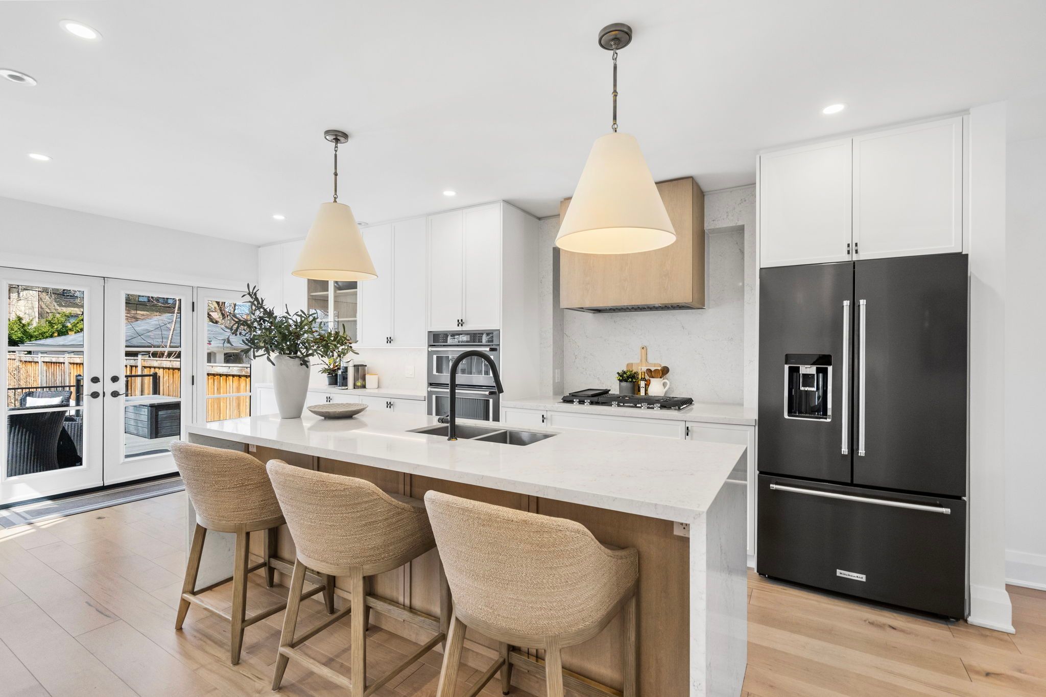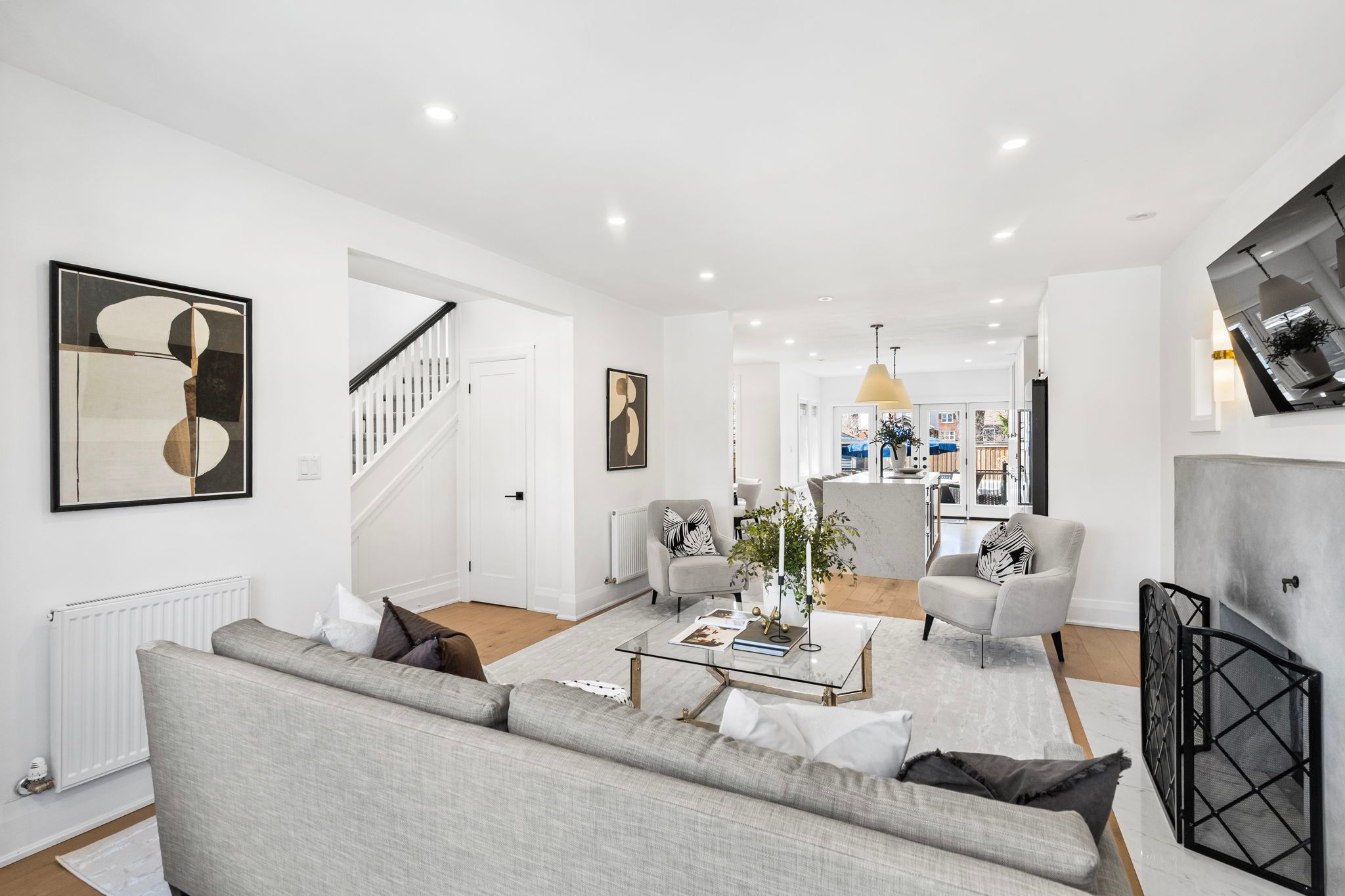Gorg, gorg, gorg on george. Oh my god... Honey, look at this house that just listed on george street - right across from the tennis club and the park. Georgian revival on the outside, but inside? Looks like a famous designer completely lost their mind (in the best way possible) and created an absolute dream home. Oh, and there's a pool. No. Keep reading. "houses like this almost never come up in mimico. Fully renovated at the highest level 3+1 beds, 4 baths, and a dug-out approximately 8' basement with heated floors. The main level is sprawling for the era: custom skona kitchen, dovetailed and trimmed with wood drawers, high-end appliances, and a full-height wine fridge. Eat-in and formal dining with yard views, an oversized living room with a cast wood-burning fireplace, and yes - a powder room. Upstairs, it gets better. A full primary suite (almost unheard of in a vintage mimico shell), walk-in closet, and an ensuite wrapped in veranda-style windows that make you feel like you're soaking in the treetops. Secondary bedrooms? Impeccably finished, bright, and beautiful. The lower level will stop you in your tracks, high ceilings, heated floors, a custom laundry suite that moonlights as an entertainment bar, a full bedroom with walk-in closet and ensuite, ample storage, and a movie room with a gas fireplace and hidden built-in closets. The yard is 31 x 144 deep and delivers the space dreams are made of: an entertainer's deck, play space, private driveway access with ev charging, two outdoor lounges, a monster outdoor tv... And then the pool. The pool. With a waterfall feature." babe, i love waterfalls! Call the realtor. We need to see this tonight. With that basement, that yard, and that pool - right across from the park and tennis club - we don't even need a cottage. We'd have everything. Babe? Babe? Babe!?