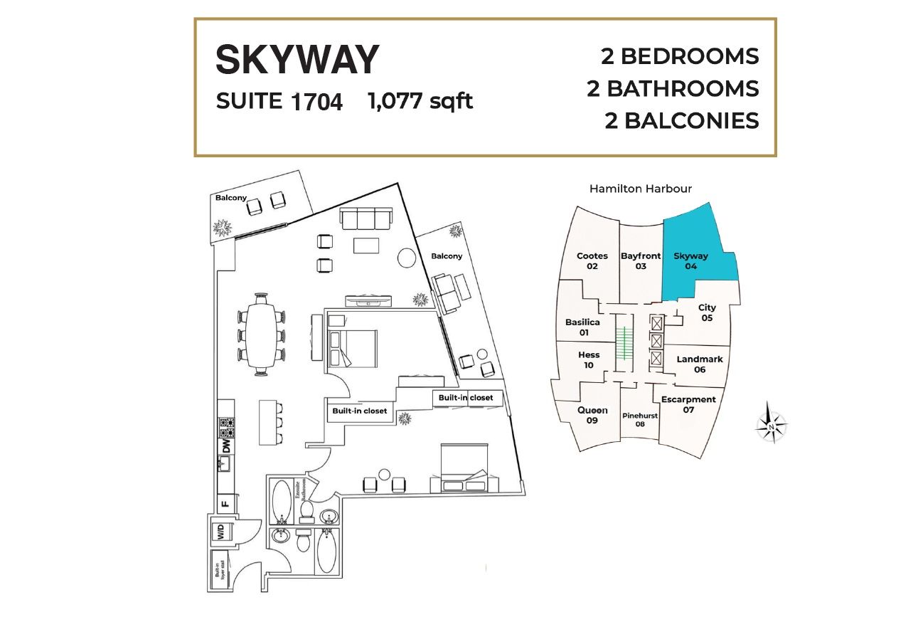 !!! Promotion: enjoy one month of free net rent (applied to the 11th month) and three months of free parking when you sign a one-year lease!!! Marquee residence is one of the most sought-after luxury condo buildings in the heart of downtown hamilton a modern, 5-year-new landmark and the second-tallest building in the city. This 1077 sqft spacious two-bedroom corner unit on the 14th floor offers two oversized balconies with north and east views overlooking the city and the lake. A sleek kitchen featuring a central island, quartz countertops, backsplash, european-designed custom cabinetry and stainless-steel appliances. Vinyl flooring throughout. Two bright bedrooms with built-in closet organizers, and large windows that fill the home with abundant natural light. In-suite laundry included. Residents enjoy top-notch amenities, including a gym, yoga studio, two party rooms,complete with kitchenette, lounge chairs, fireplace and billiards table, and an 8th-floor outdoor terrace ideally located just one block from hess village, nations supermarket, samir supermarket, jackson square, and the new mcmaster family practice. Hsr and go bus stops are right at your doorstep. Close to mcmaster children's hospital, st. Joseph's healthcare centre, and hamilton general hospital. No smoking building. Other units with various sizes and layouts are also available, offering sweeping views of the waterfront, escarpment, and downtown skyline. Indoor parking available at extra $150/month. Available immediately. Flexible possession.