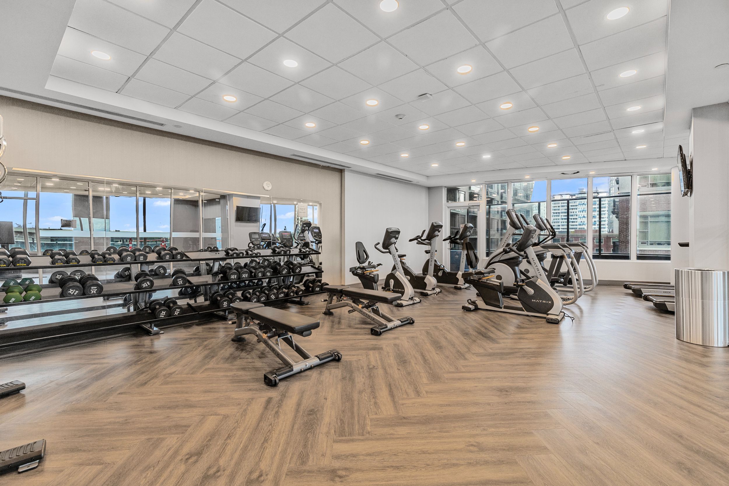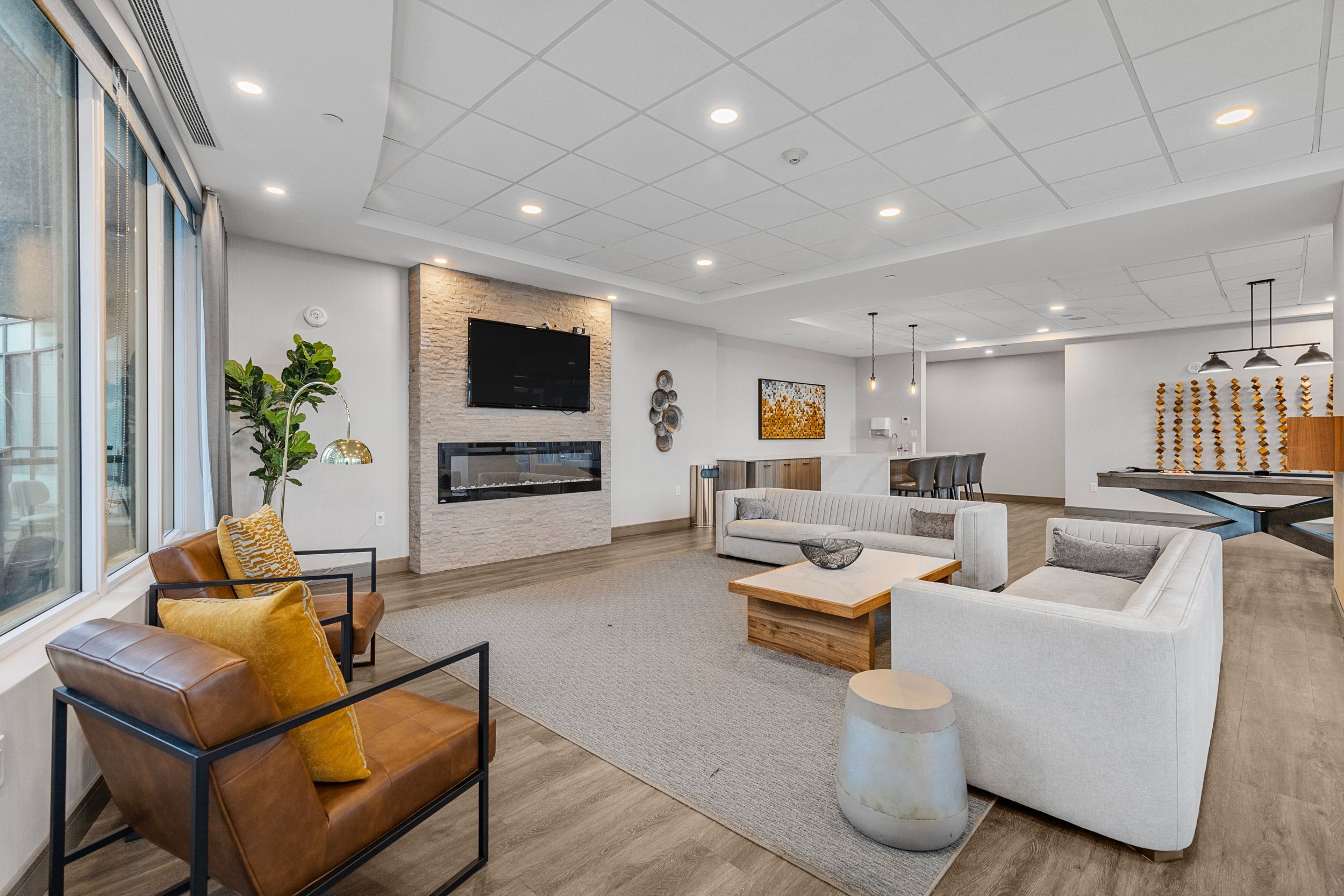 • Premium building amenities including fitness center, rooftop terrace, and party lounge.