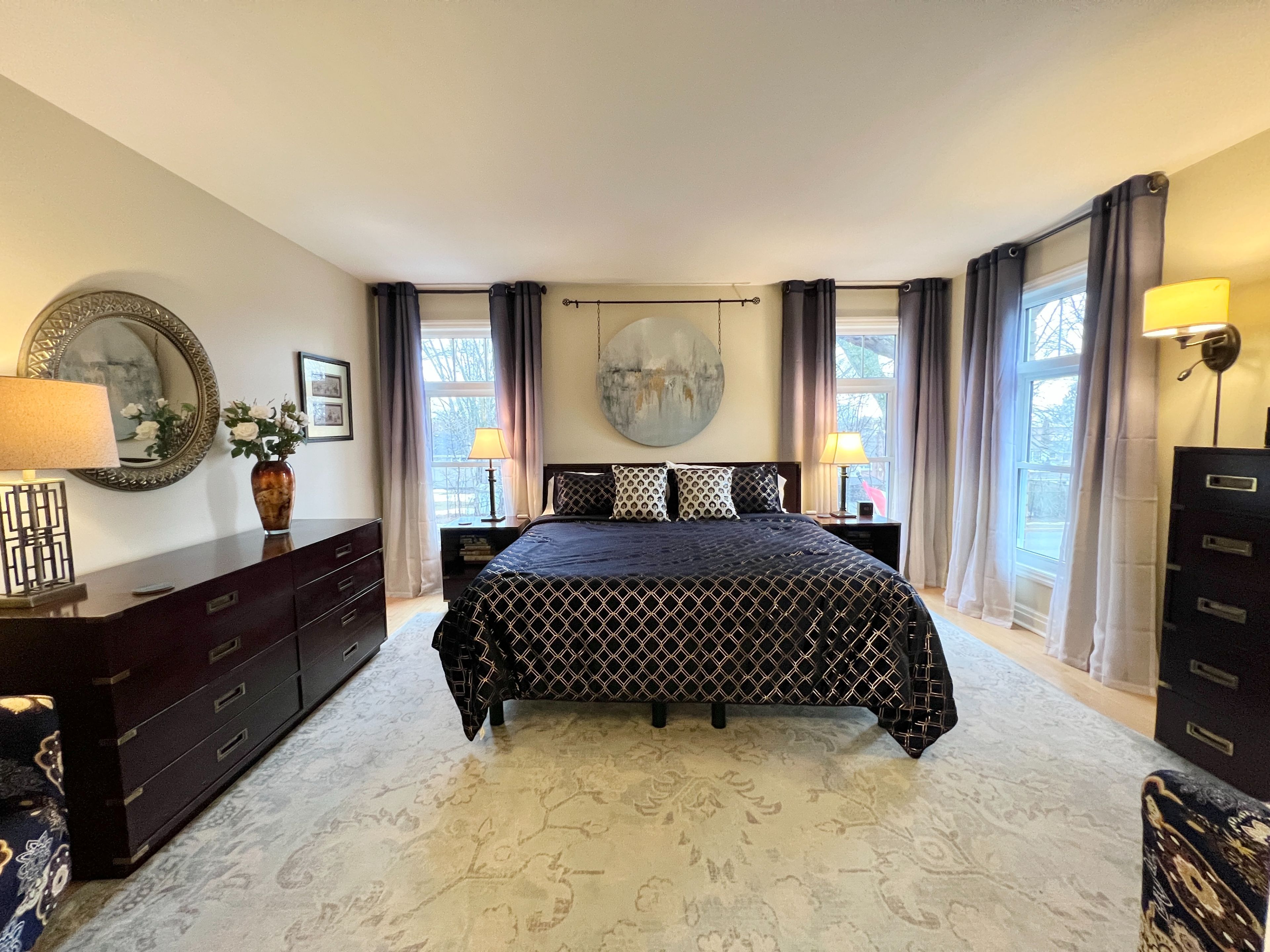 • Luxurious primary suite with walk-in closets and spa-like ensuite.