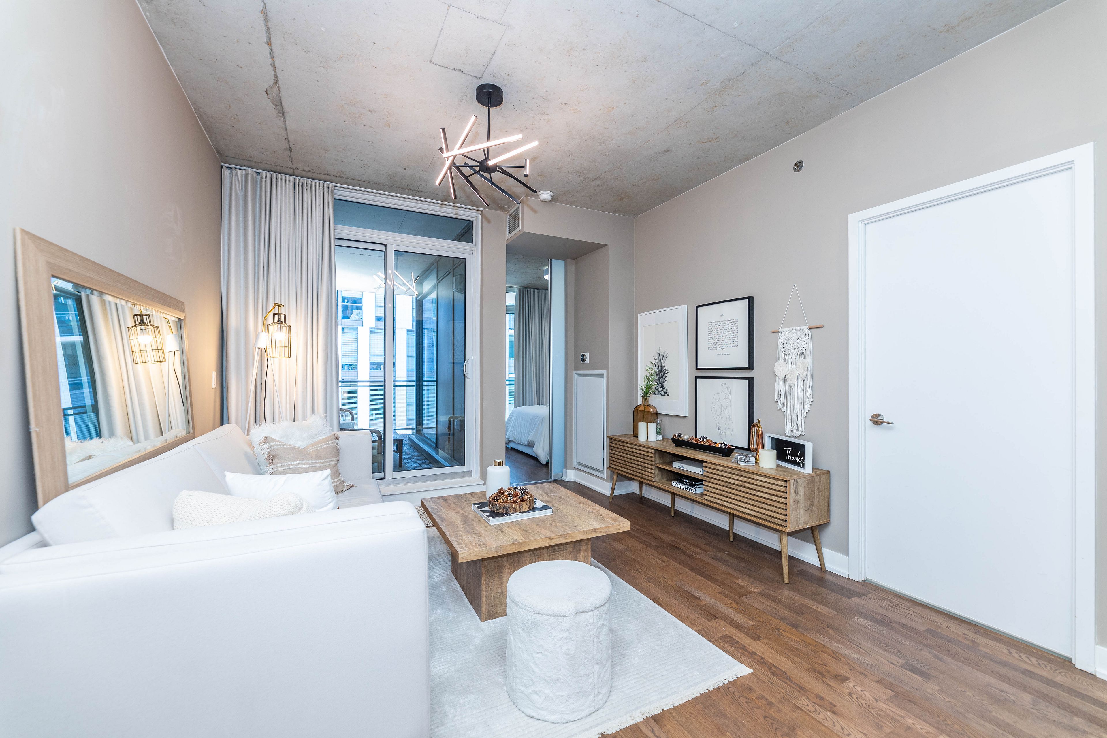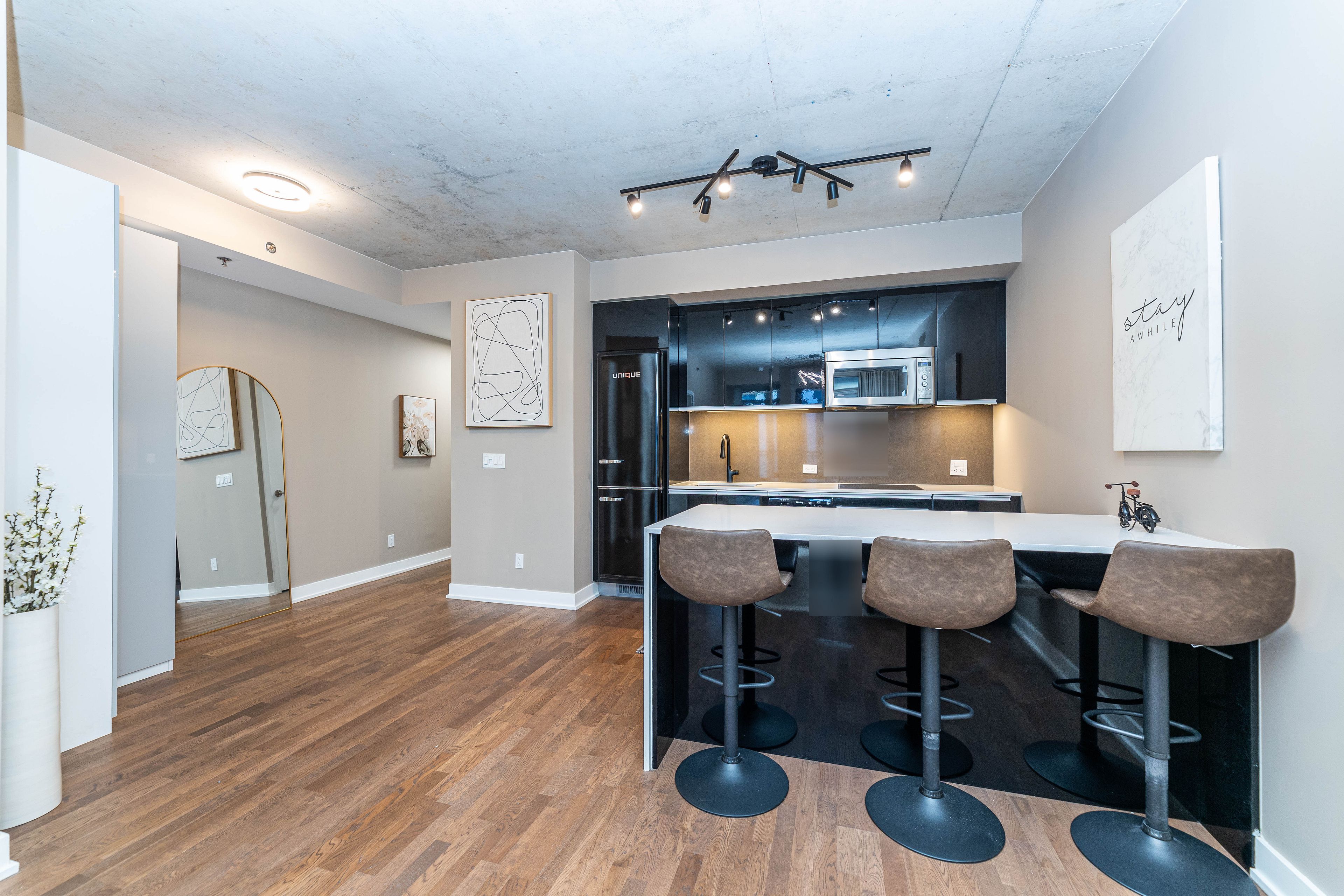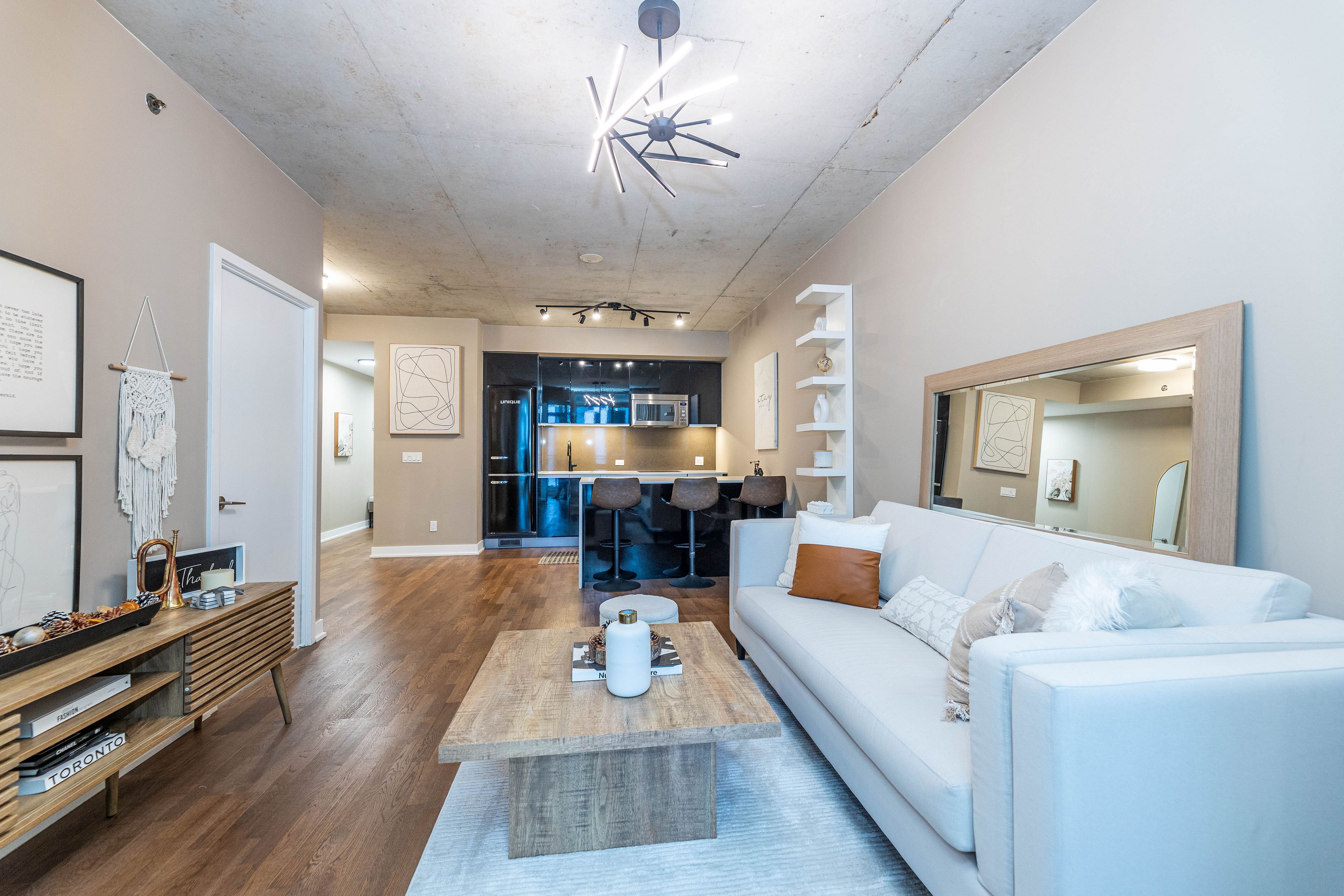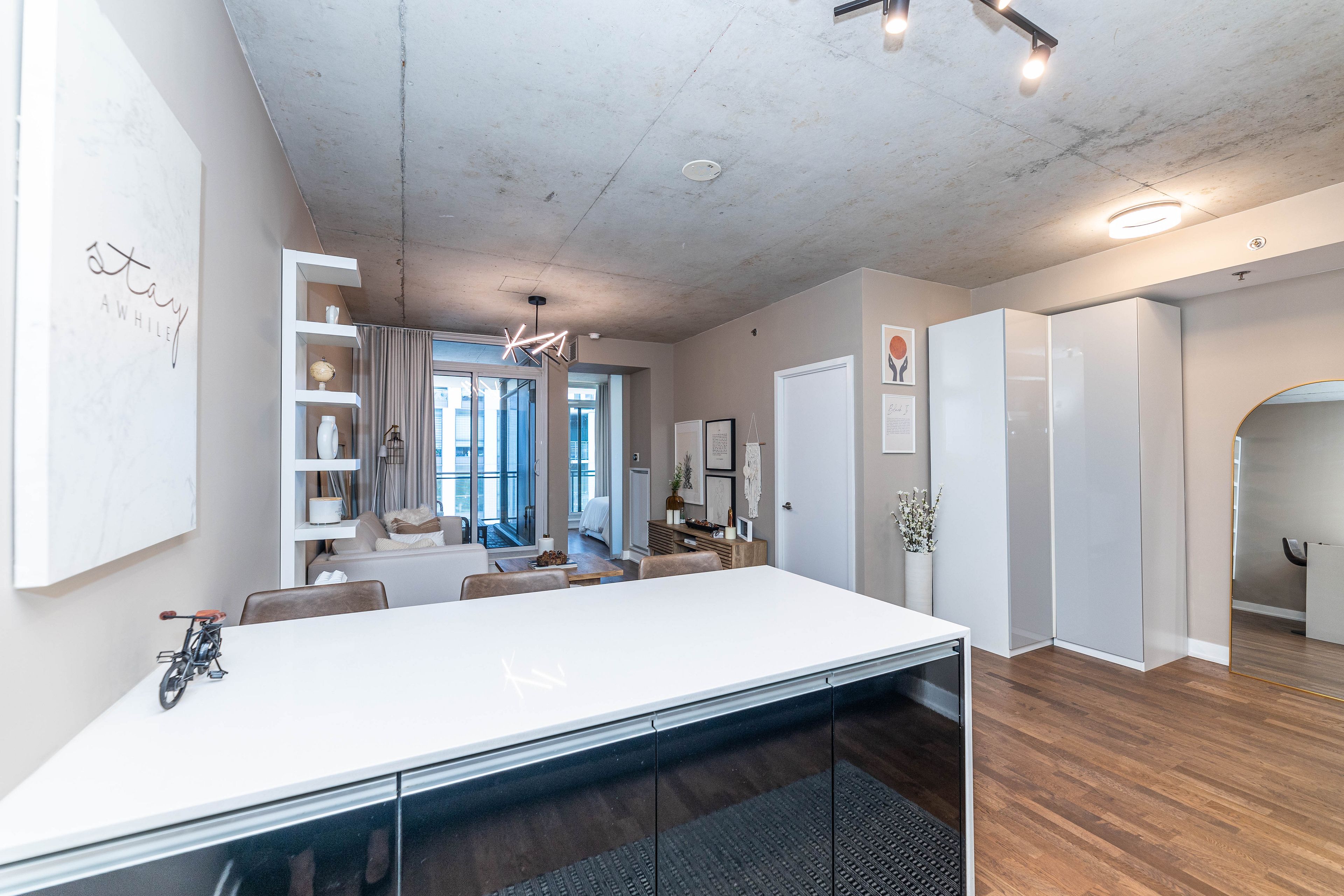 • Modern one-bedroom plus den condo in the lively Little Portugal neighborhood.