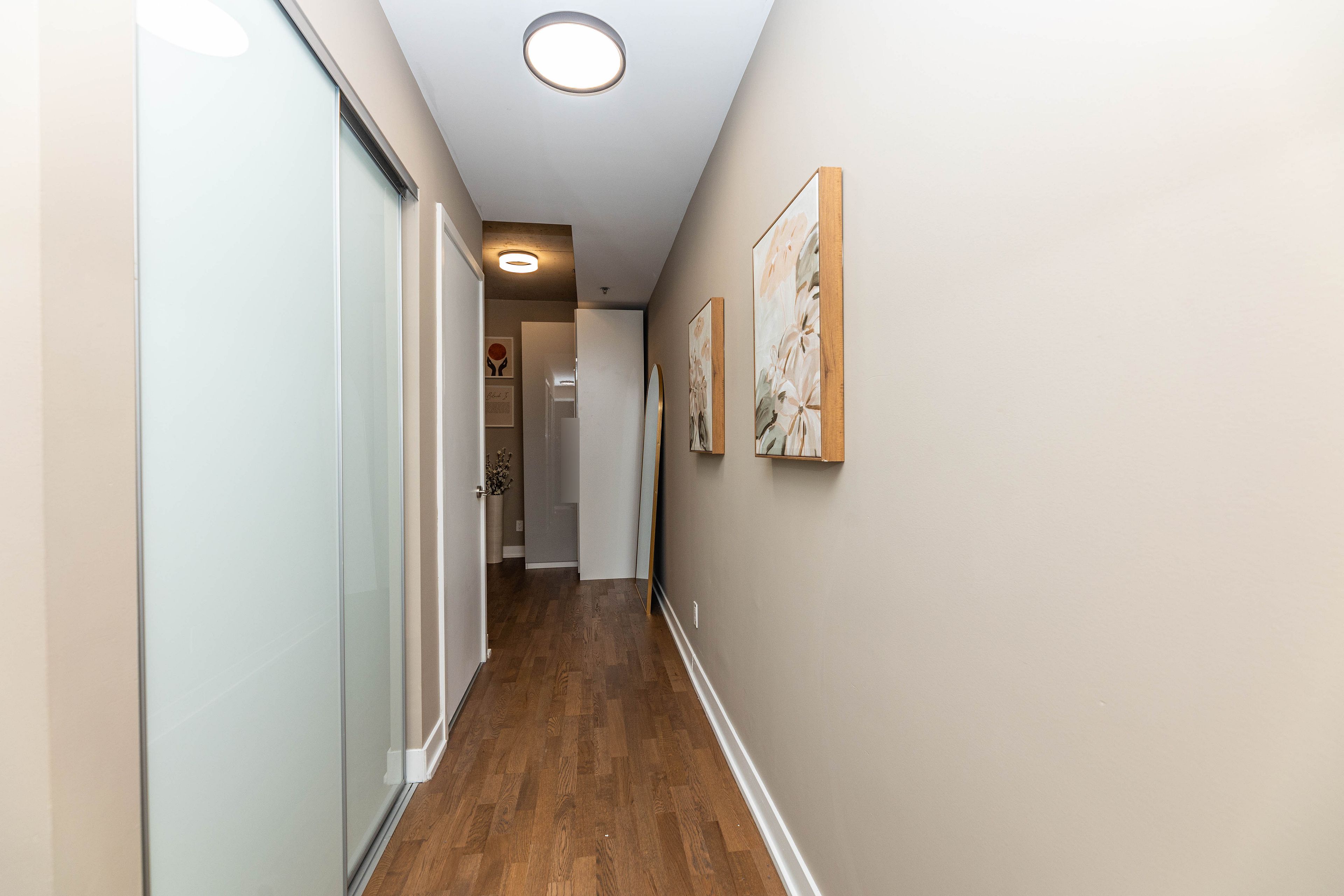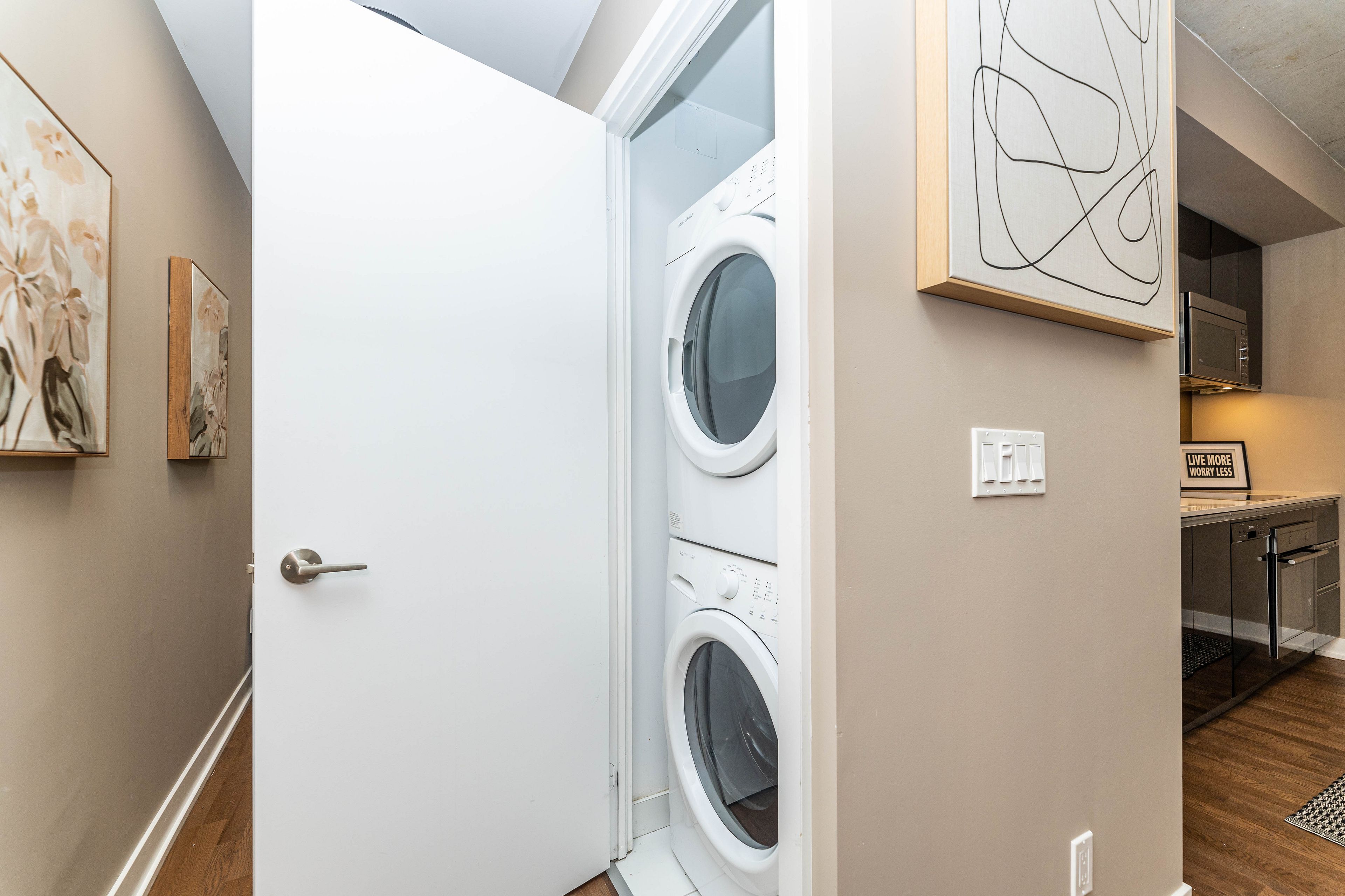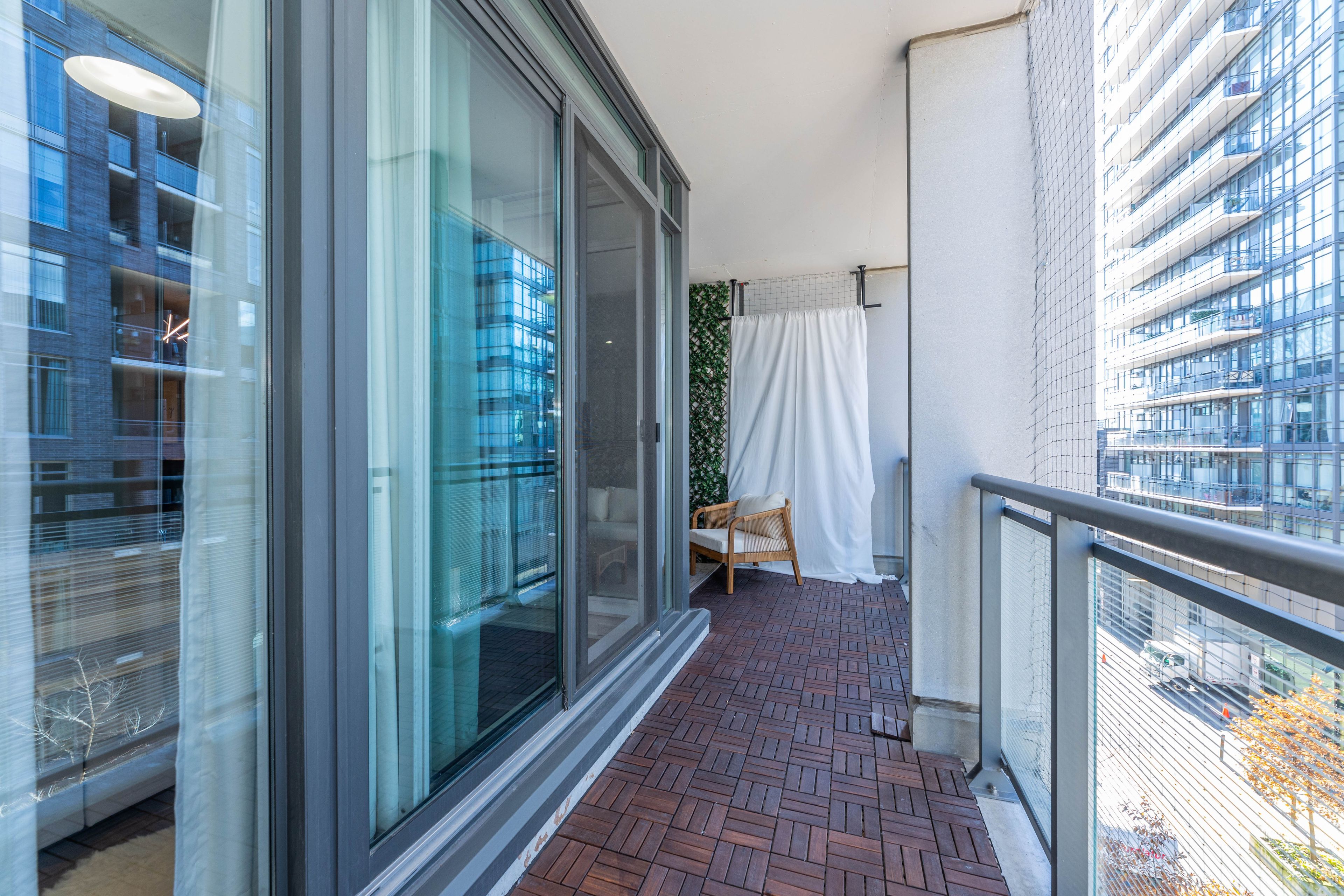 Welcome to twenty lofts, a modern urban retreat in the heart of the vibrant little portugal neighbourhood, just steps from the trendy queen street west. This contemporary one-bedroom plus den condo offers a stylish and functional living space, featuring sleek hardwood floors, a spacious kitchen with quartz countertops and a breakfast bar, and built-in appliances, including a brand-new retro-style fridge. The open-concept layout boasts 9-foot loft ceilings, upgraded light fixtures, and floor-to-ceiling windows that flood the space with natural light. The newly renovated bathroom features elegant black fixtures and beautiful stone flooring. The versatile den offers endless possibilities, whether for an office, extra storage, or a cozy dining area. Additional convenience comes with a large-sized washer and dryer in the unit, making laundry a breeze. Outside, you'll find a 125-square-foot balcony with a gas bbq hookup, accessible from both the living room and bedroom the perfect spot to unwind or entertain. This condo blends modern living with convenience and style offering everything you need in a prime location. Don't miss out book your showing today.