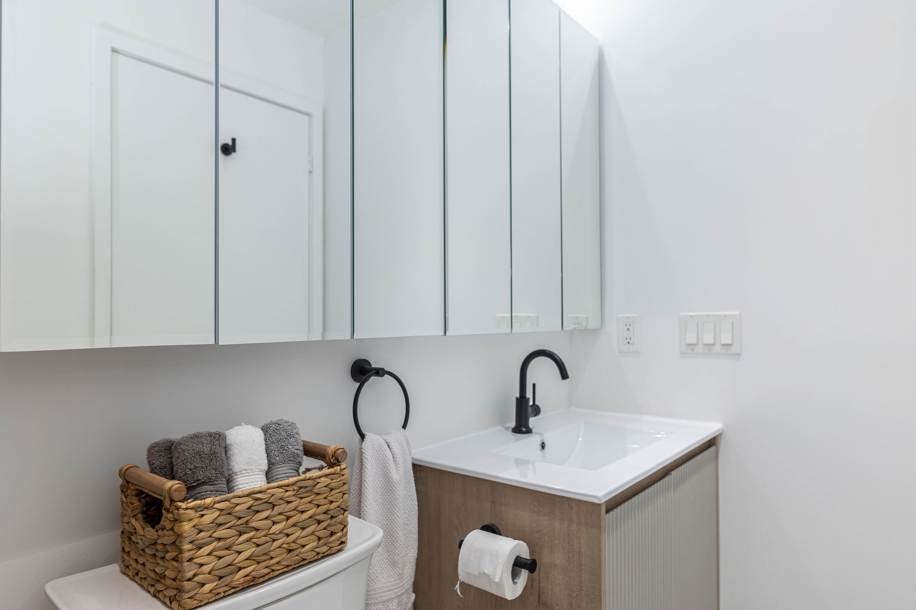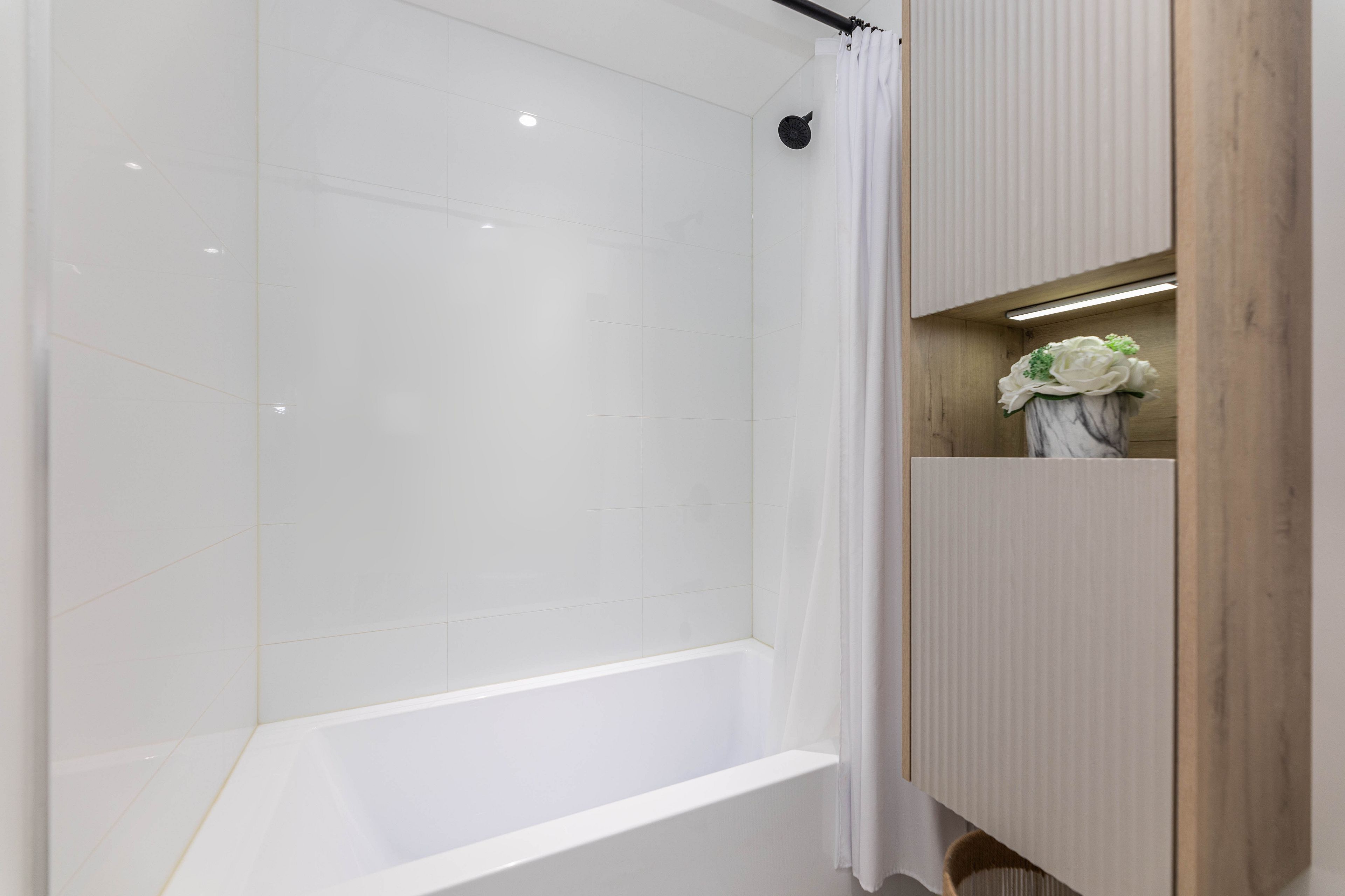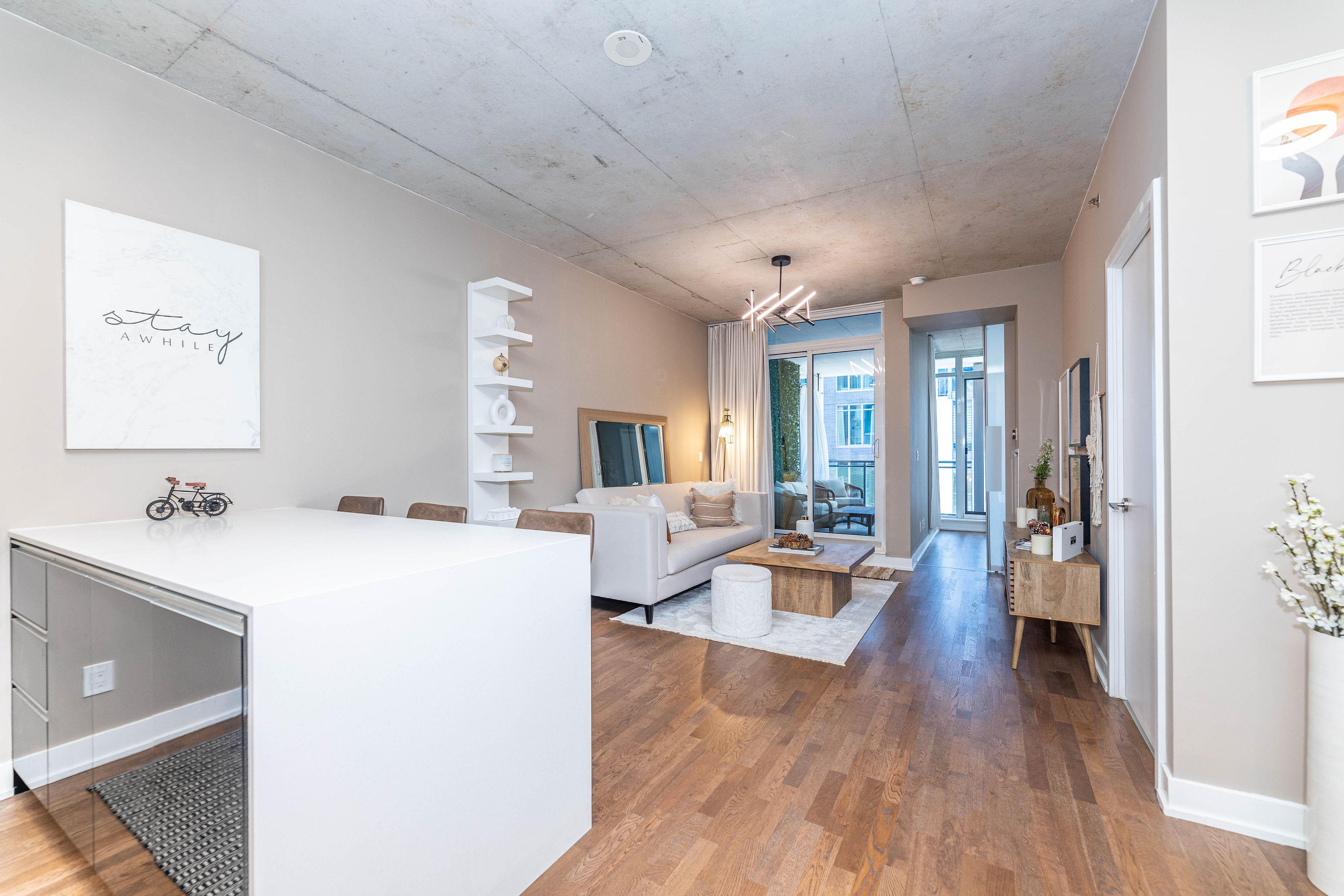 • Stylish living space with sleek hardwood floors and quartz countertops.
