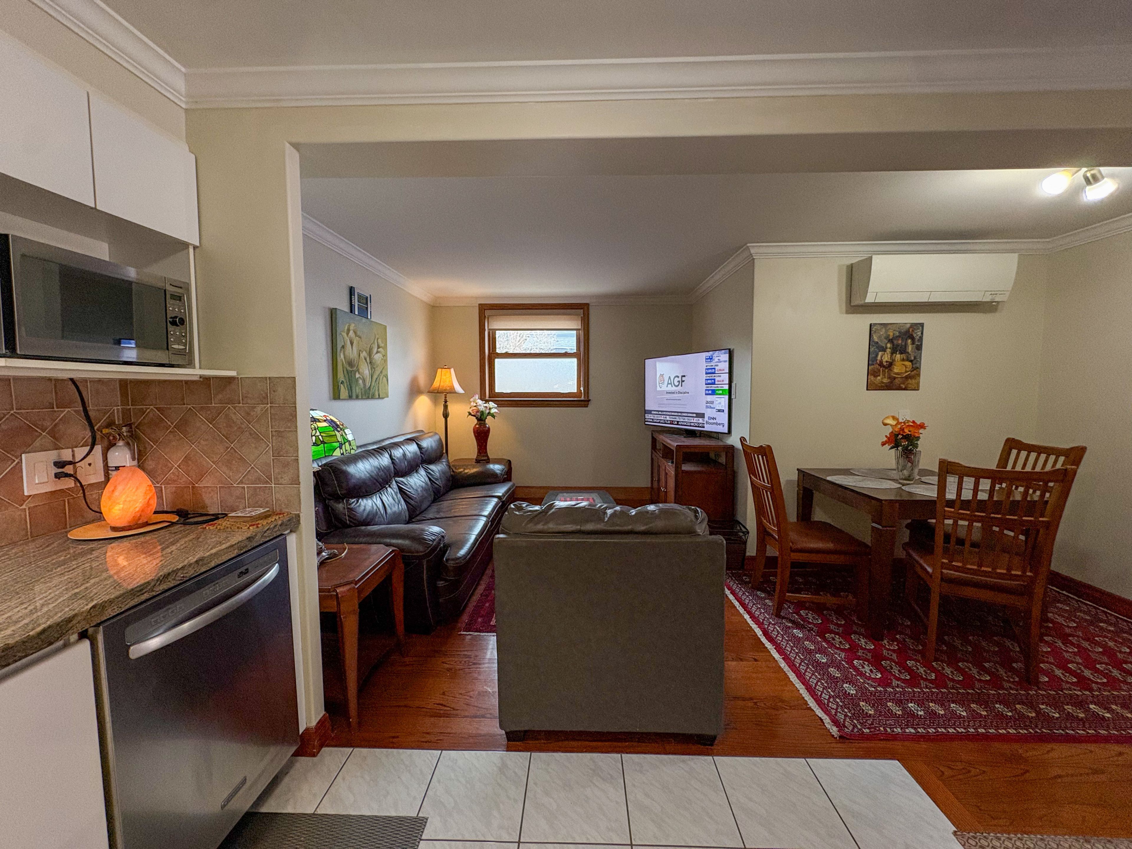 • Renovated top-floor apartment with a private entrance for added privacy.