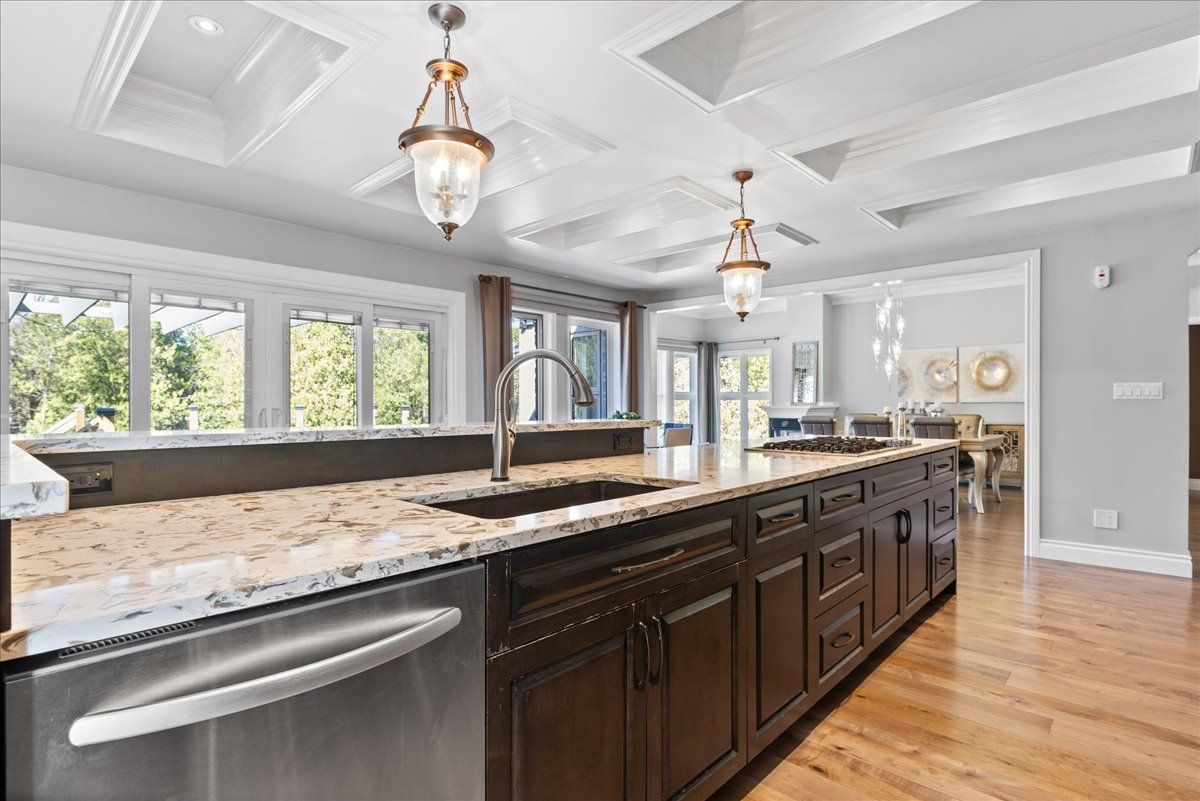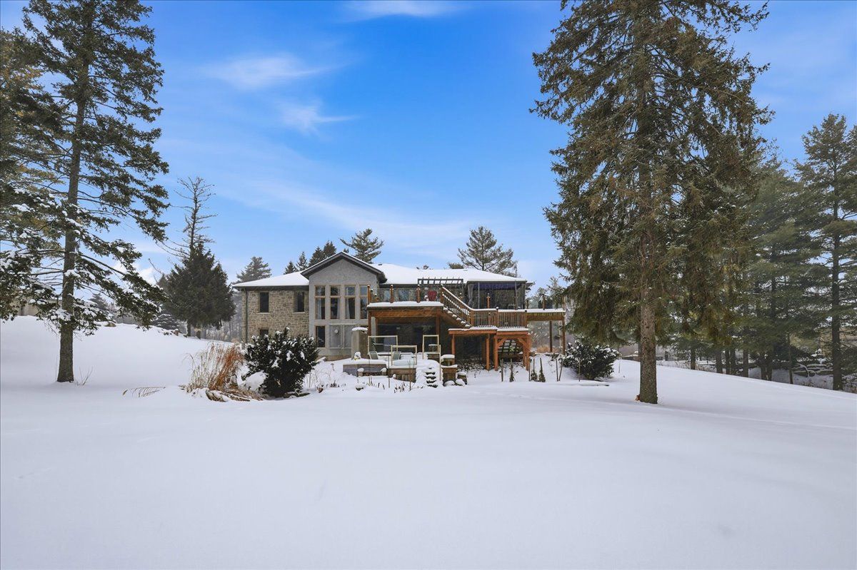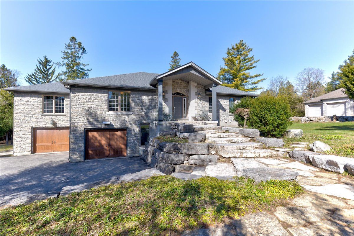 Rare opportunity! Custom built raised bungalow on a 1. 04-acre lot, offering court location surrounded by protected greenspace. This exclusive, 10 estate court rarely has homes come up for sale and 20 grandy lane is one that takes full advantage of the natural features, completely backing onto mature forest with direct access to millcreek conservation land. The home features a stunning all stone exterior with a beautiful retaining wall and carefully set natural stone steps, leading to the front door. The main level layout is wide open with large windows, designed to overlook the backyard from anywhere within the open space and providing access to the elevated multi-level deck completed with composite decking and glass rails. A rich, maple raised panel kitchen sits central with an oversized quartz countertop and raised bar sitting area; elegant crown molding finishes the cabinets to the ceiling with built-in stainless-steel appliances, gas cooktop. Equal in elegance is the built-in family room wall unit featuring gas fireplace insert. A three-sided fireplace separates the dining room from a sunken sitting area providing for an elevated view of the backyard; coffered ceiling accents and hardwood flooring span the space. Completing the space is a large bedroom, laundry, 2-piece bathroom, and the primary suite, complete with walk in closet and recently renovated(2023) 5-piece spa like ensuite. A hardwood staircase leads to the lower level which is still completely above grade; the home was strategically placed to take full advantage of the walkout. Lower level gives access to the oversized, staggered double car garage. Perfectly suited as a multi-generational home, offering three bedrooms, a recently renovated (2023) 4-piece bathroom, recreation room with gas fireplace, and kitchenette along with wet bar. Roof(2024), additional oversized garden shed for equipment storage. Minutes from the 401, amenities, and schools. Don't miss this truly beautiful property!