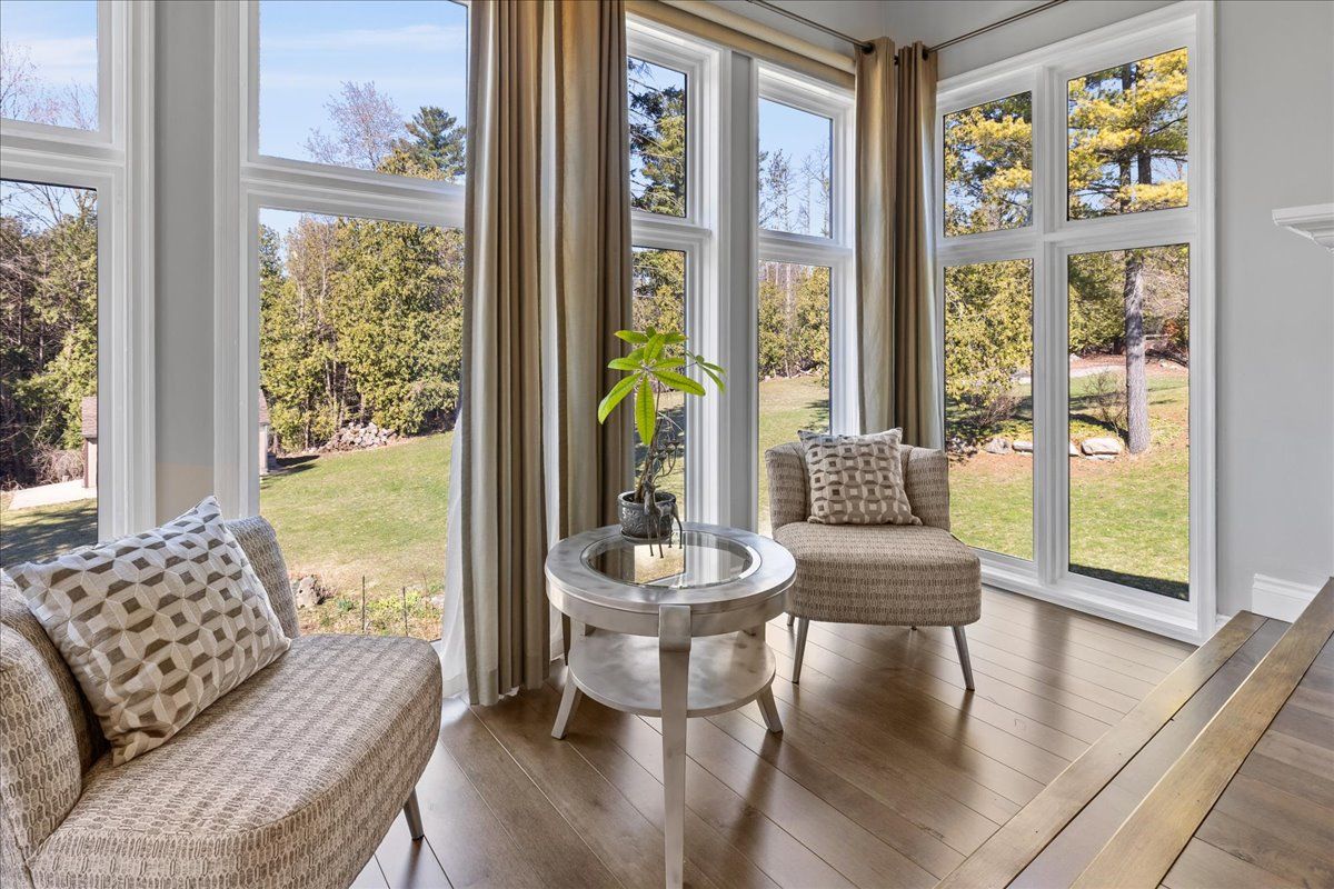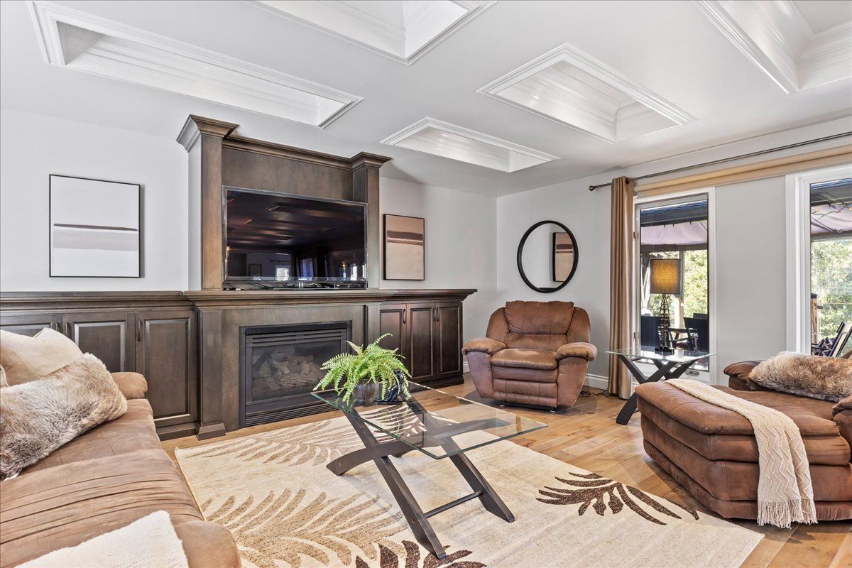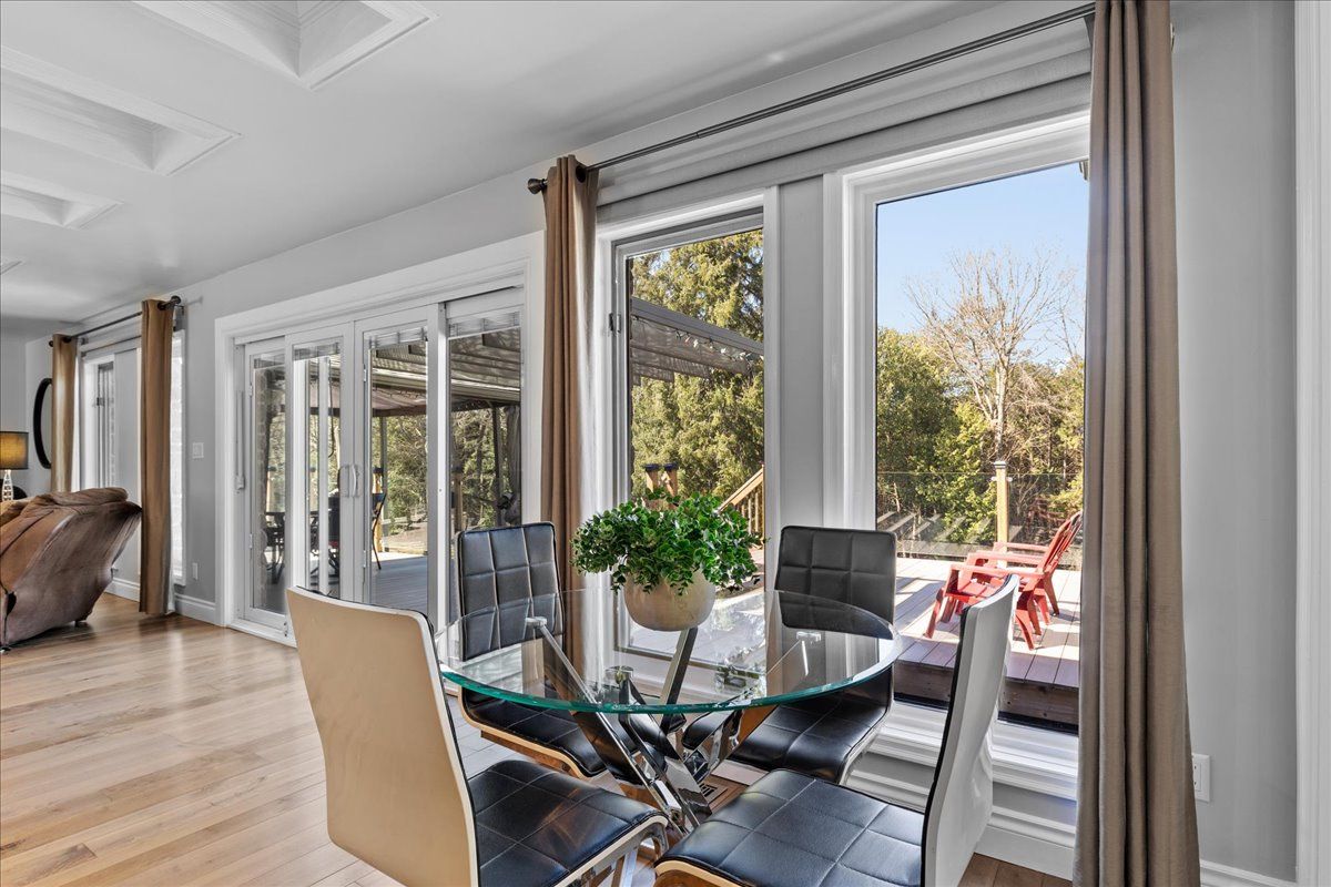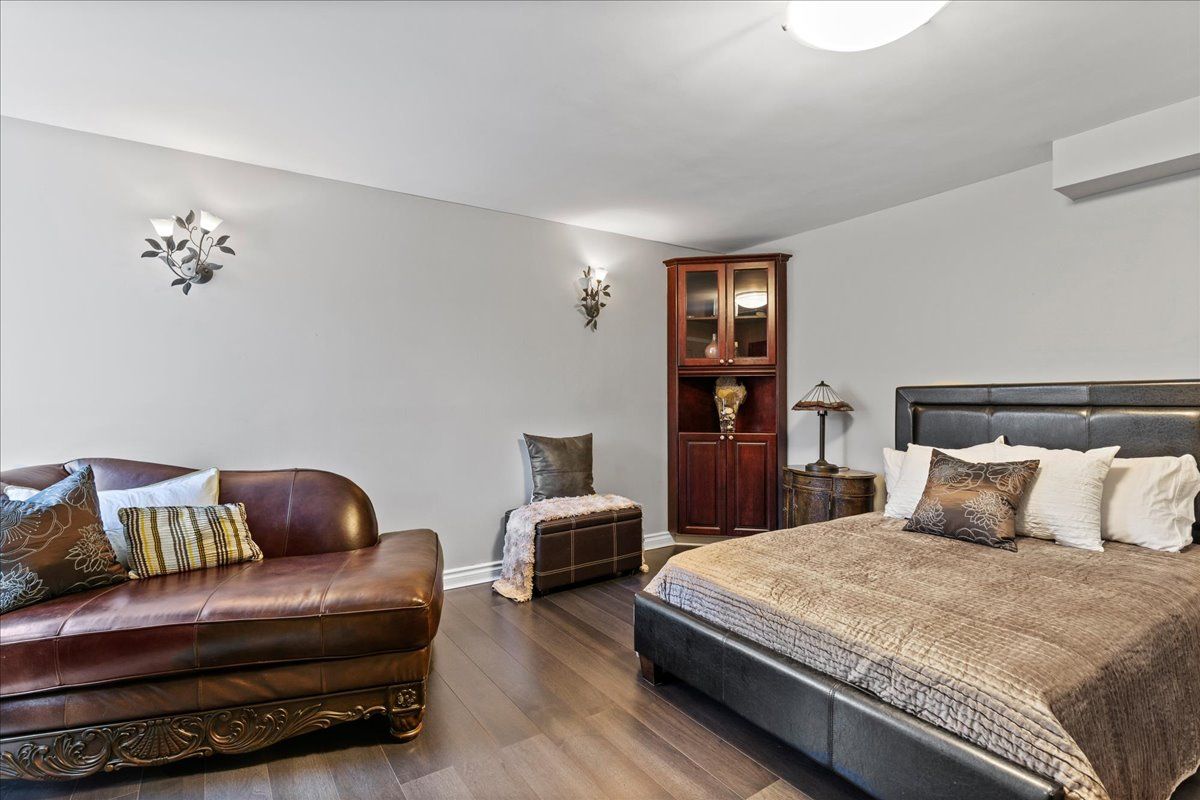 Rare opportunity! Custom built raised bungalow on a 1. 04-acre lot, offering court location surrounded by protected greenspace. This exclusive, 10 estate court rarely has homes come up for sale and 20 grandy lane is one that takes full advantage of the natural features, completely backing onto mature forest with direct access to millcreek conservation land. The home features a stunning all stone exterior with a beautiful retaining wall and carefully set natural stone steps, leading to the front door. The main level layout is wide open with large windows, designed to overlook the backyard from anywhere within the open space and providing access to the elevated multi-level deck completed with composite decking and glass rails. A rich, maple raised panel kitchen sits central with an oversized quartz countertop and raised bar sitting area; elegant crown molding finishes the cabinets to the ceiling with built-in stainless-steel appliances, gas cooktop. Equal in elegance is the built-in family room wall unit featuring gas fireplace insert. A three-sided fireplace separates the dining room from a sunken sitting area providing for an elevated view of the backyard; coffered ceiling accents and hardwood flooring span the space. Completing the space is a large bedroom, laundry, 2-piece bathroom, and the primary suite, complete with walk in closet and recently renovated(2023) 5-piece spa like ensuite. A hardwood staircase leads to the lower level which is still completely above grade; the home was strategically placed to take full advantage of the walkout. Lower level gives access to the oversized, staggered double car garage. Perfectly suited as a multi-generational home, offering three bedrooms, a recently renovated (2023) 4-piece bathroom, recreation room with gas fireplace, and kitchenette along with wet bar. Roof(2024), additional oversized garden shed for equipment storage. Minutes from the 401, amenities, and schools. Don't miss this truly beautiful property!