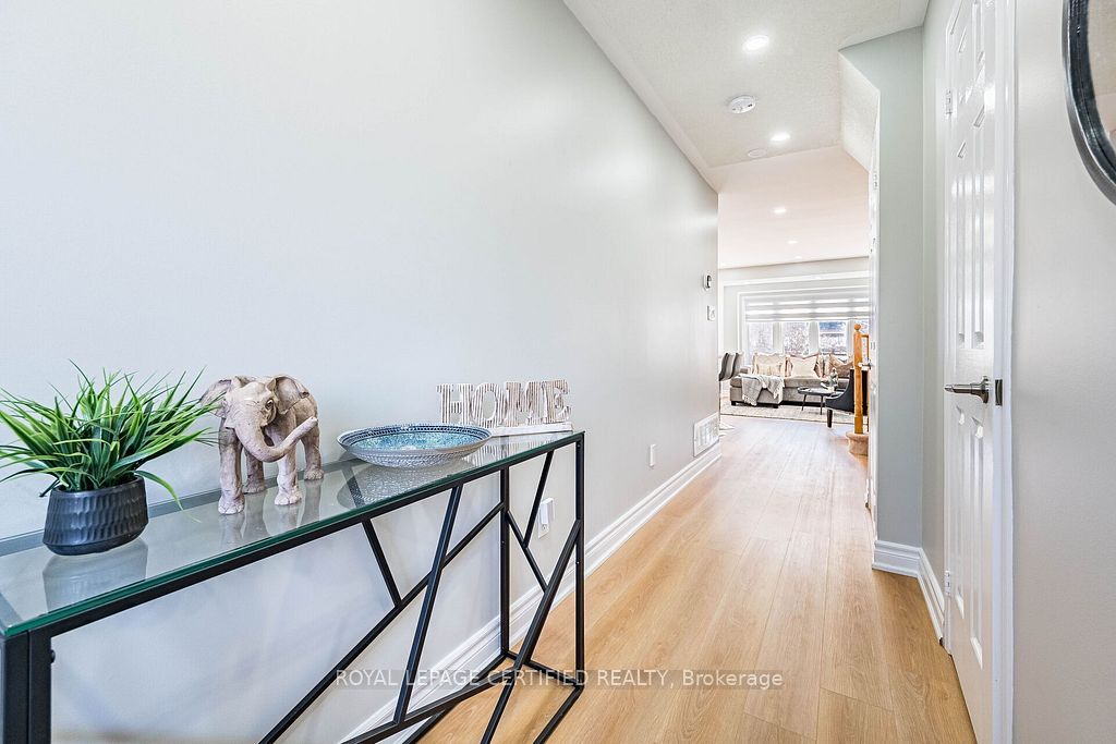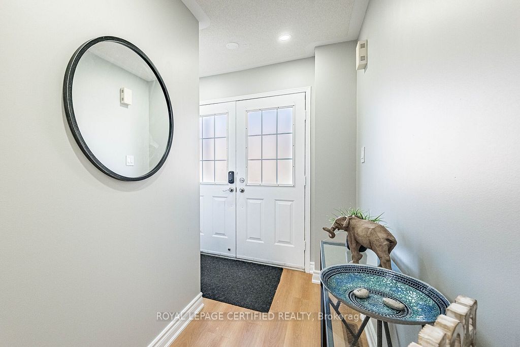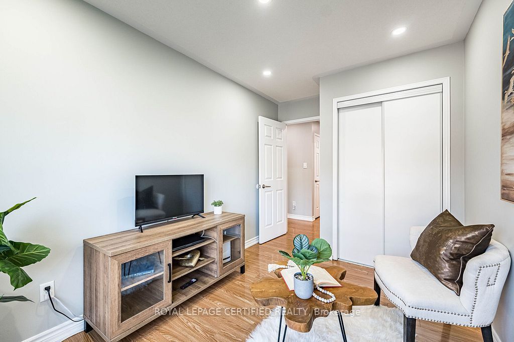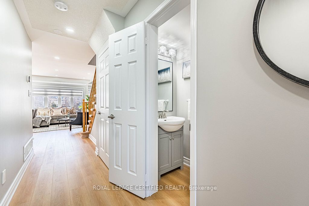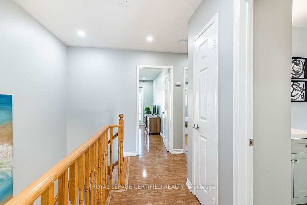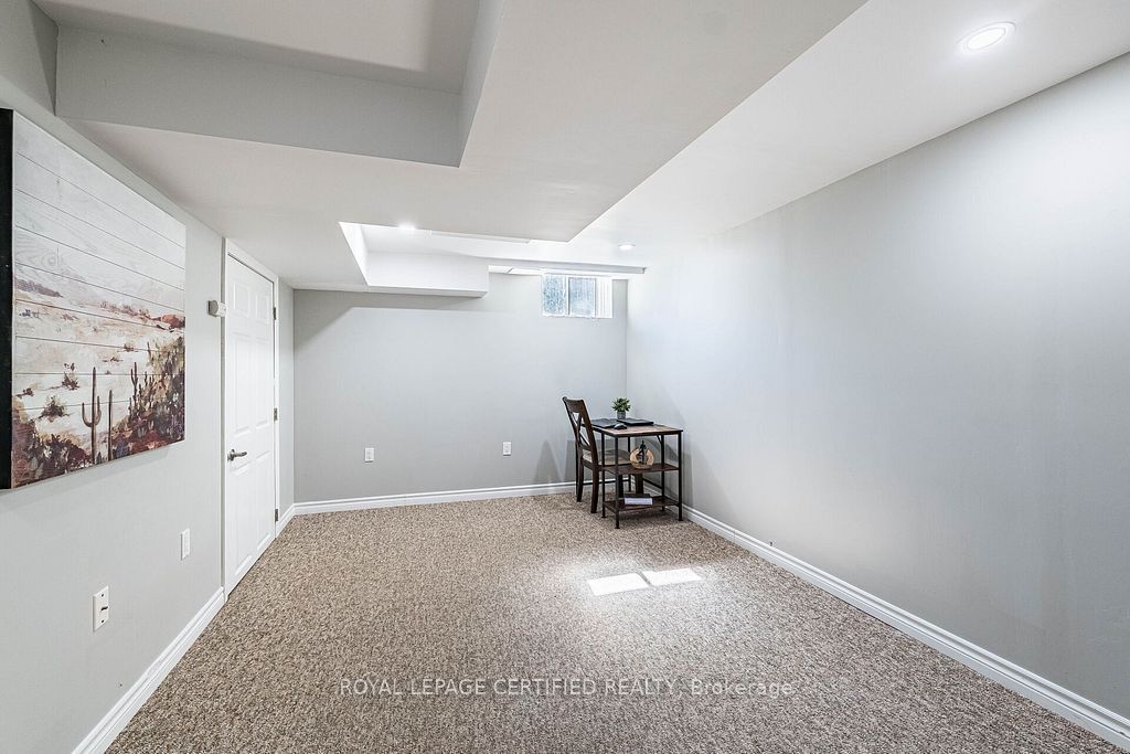 Welcome to this beautifully maintained freehold townhome (no condo or potl fees) in georgetown's sought-after dominion gardens-offering stylish, move-in-ready living with extensive recent upgrades throughout. The open-concept main foor features new flooring (2026), a cozy natural gas fireplace, and a fully renovated kitchen(2026) with modern cabinetry, quartz countertops & backsplash, and new stainless steel appliances. Pot lights on all three levels provide a bright, modern ambiance throughout the home. Upstairs, the spacious primary bedroom offers semi-ensuite access to an updated main bathroom, complemented by two additional well-sized bedrooms, including one with a walkout to affront balcony. Custom zebra blinds add a sleek, contemporary finish. The finished basement adds valuable living space-ideal for a family room, home office, or gym + additional storage space. Enjoy a fully fences backyard with mature landscaping, plus a private driveway for two cars plus single-car garage with no side walk. Extensive upgrades include: ac (2024), furnace (2025), renovated kitchen & appliances fridge (2026),dishwasher (2026), main floor flooring (2026), staircase carpet (2026), clothes washer (2026), water softener & reverse osmosis system (2024)owned, and pot lights throughout all three levels. Located within walking distance to parks, splash pad, trails, shopping, restaurants, outlet mall, and go train. Close to excellent schools in a family-friendly neighbourhood-an exceptional opportunity to own a turnkey freehold home. Freehold townhome - no condo fees. Fully renovated kitchen (2026)+ cabinets+quartz countertop & backsplash + island. Pot lights on all 3 levels. New flooring main (2026) + stair carpet(2026). Finished basement (family room/ofce/gym). Ac(2024) & furnace(2025). Water softener +reverse osmosis(2024). Private driveway(2 cars) + garage. No sidewalk. Fully fences backyard with mature trees. Walking distance to go train, parks, trails, shopping & schools.