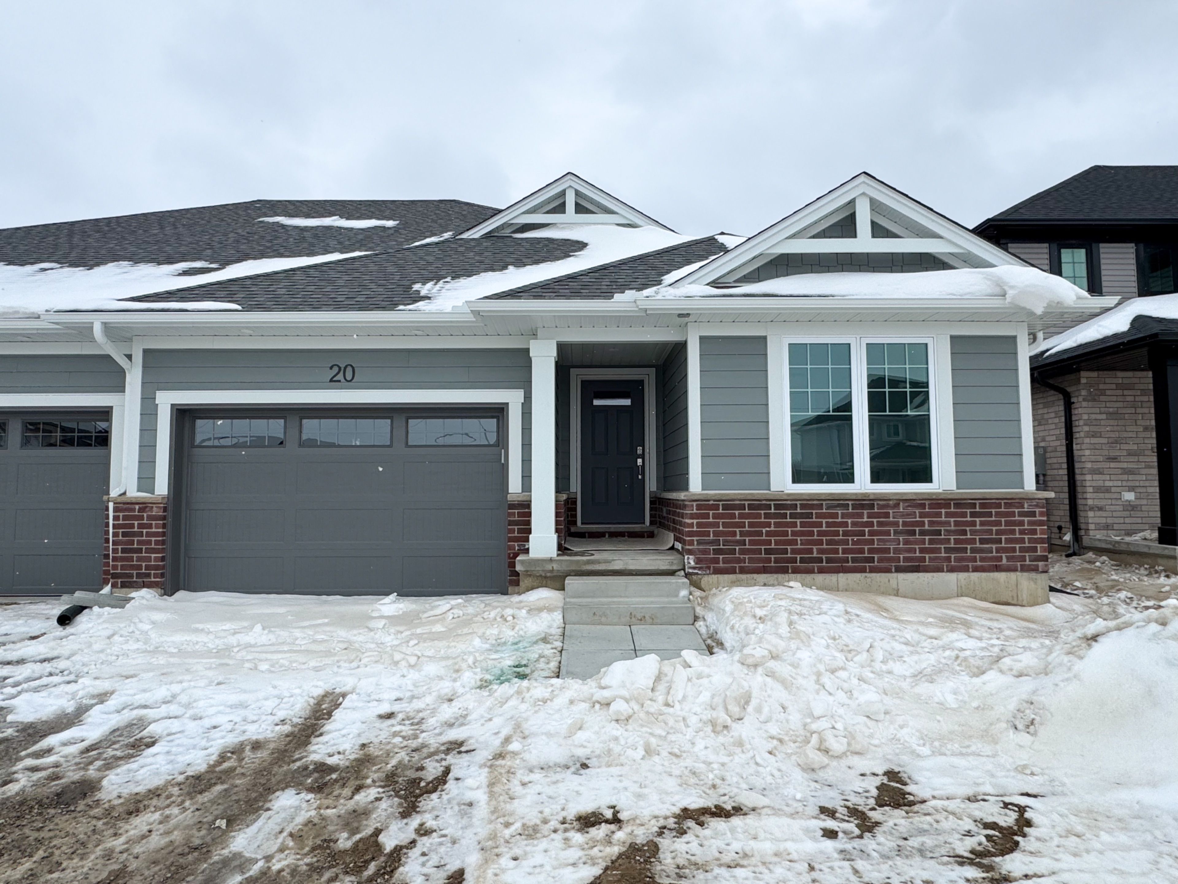 Welcome to 20 harrow lane in doug tarry homes' harvest run! This 2,027 sq. Ft. Semi-detached bungalow with a 1. 5-car garage offers convenient main-floor living with 2 bedrooms, an open-concept kitchen featuring a quartz island and large pantry, luxury vinyl plank flooring, and cozy carpeted bedrooms. The sutherland plan includes a practical laundry/mudroom off the garage, while the primary suite boasts a walk-in closet and 3-piece ensuite. The fully finished basement adds a spacious family room, two more bedrooms, and a 3-piece bath. Located in southeast st. Thomas within the mitchell hepburn school district and steps from orchard park, this energy star certified, net zero ready home is ready for its first family. Don't hesitate and make 20 harrow lane you new home!