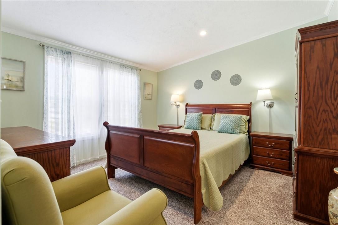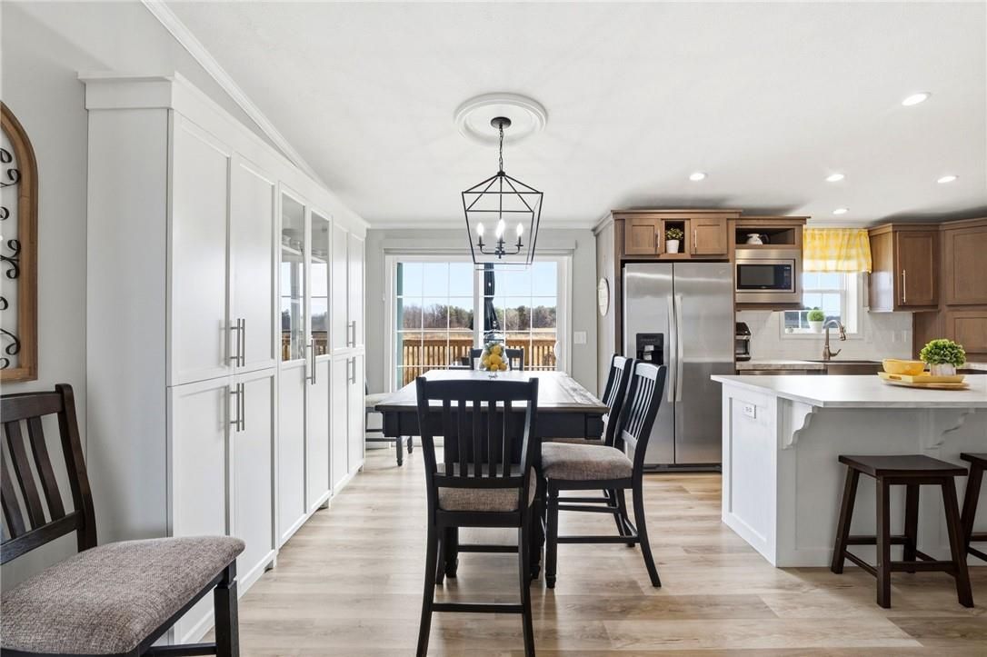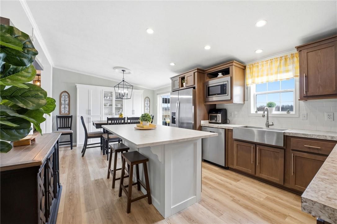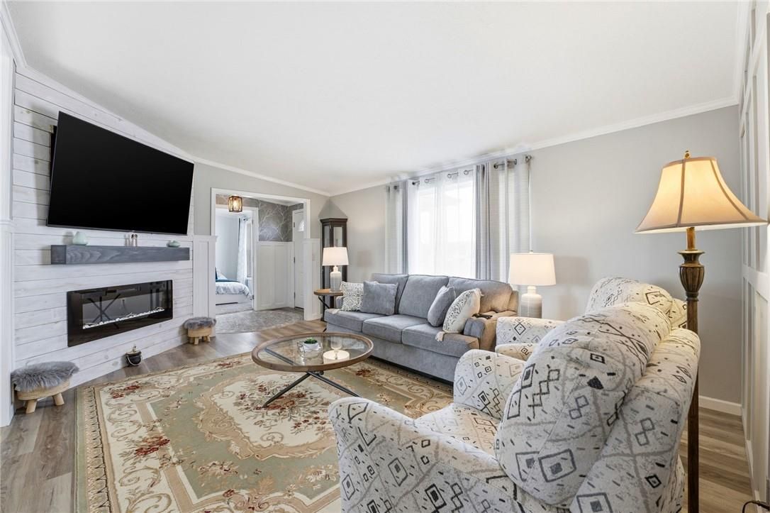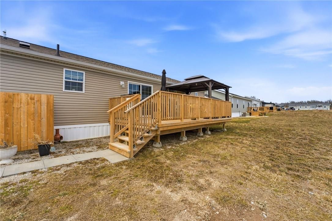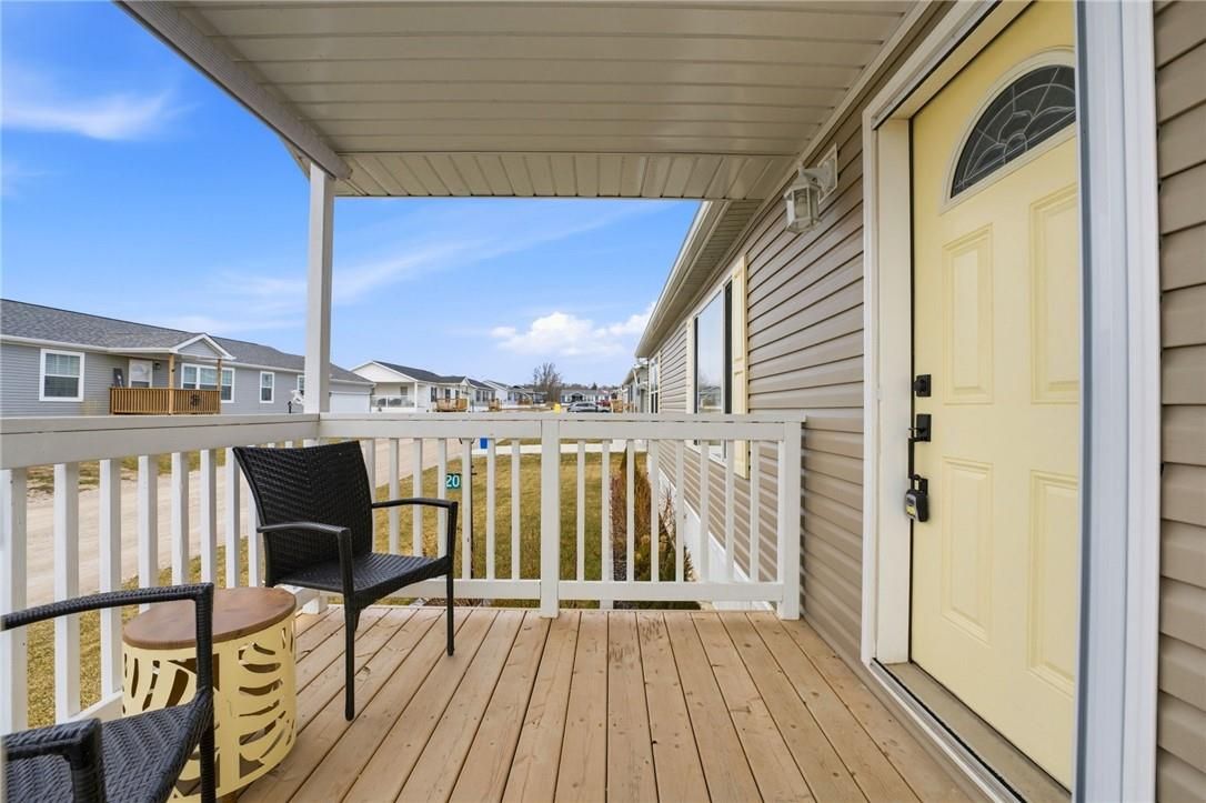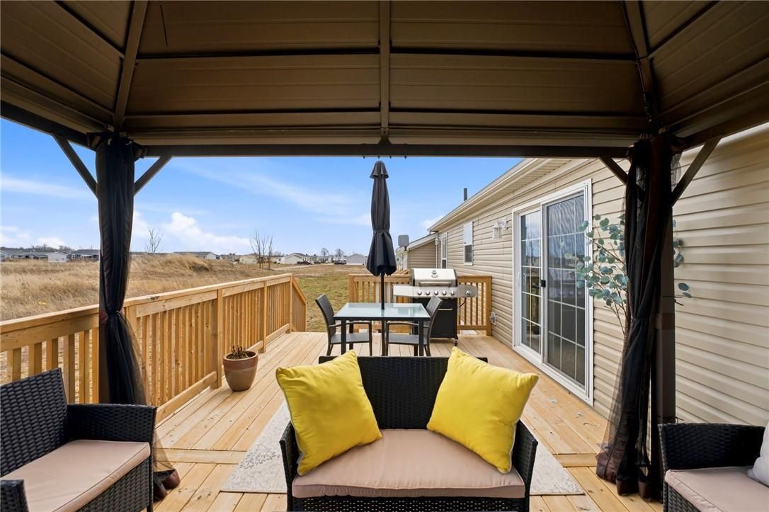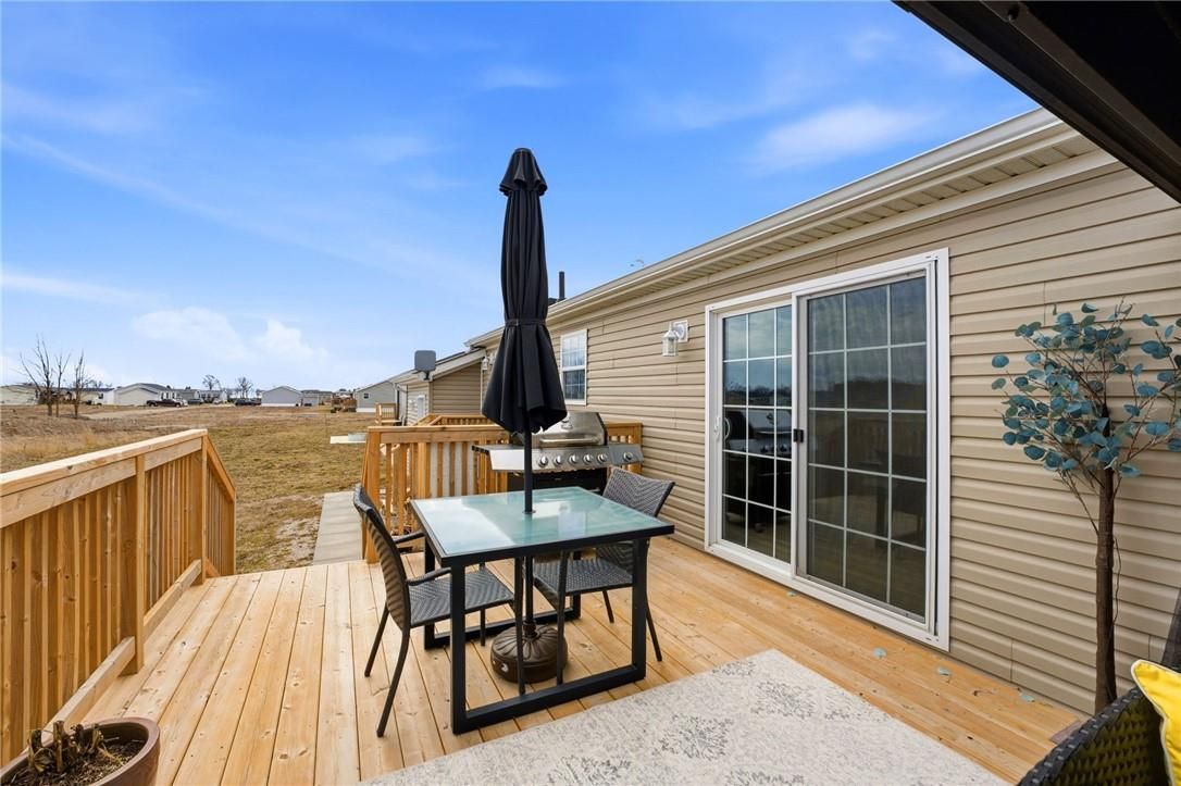Welcome to sandusk creek community! This beautifully updated 2-bedroom + den, 2-bath bungalow is being offered fully furnished, and is truly move-in ready. Featuring skimmed walls, beautiful millwork, tasteful finishes, and a gourmet kitchen complete with island, pot filler, and garburator, even equipped with a golf cart. This home shows exceptionally well. The open-concept layout is ideal for easy living or entertaining, while the back porch offers a peaceful summer setting to enjoy and watch the dragonflies with open field views. Perfect as a full-time residence or weekend retreat. A rare opportunity for buyers seeking quiet living with low-maintenance appeal. This opportunity comes once in a lifetime! 30' garage holds the golf cart and vehicle quite nicely. The pressed treated lumber deck is 22'x12'