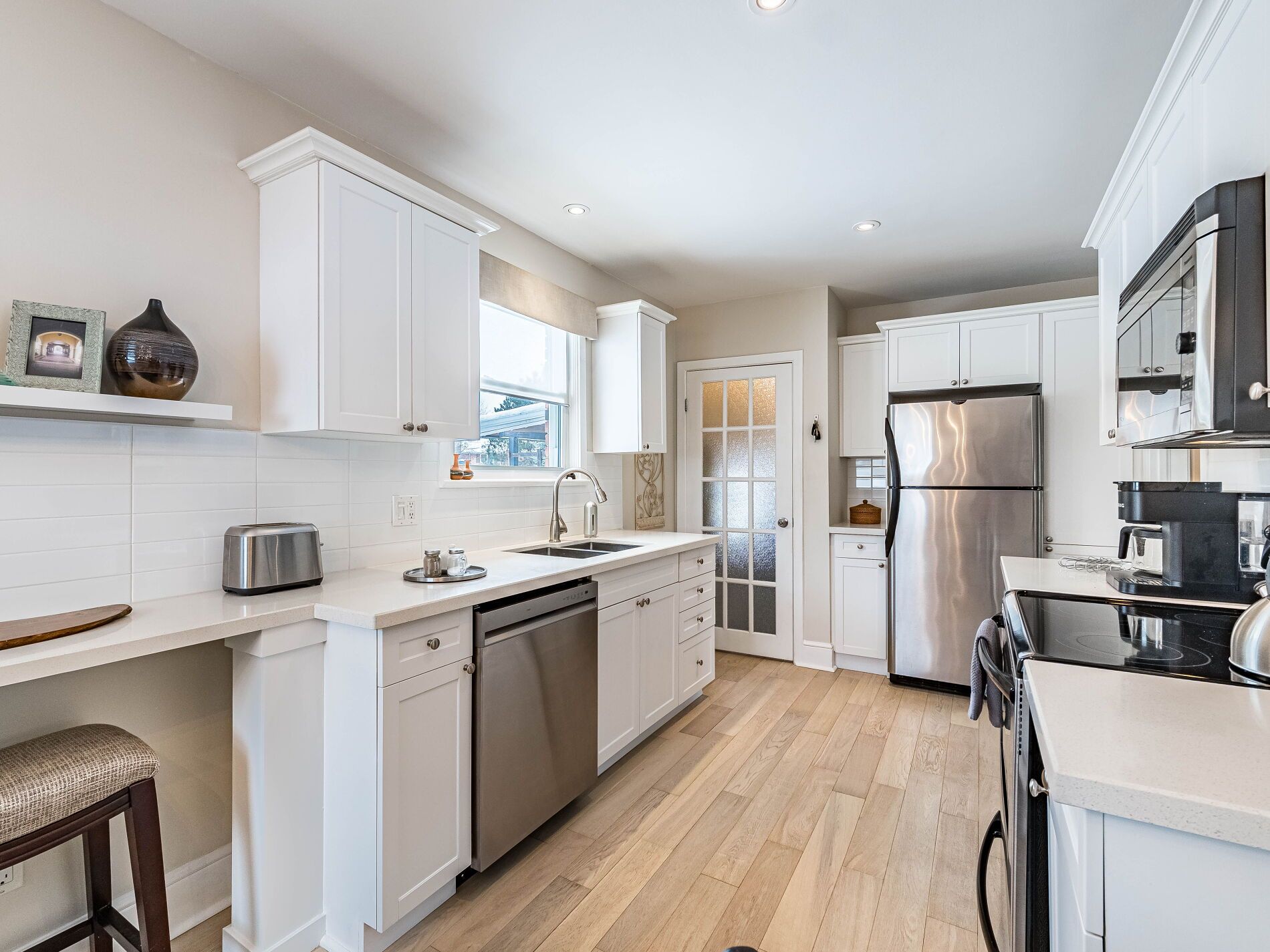 Welcome to 20 hillier crescent. A lot like this is hard to find. Rare opportunity in sought-after henderson / sky acres - one of the city's most desirable neighbourhoods. Situated on an exceptional over 1/2 acre lot, this impressive property offers space, privacy, and endless potential. Professionally renovated while preserving original hardwood floors, wide baseboards, and solid wood doors, the home blends timeless character with modern updates. The recently renovated living room and eat-in kitchen feature a gas fireplace, custom built-ins, engineered hardwood flooring, solid surface counters, subway tile backsplash, undermount double sink, and stainless steel appliances. Three bedrooms include added crown mouldings and enhanced storage. The updated main bath offers a tiled shower with dual shower heads and a heated towel rack. The fully finished basement provides additional living space with a rec room featuring an electric fireplace, large laundry room, updated 4 piece bathroom, and a fourth bedroom complete with sink, built-ins, bar fridge space, and microwave area - ideal for guests or in-law potential. The massive, beautifully landscaped backyard, offers exceptional privacy - a rare find in this mature, pride-of-ownership community. A wide driveway with direct backyard access provides excellent potential for a future garage or shop. Outdoor living is complete with a 14x12 porch, 10x10 deck, and two stone patios. Close to top-rated schools, hwy 403 access, parks, trails, shopping, library, and medical facilities.