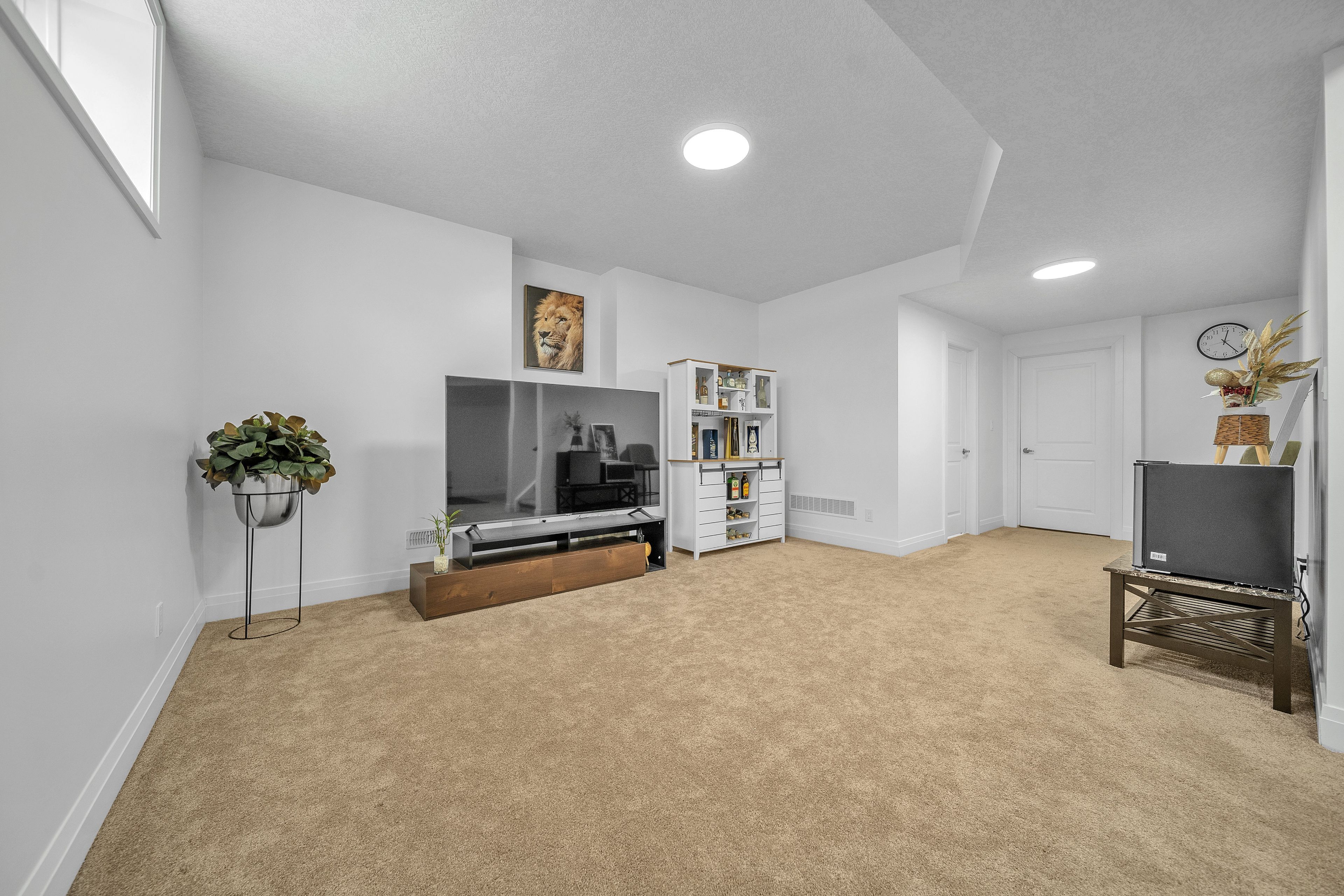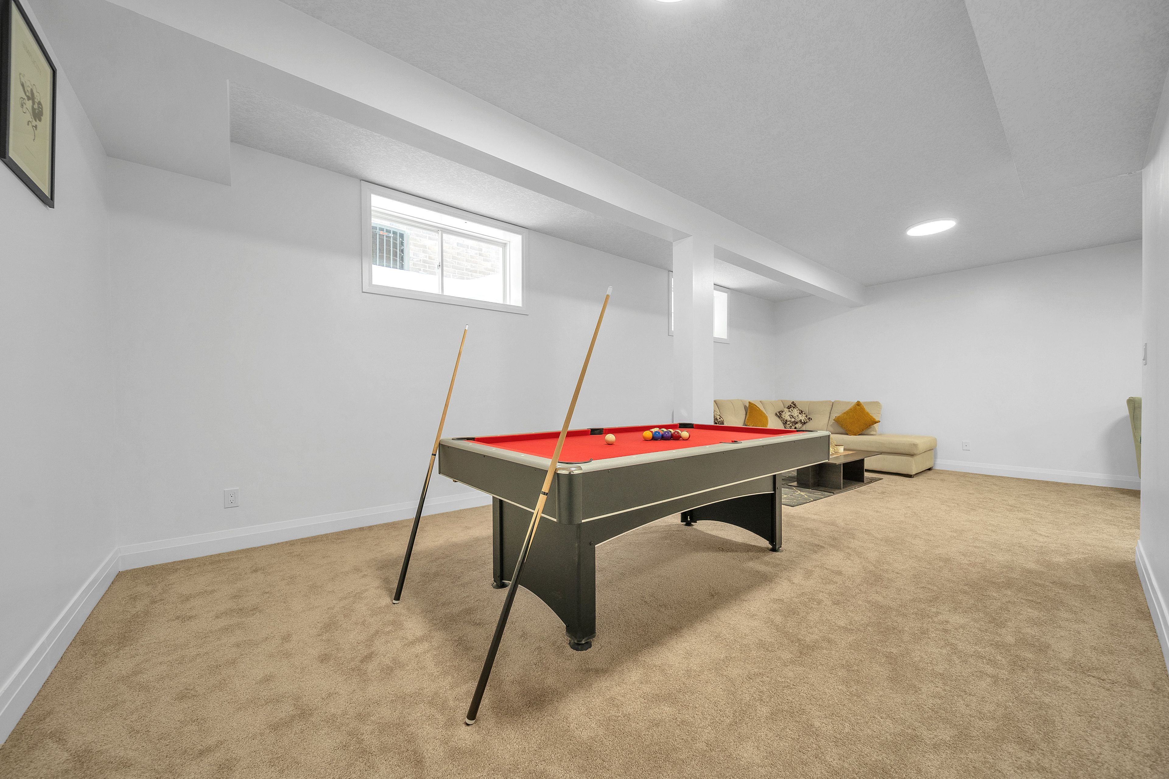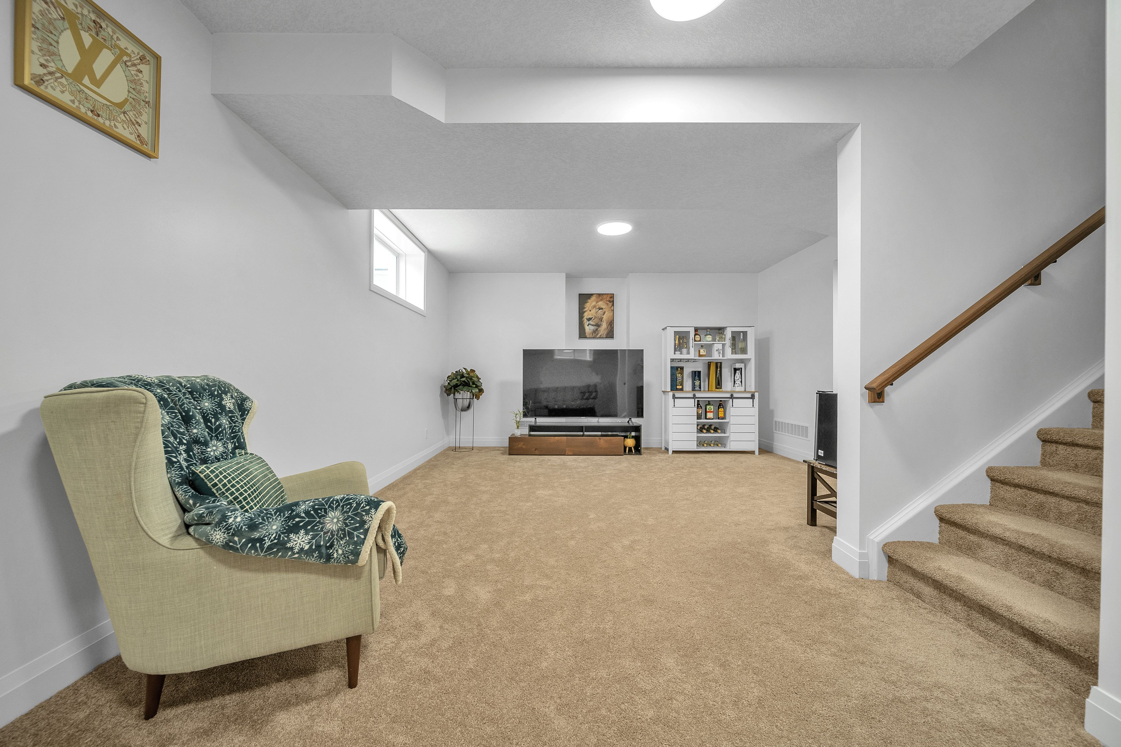 • Spacious finished basement with lounge, bar area, and bath.