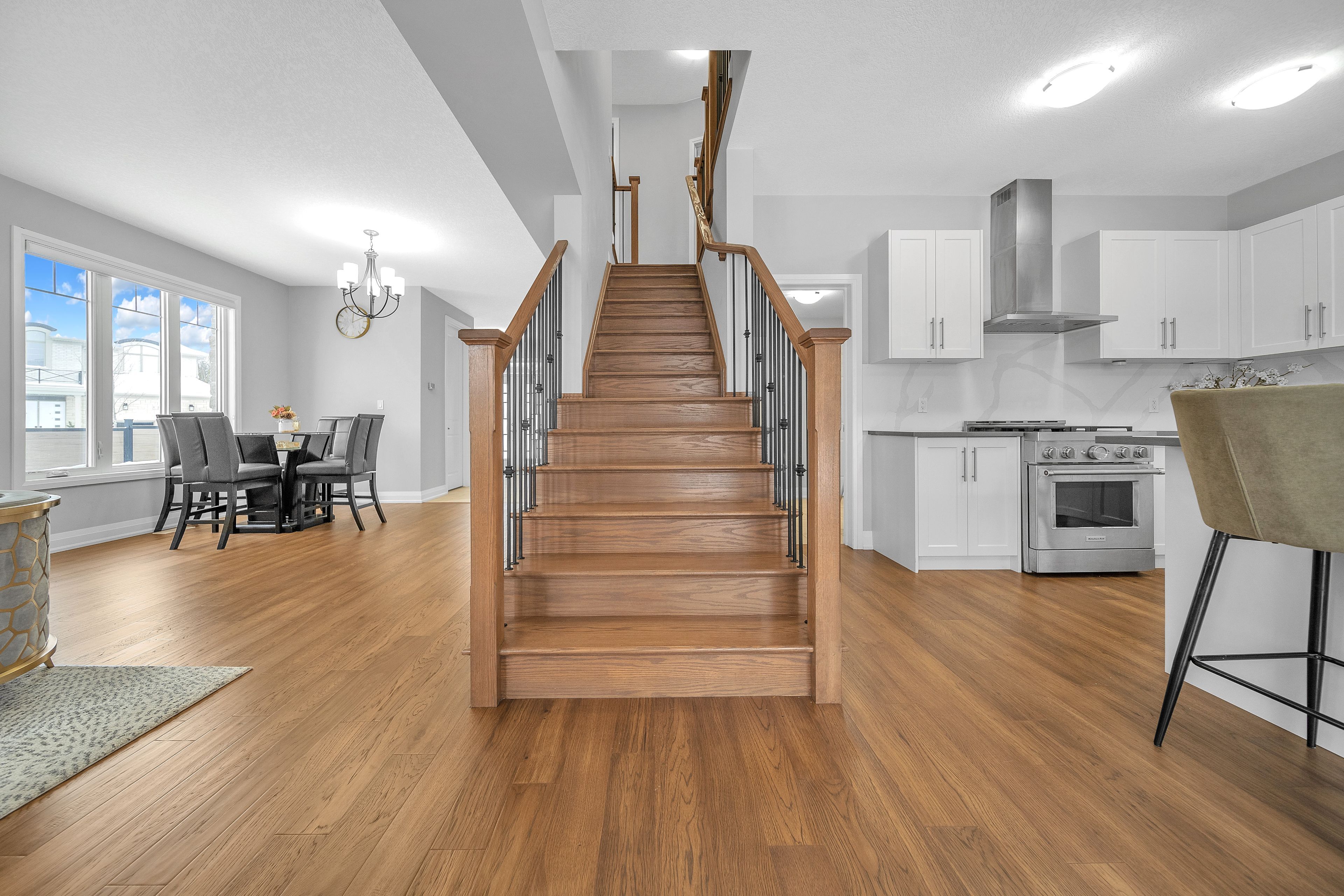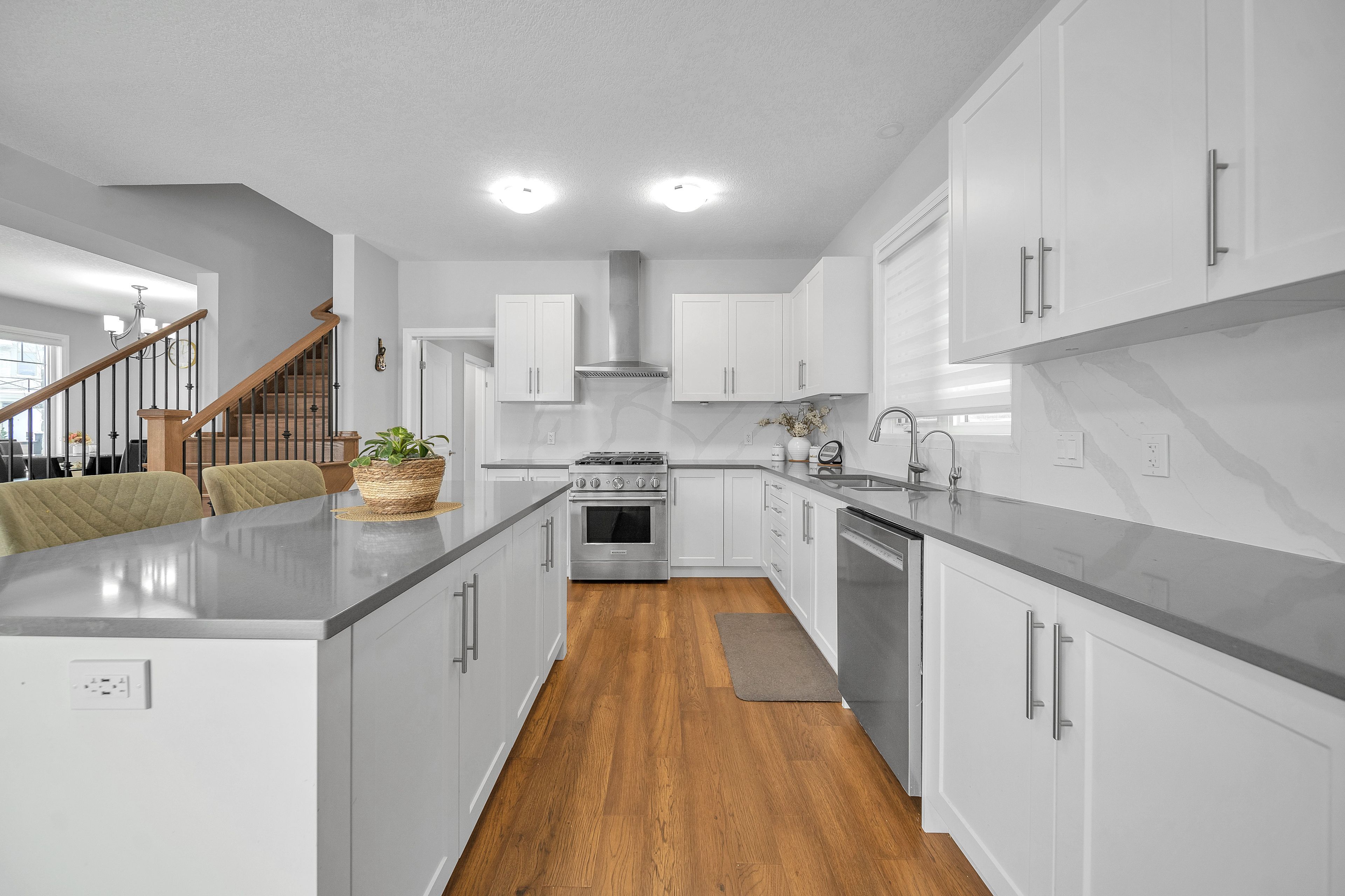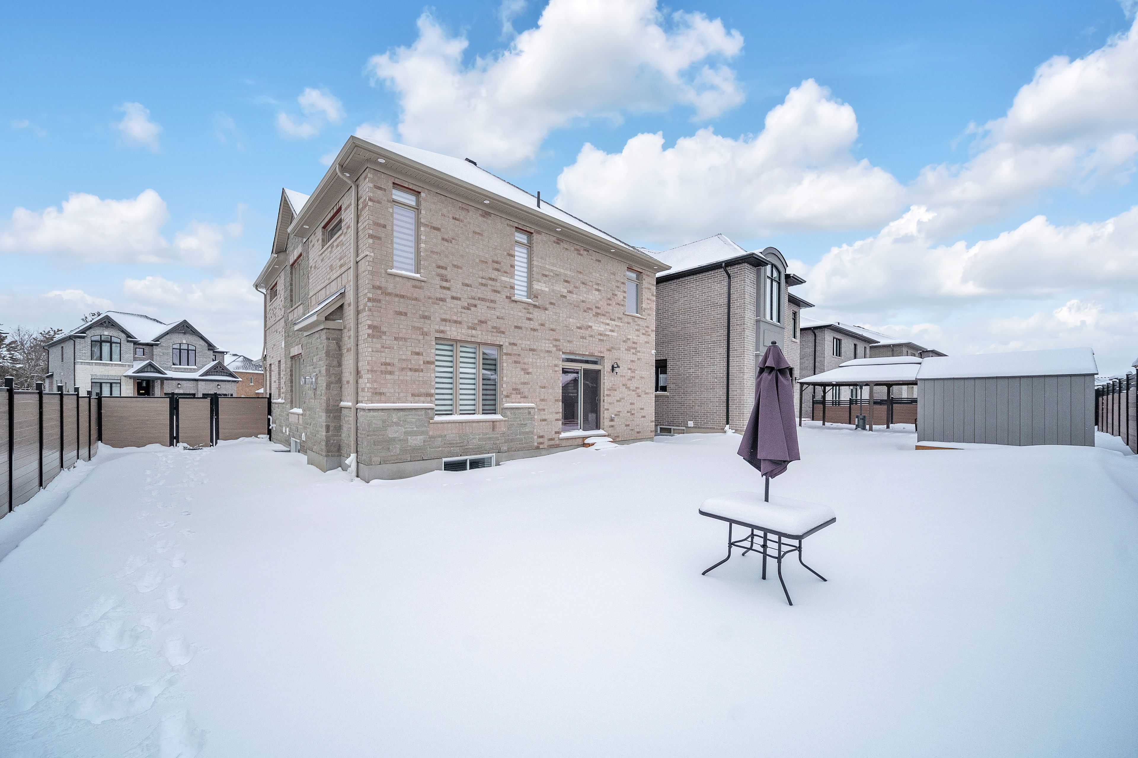 Exquisite 2023 built luxury residence adjacent to evenstone walking trail on a premium 50ftextra-wide corner lot by renowned kenmore homes,step outside to a beautifully proportioned backyard and side yard,elegantly enclosed by a premium vinyl fence,offering privacy & polished outdoor aesthetic. This exceptional property blends luxury, function, and modern elegance & still under tarion warranty offering over 3400sq ft of living space, it offers long-term value and peace of mind. Step inside to 9ft ceilings on the main floor and 9-ft ceilings throughout the upper levels, all finished with sleek,contemporary touches that elevate the entire space with upgraded 8ft doors. The gourmet kitchen is a chef's dream, equipped with top-tier appliances, including premium gas stove,oven, wall built-in microwave, custom hood fan, and upgraded countertops with designer backplash while custom features like deep upper cabinets, an extended pantry add both style and function. The convenient main-floor laundry room makes everyday tasks easier. Upstairs, the home features 3 luxurious full bathrooms & 4 spacious bedrooms all equipped with custom-built closets & a decent walk-in closet in the main bed providing plenty of room foryour needs, including 2 modern styled ensuites with glass showers and two indulgent soaking tubs, creating a serene experience. The expansive builder finished basement has upgraded 9-ft ceilings with larger windows ready for your personal entertainment including a spacious lounge with a pool table & bar area equipped with fridge & microwave, plus a 3-piece full bathroom with tub, additional basement laundry ready to use whether you envision a media room, gym, or additional living space, the functionalities are endless. Finished garage space equipped with modern light fixtures & heavy duty ev car charging portal ready to plug-in,owned security monitoring system. Located just minutes from jw gerth elementary school & scenic walking trails.