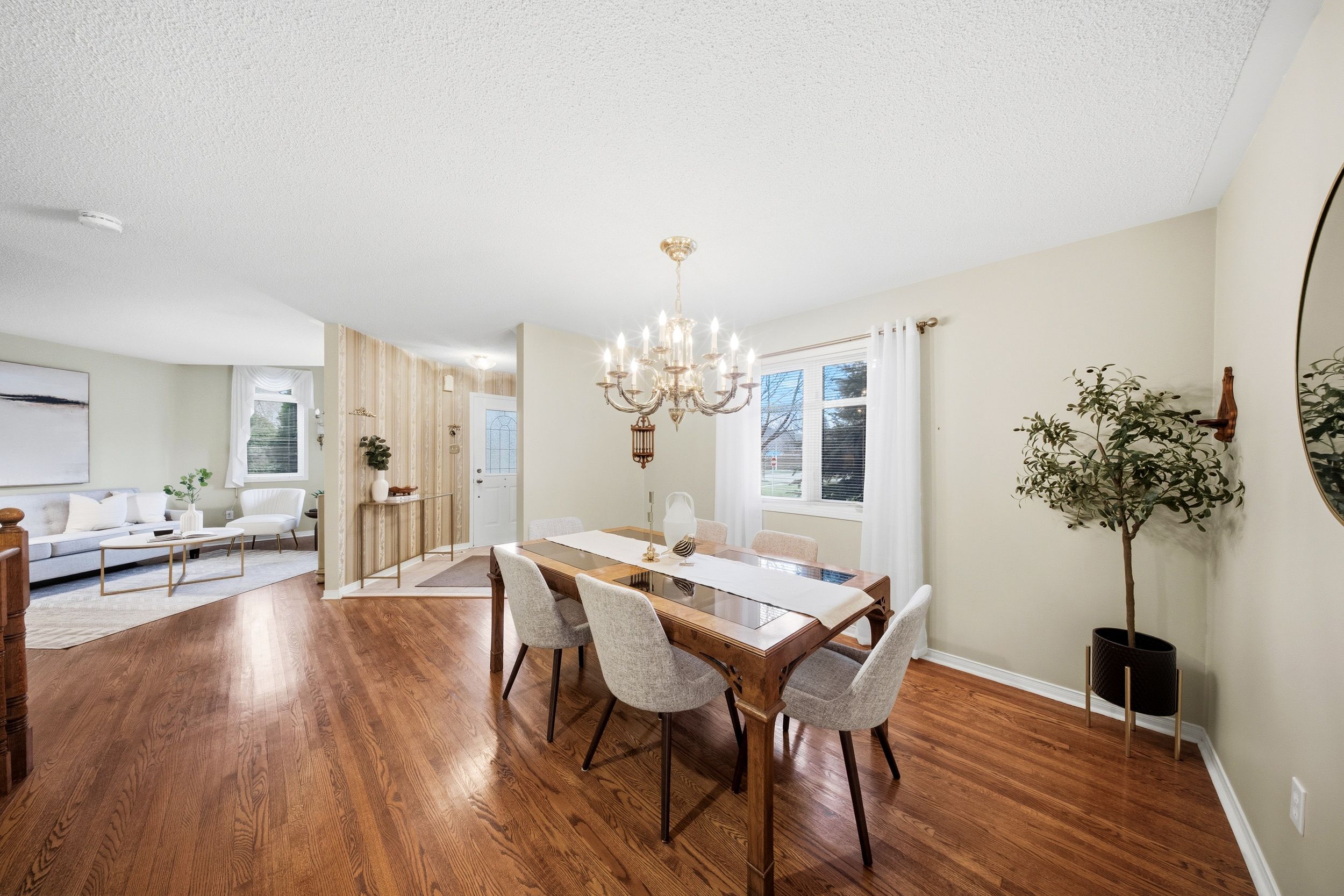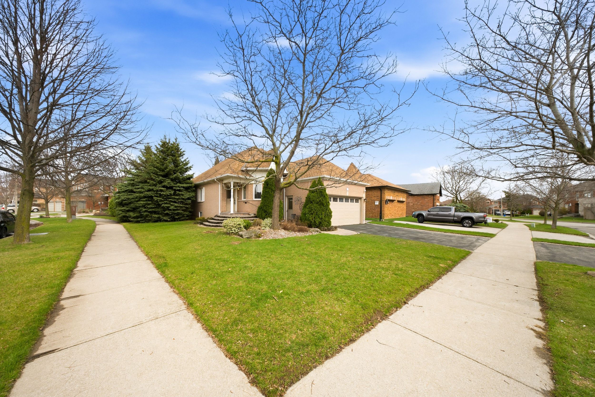 Rarely offered detached bungalow on a premium corner lot in sought-after south georgetown. This well-maintained home showcases beautiful landscaping leading to a welcoming front foyer and formal living room overlooking the front yard. The separate dining room features a large window and laminate flooring, ideal for entertaining. The u-shaped kitchen offers excellent workflow, a mirrored backsplash, and overlooks the breakfast area with walkout to the back patio. The inviting family room boasts large windows, a cathedral ceiling, and a cozy gas fireplace with built-in shelving. The primary suite includes his-and-hers closets, complemented by a second bedroom, full bathroom, and convenient main floor laundry. The finished basement adds exceptional living space with a spacious recreation room, abundant storage, a third bedroom, and a workshop with potential for further customization. Ideally located close to parks, trails, schools, shopping, and commuter routes with easy access from 8th line. Just minutes to the gellert community centre featuring sports fields, swimming, a skate park, splash pad, and year-round family programming.