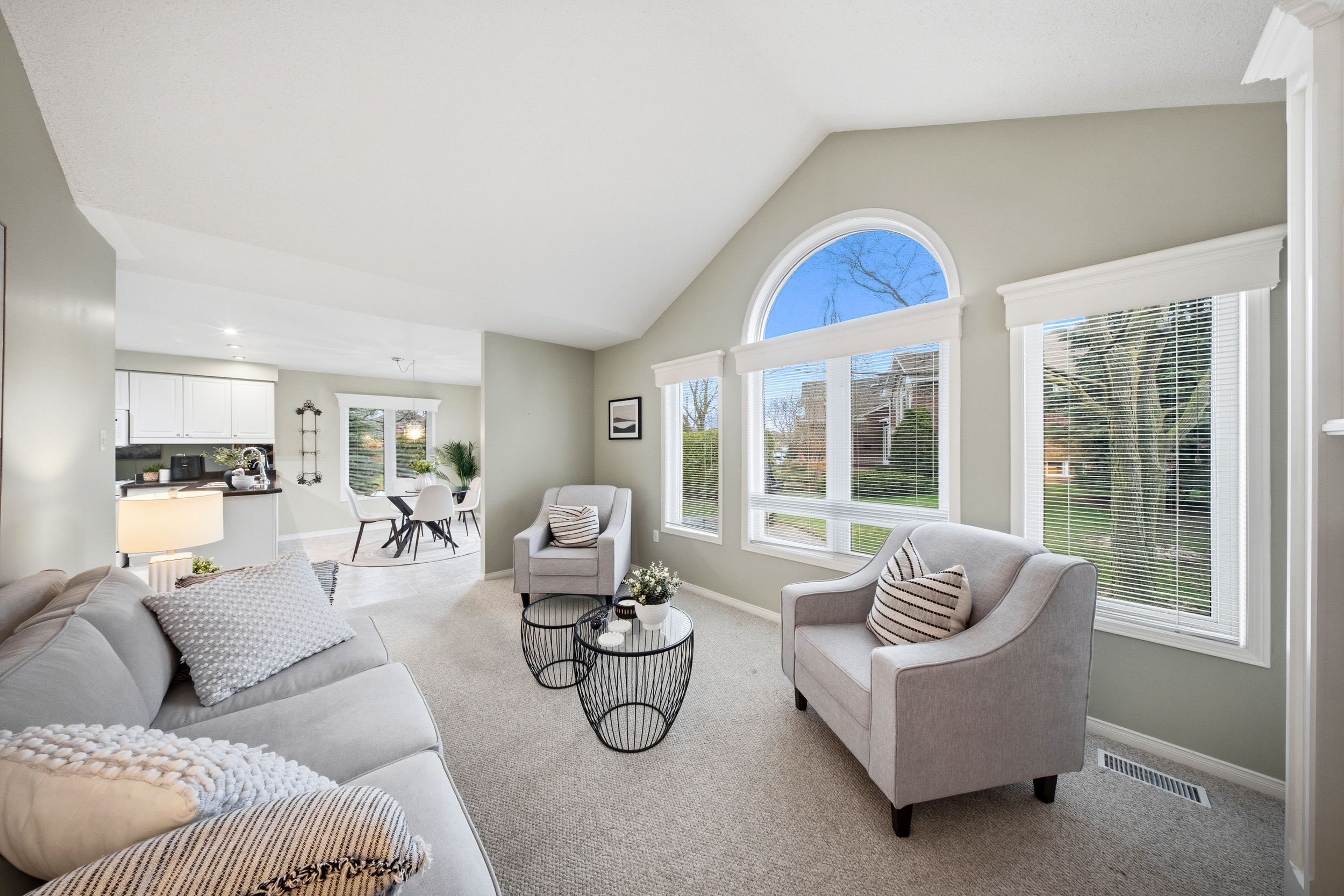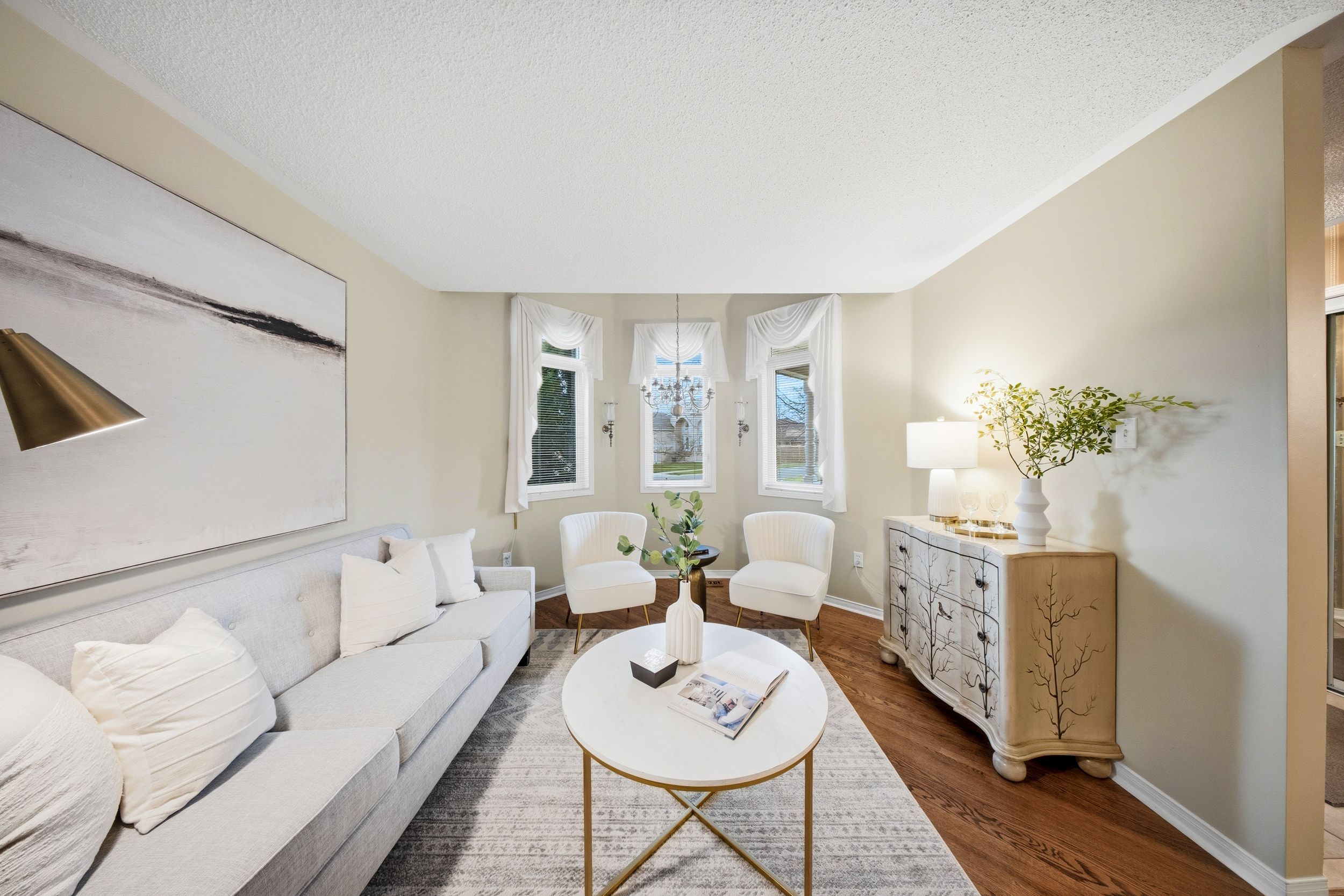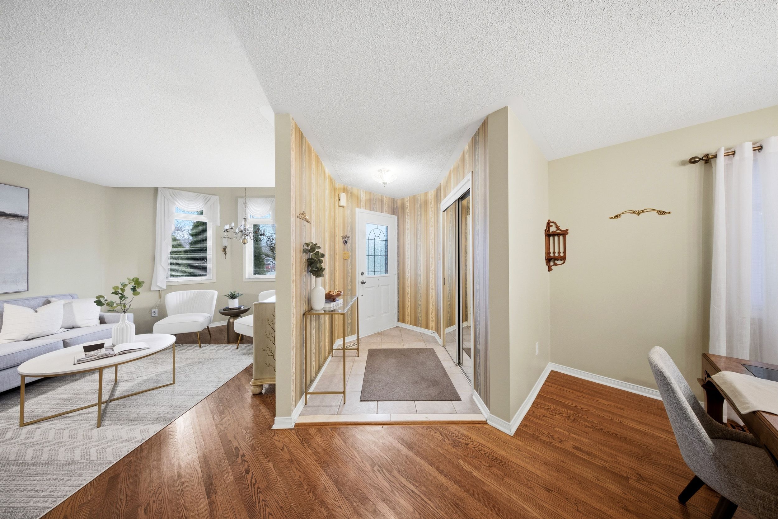 • Well-maintained landscaping leads to a welcoming front foyer and living room.