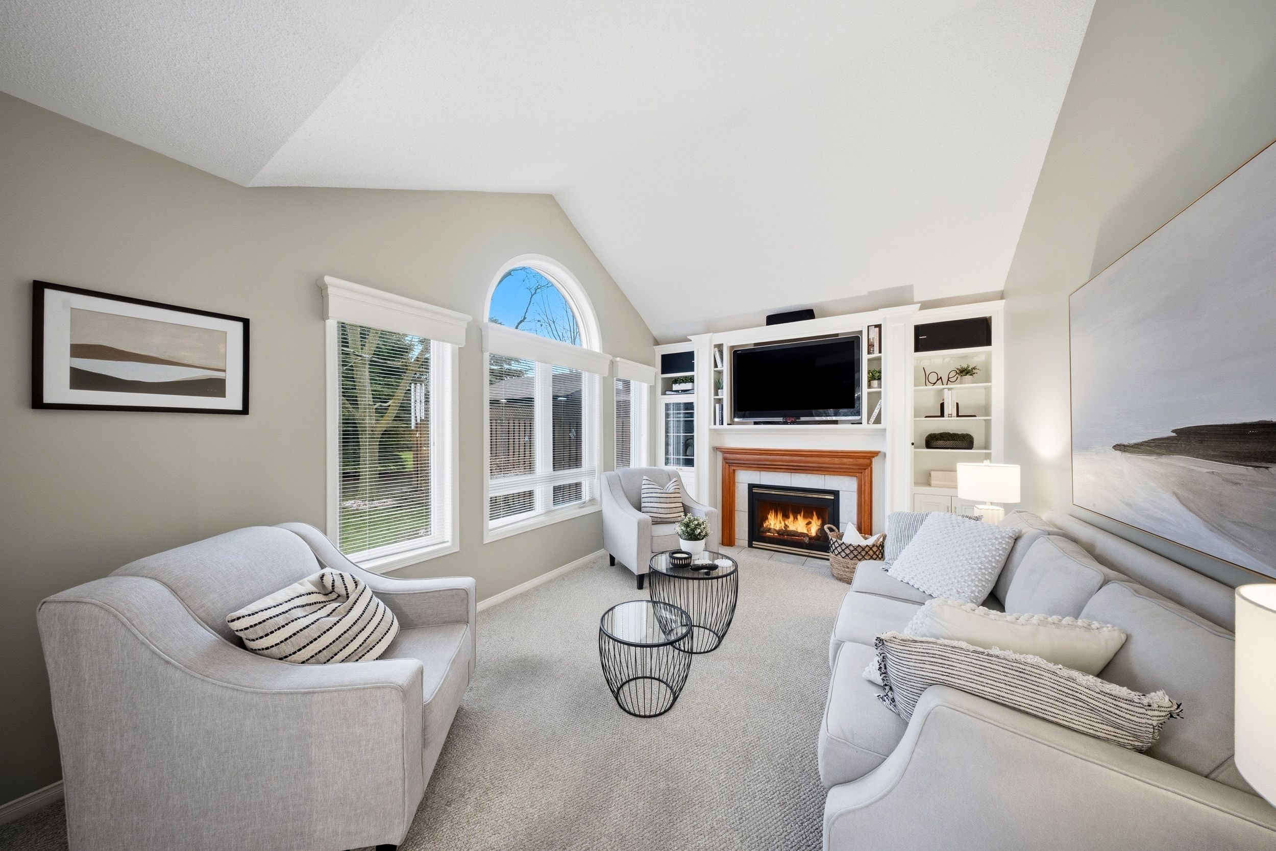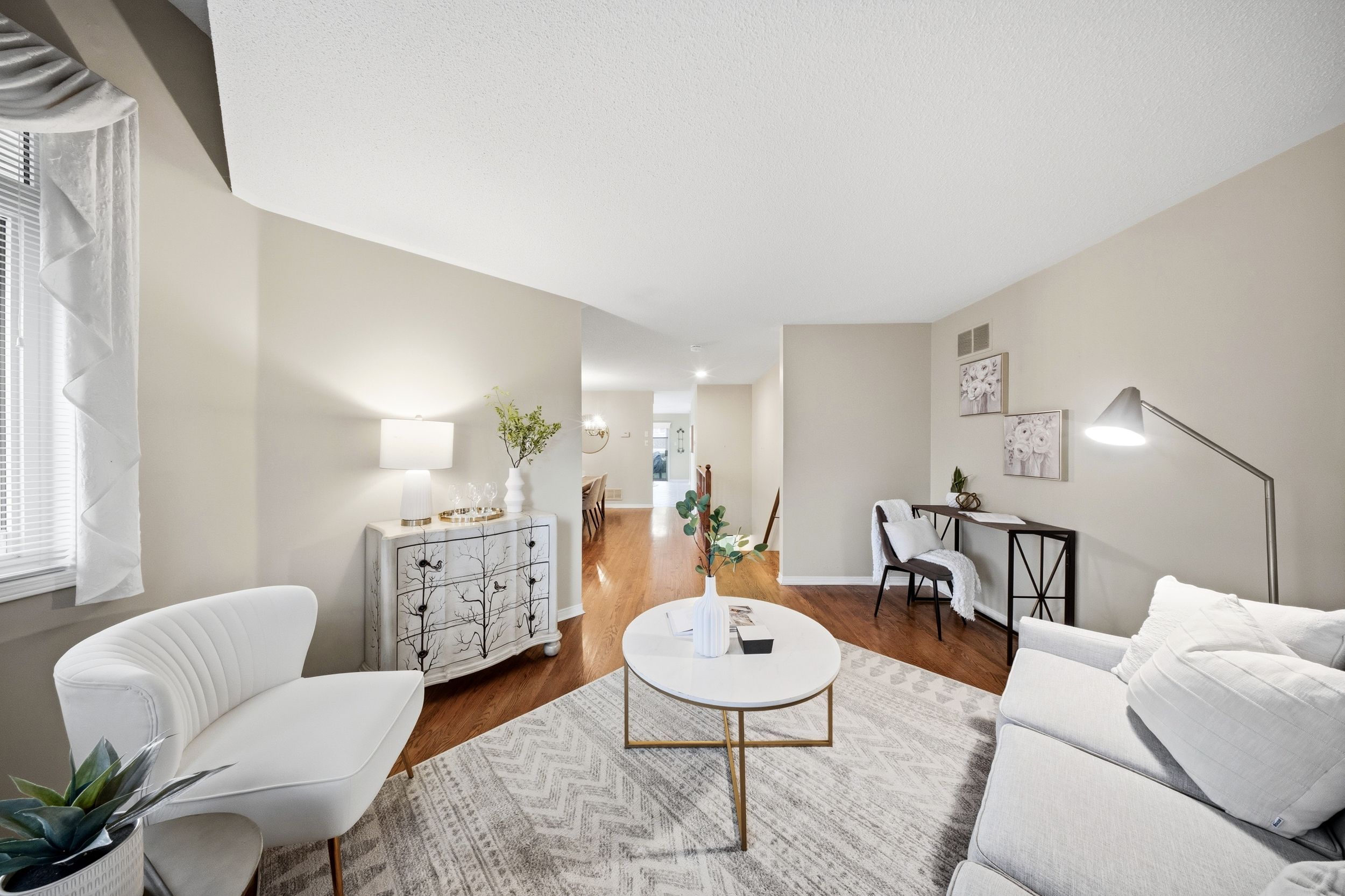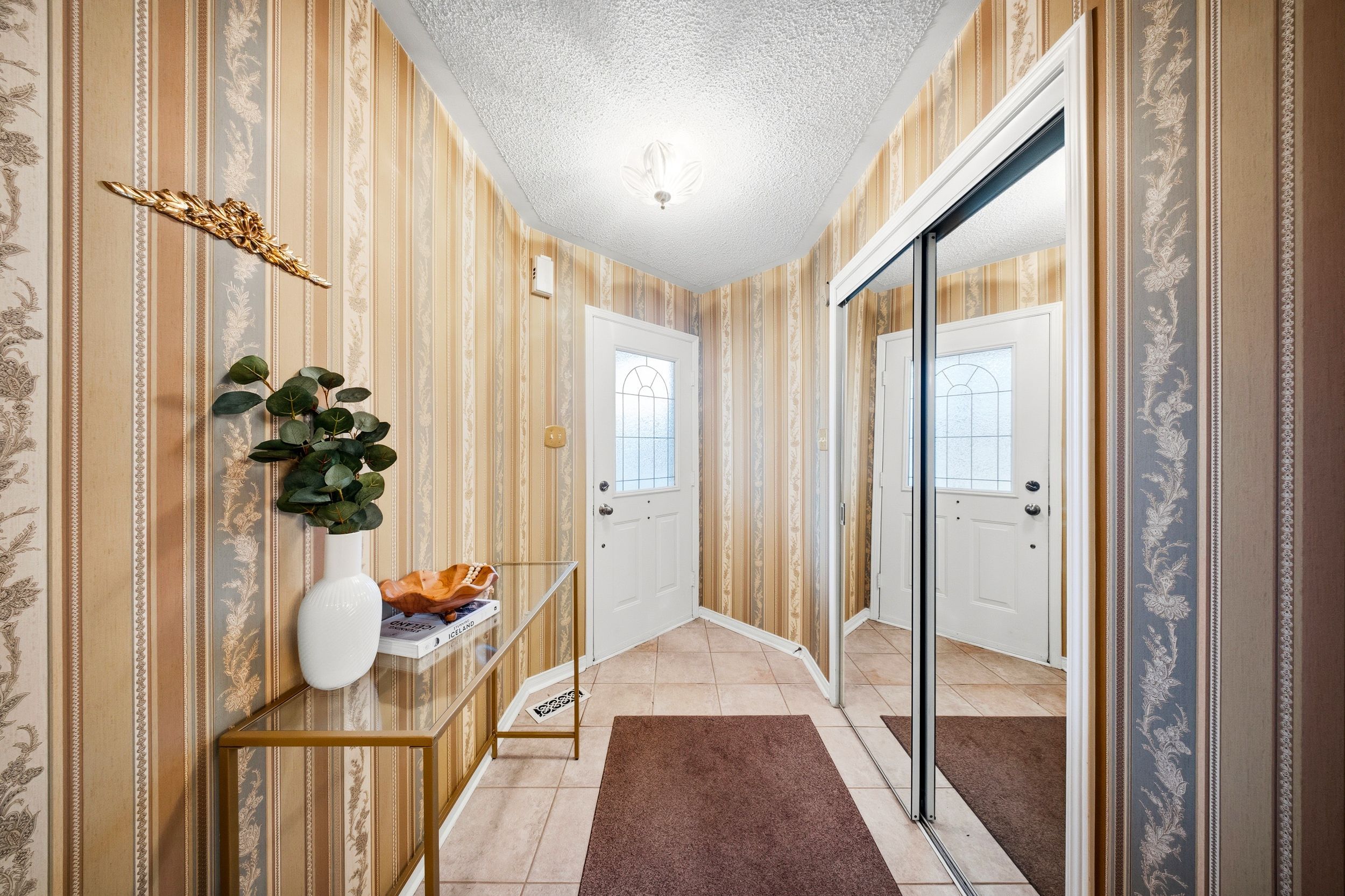 • Well-maintained landscaping leads to a welcoming front foyer and living room.