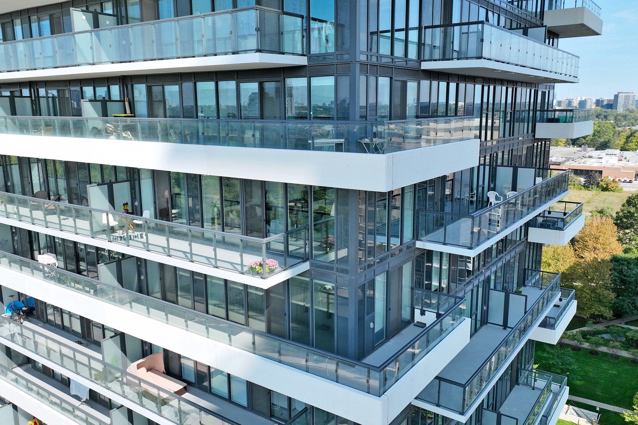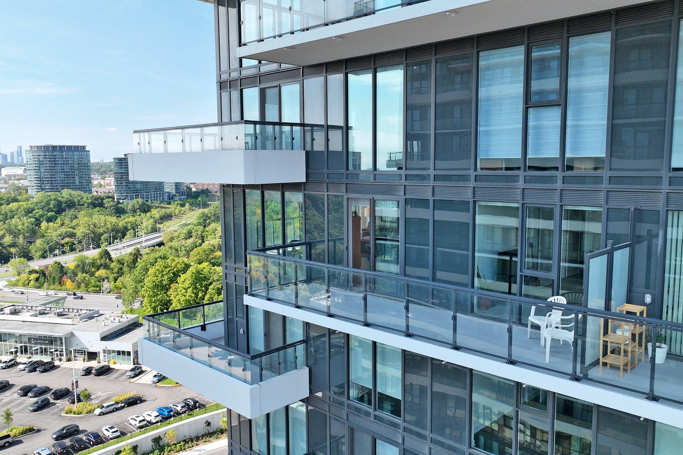 Step into the luxury of 20 inn on the park, a prestigious tridel built residence offering refined living at its finest. This beautifully appointed corner suite combines elegance, comfort, and style while showcasing breathtaking south facing views of the toronto skyline and green space. Bathed in natural light through floor to ceiling windows, the spacious layout features a seamless flow between the modern kitchen, dining, and living areas, perfect for both entertaining and everyday living. The chef inspired kitchen features a center island, and ample counter space, thoughtfully designed for both function and style. Two spacious open balconies extend your living space, creating private retreats in the sky where you can unwind, entertain, or simply take in the sweeping city and park views. Enjoy access to resort-style amenities, including an outdoor pool, gym, bbq area, pet wash, and more. Located just minutes from sunnybrook park, the upcoming eglinton lrt, and with easy access to the dvp. More than a condo, this is a lifestyle, just move in and make it yours.