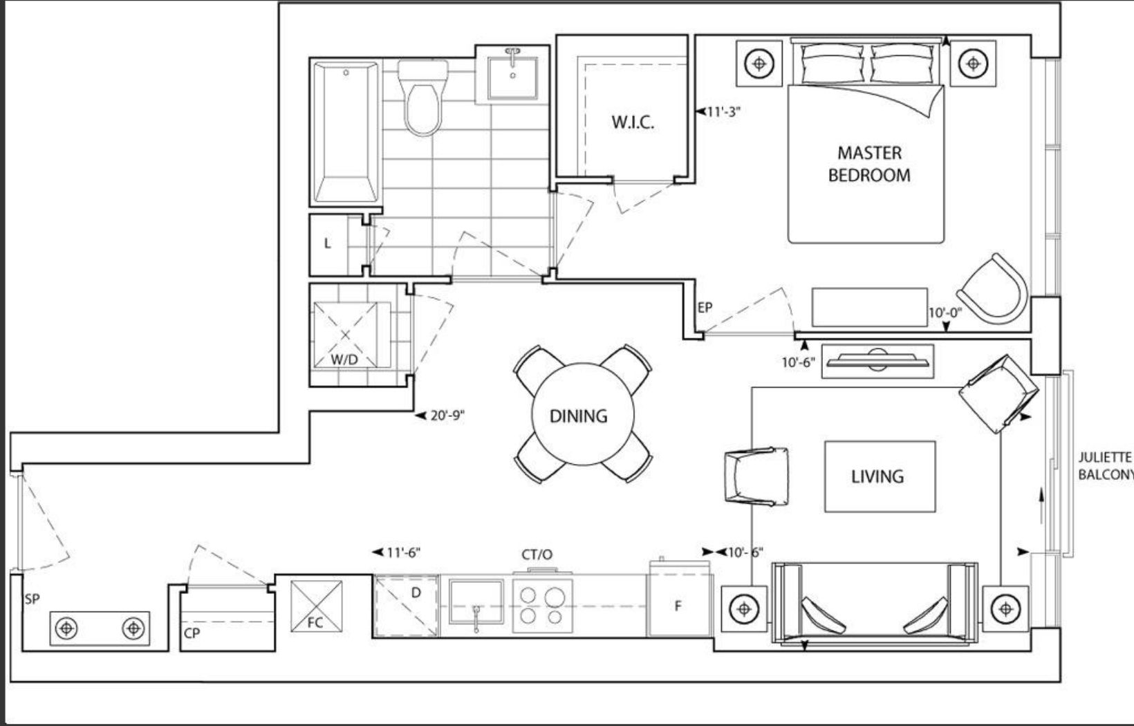• Luxury condo with 648 sq ft of living space and a balcony.