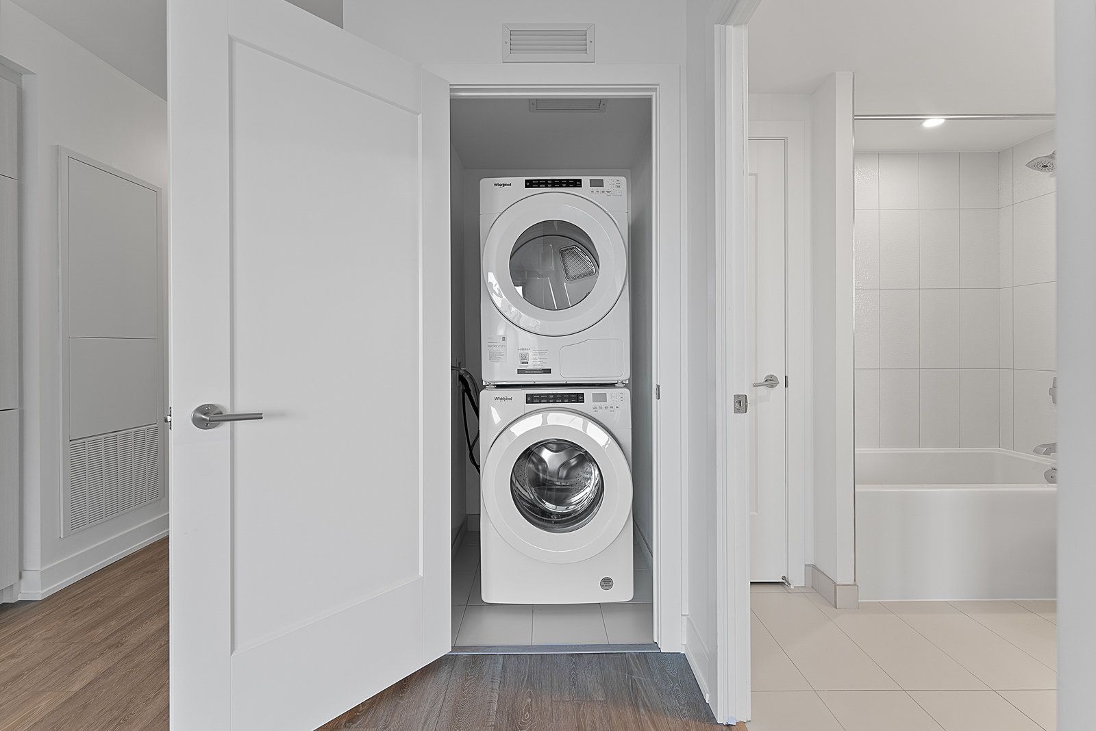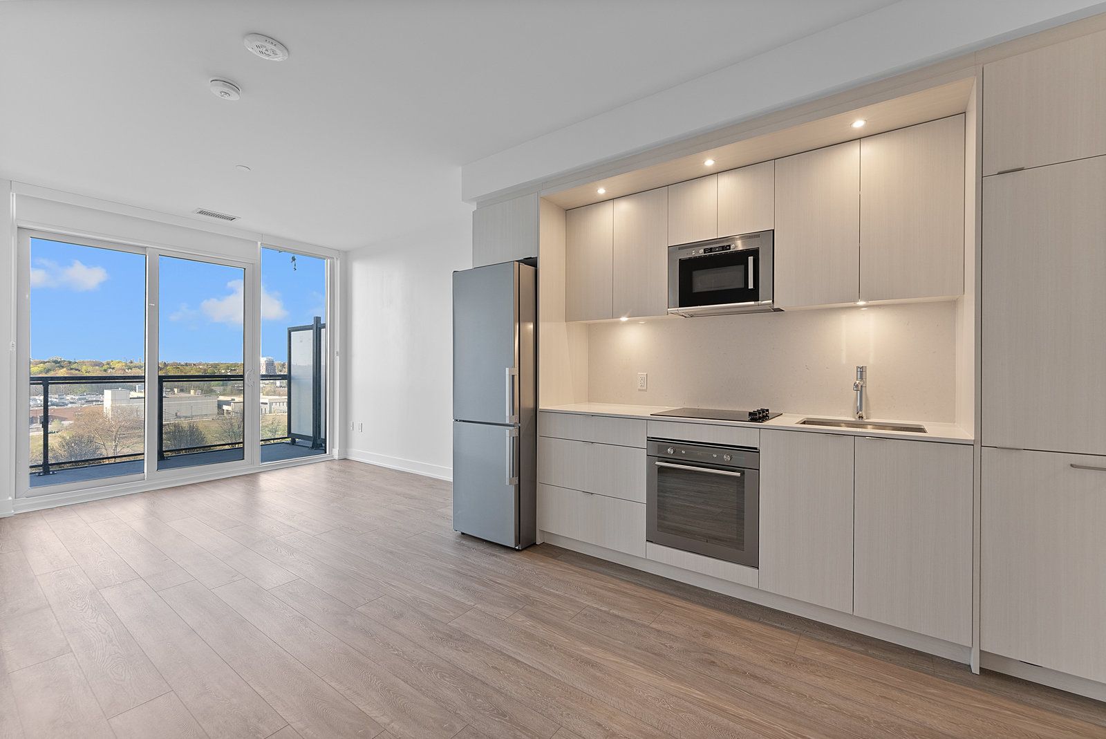 *live by the newly opened eglinton lrt* available may 1, 2026!* welcome to auberge, tridel's newest landmark in north york! This luxury 1 bedroom/1 bathroom condo suite offers 648 sq ft of living space +balcony. No carpet-laminate flooring throughout, premium linear kitchen with s/s appliances, lots of storage and premium countertop, large space perfect for the dining area. Living area opens to a balcony and offers views of north toronto. Primary bedroom offers north views, one walk in closet closet and a door to the bathroom. Floor to ceiling windows throughout and blinds. Extras**upscale amenities include state-of-the-art fitness center, yoga room, the grand entertainment lounge, or the multi-purpose lounge, lobbies. Steps from the new eglinton lrt line. Rogers internet may be included with the building maintenance fees for the foreseeable future- tenant to do their own due diligence with rogers. Photos are for layout reference only.