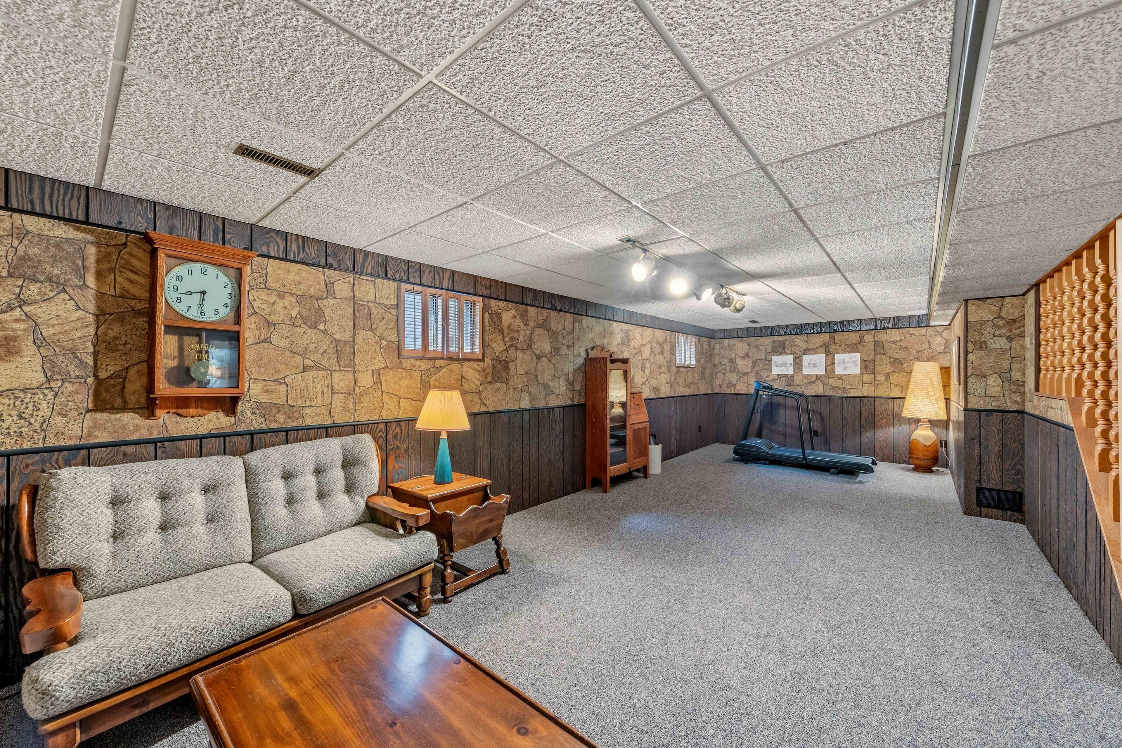 • Finished lower level providing additional living space and guest rooms.