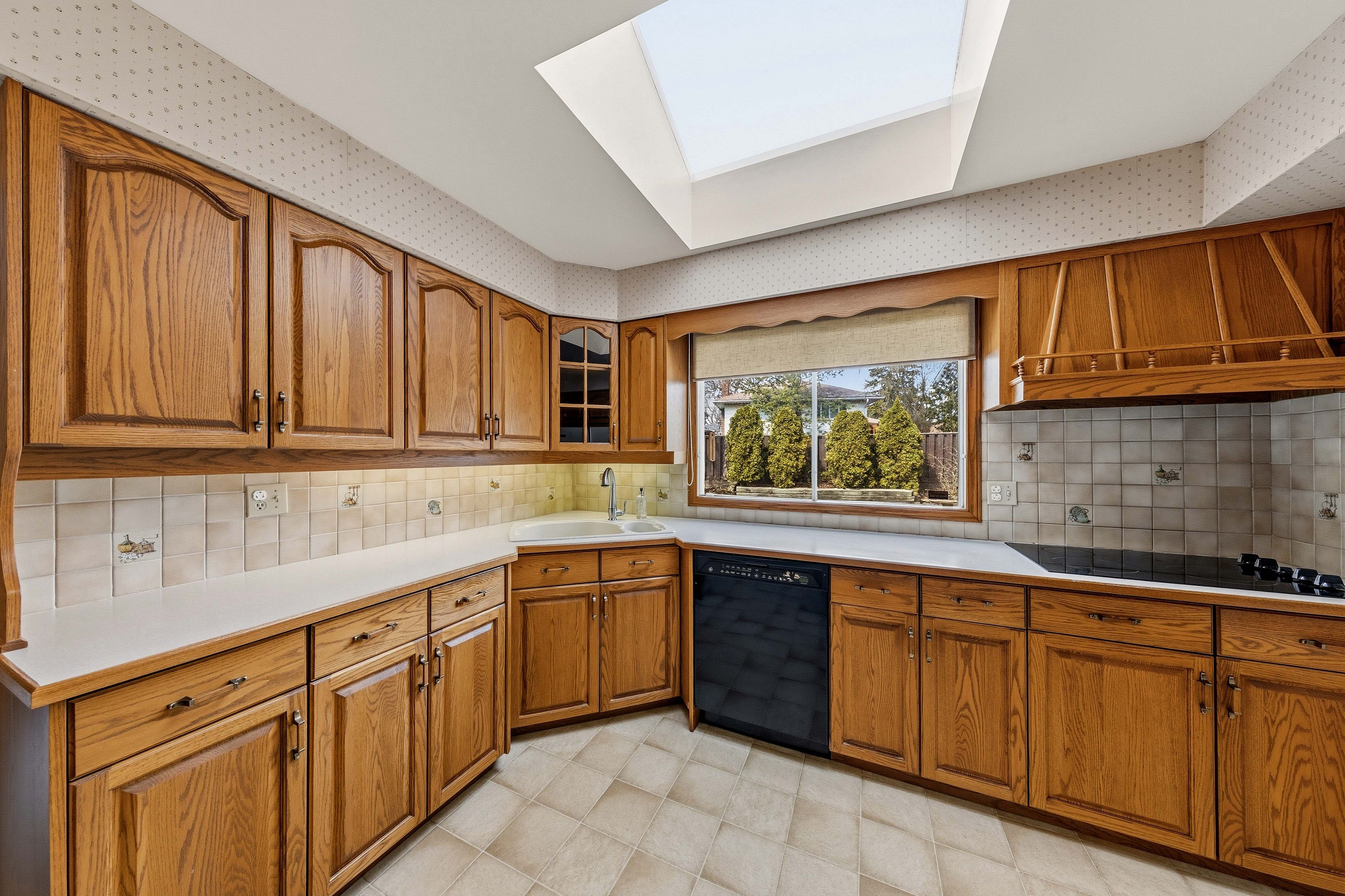 • Bright eat-in kitchen with premium appliances and skylight for natural light.