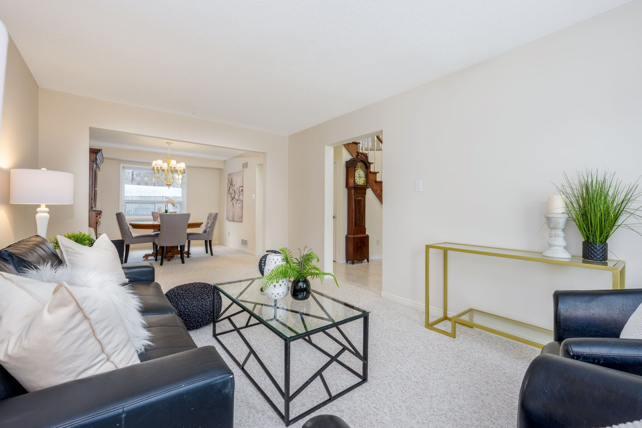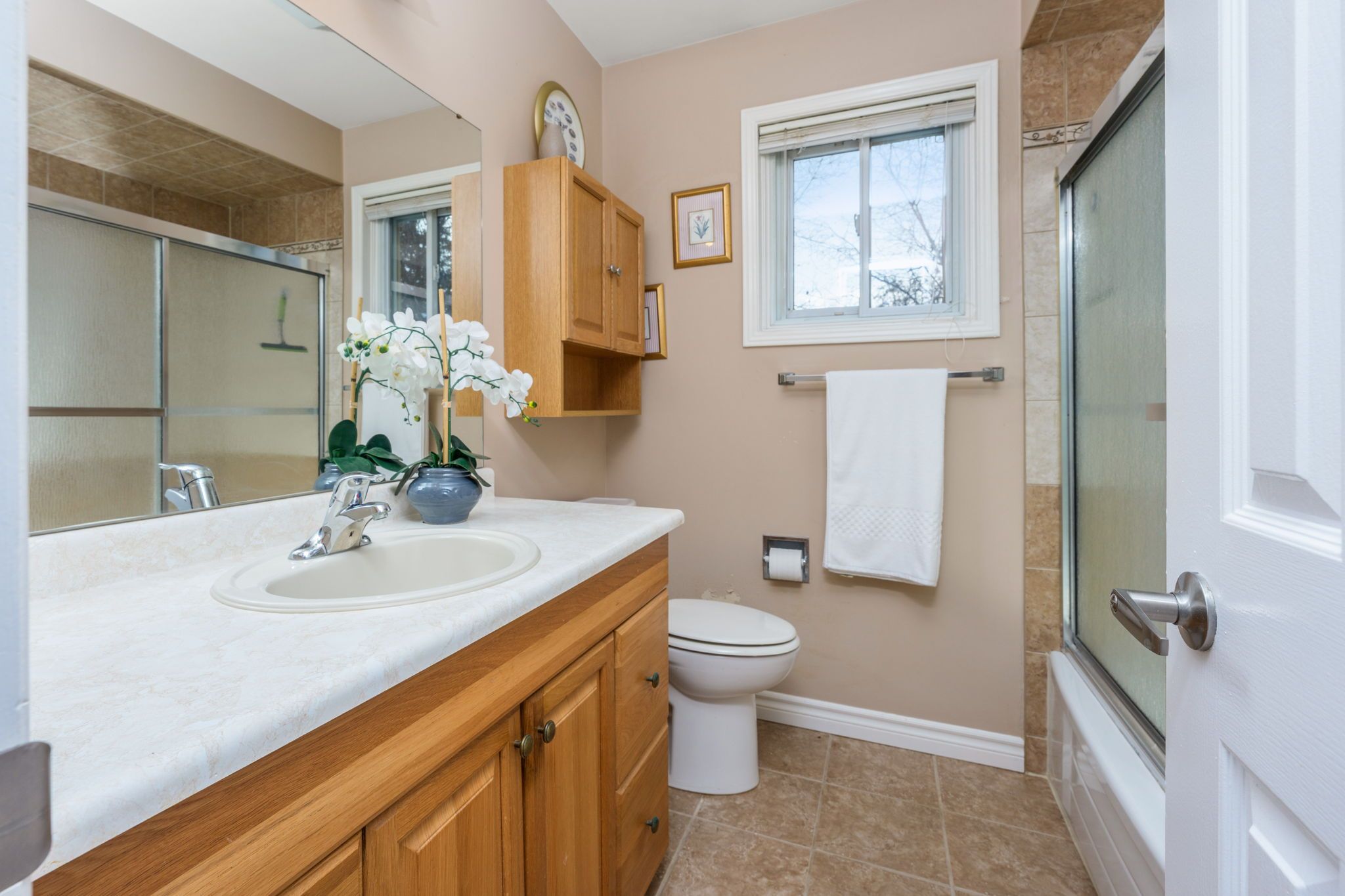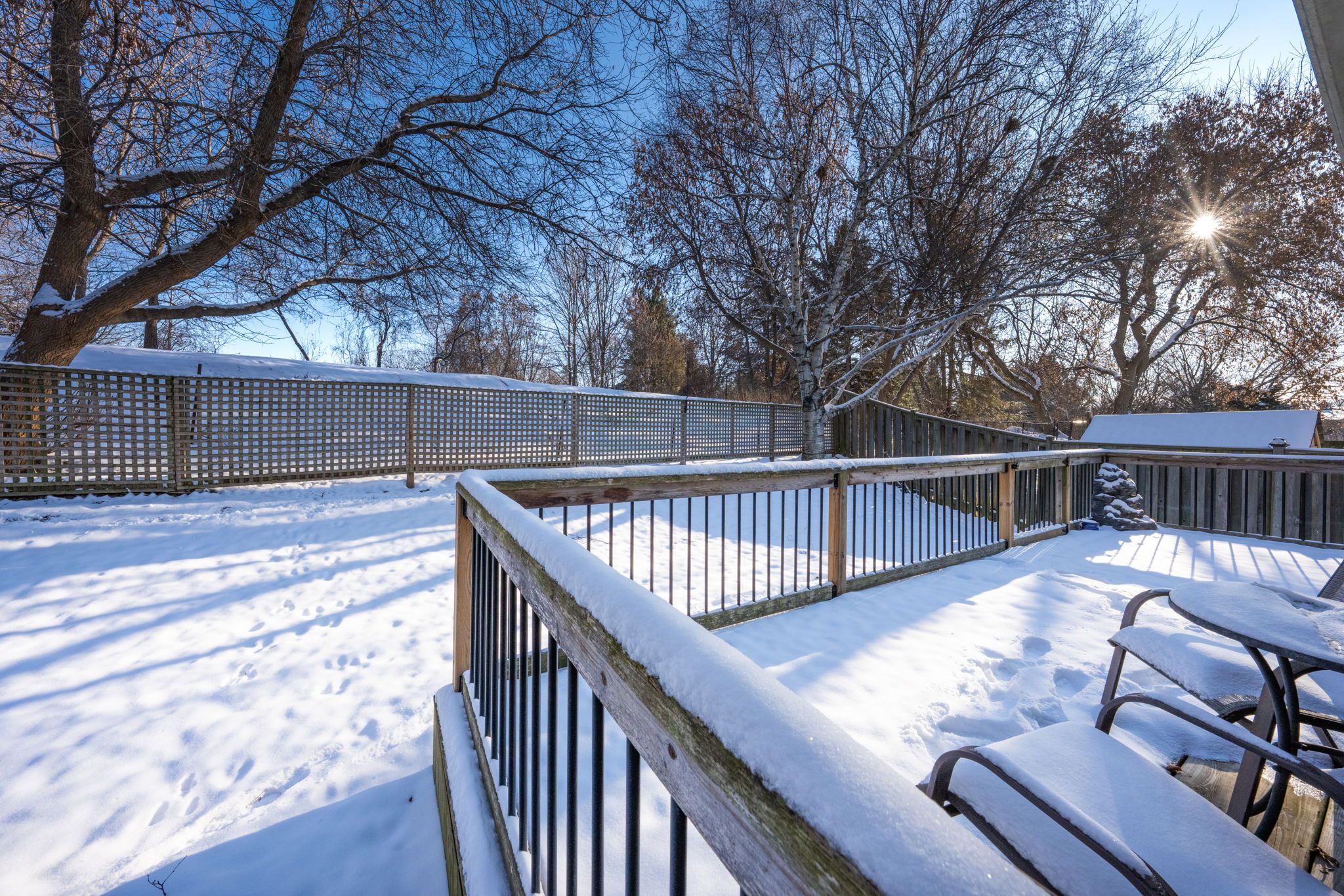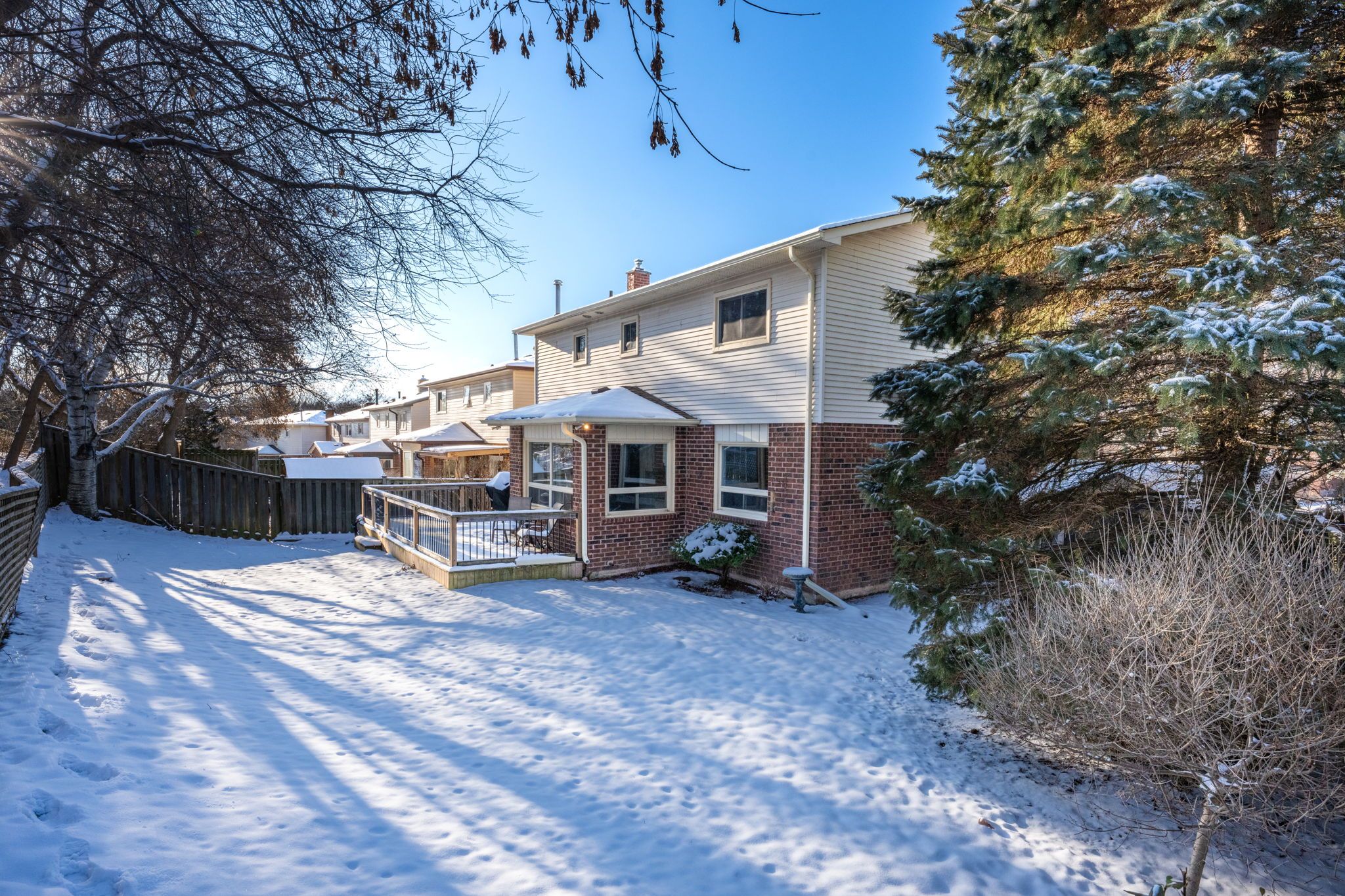 A concrete walkway and lovely landscaping welcome you to this well designed 3-bedroom, 2. 5-bathroom home on a quiet, family-friendly street. Step inside the sun-filled foyer and you'll immediately feel at home in the spacious main-level rooms. The combined living and dining areas strike the perfect balance offering an inviting retreat for quiet evenings and a bright open space for laughter-filled gatherings with friends and family. The kitchen with its neutral cabinetry and generous windows overlooking the backyard is the heart of the home and is ideal for casual meals, morning coffee or keeping an eye on kids at play in the large, fenced yard. A french door walkout from the breakfast area to the deck is perfect for barbecuing. The cozy family room, complete with a fireplace and another walkout to the deck is made for movie nights or simply curling up with a good book. Everyday convenience is enhanced with main-level laundry and direct access to the garage. An eye-catching wood staircase leads to the upper level where you'll find 3 spacious bedrooms, the primary with a walk-in closet and 4-piece ensuite. The partially finished basement adds flexibility with a roomy rec room, an additional (almost finished) area and plenty of storage/utility space. Outside, a large, fully fenced pie-shaped lot with large shed, mature trees and no homes behind offers endless space for play, gardening, or peaceful moments in the fresh air. All of this in a truly wonderful location-close to schools, go, downtown and more.