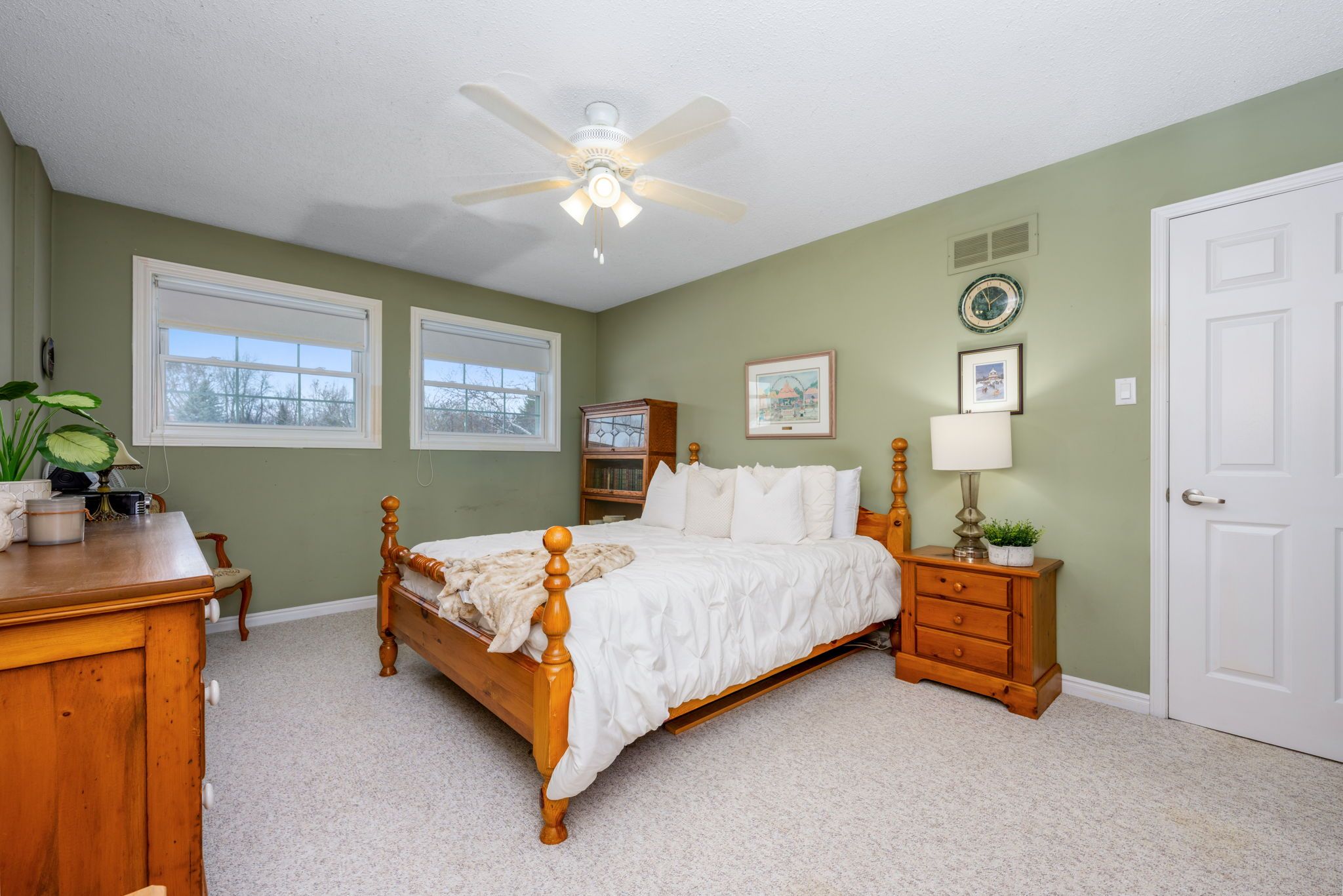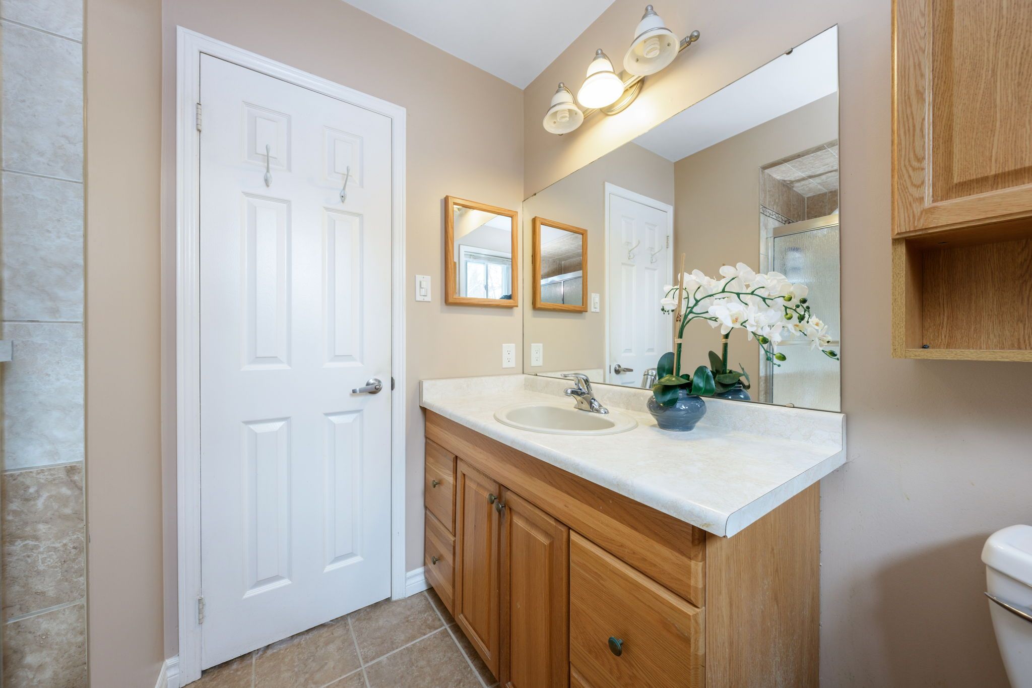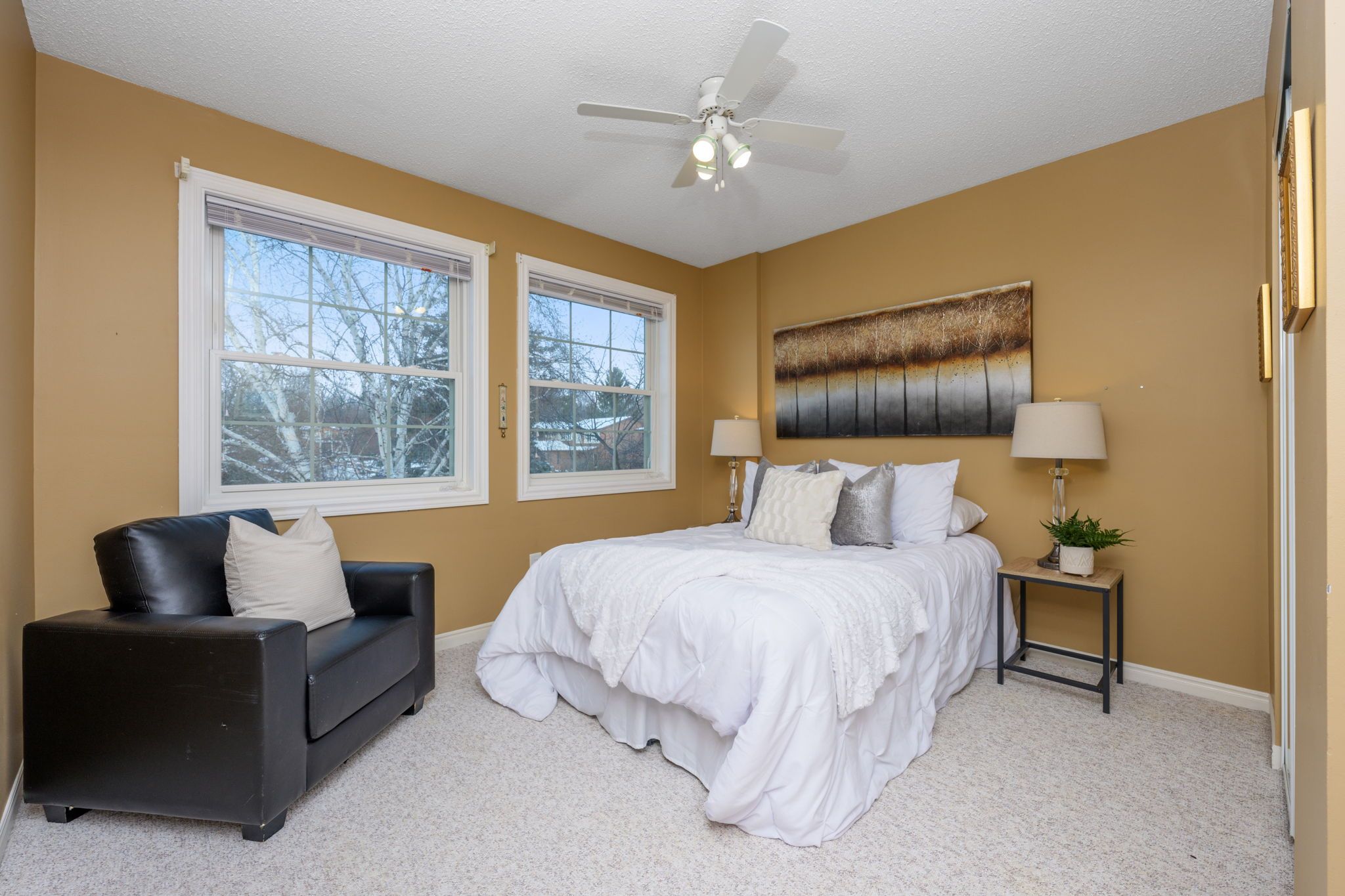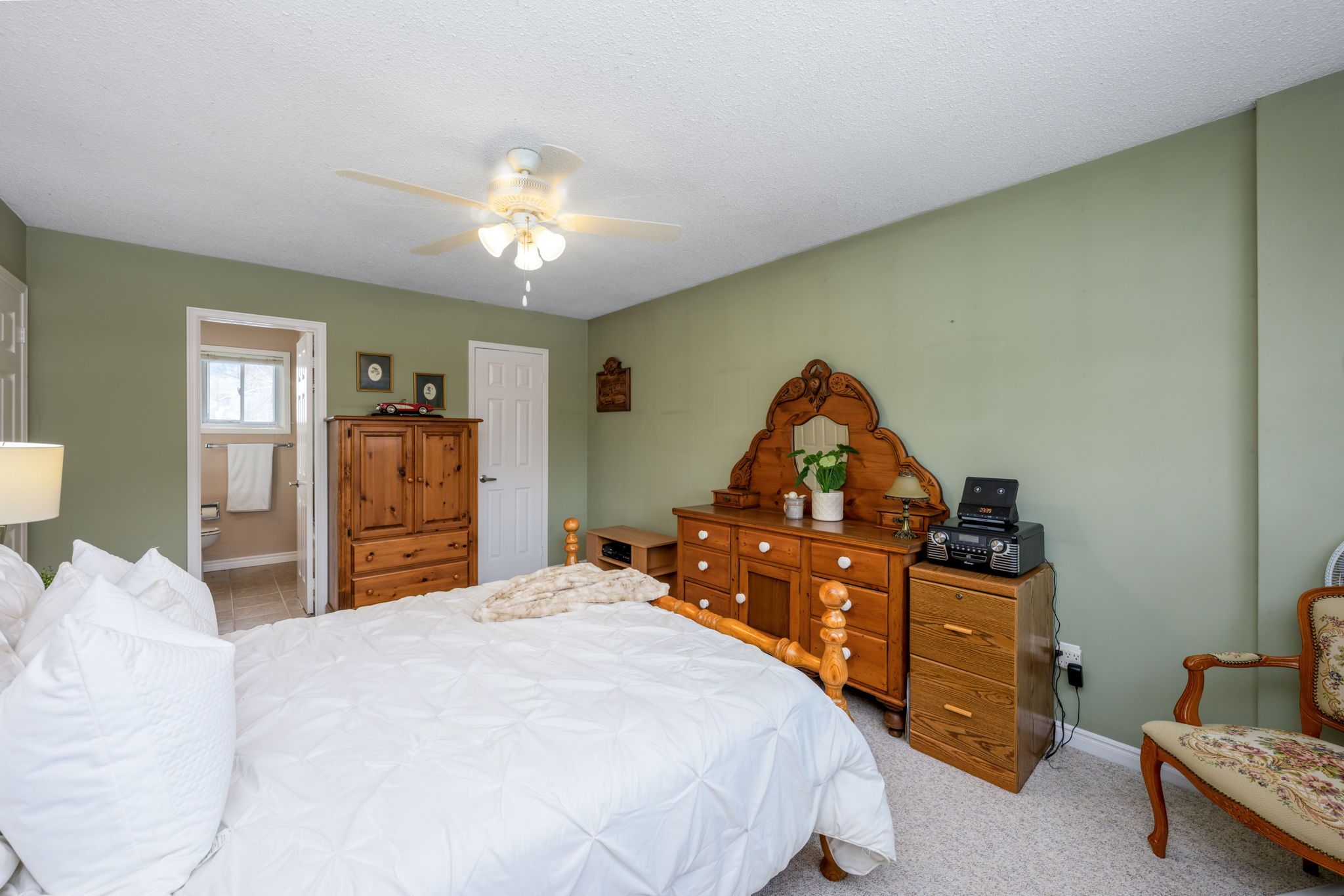 A concrete walkway and lovely landscaping welcome you to this well designed 3-bedroom, 2. 5-bathroom home on a quiet, family-friendly street. Step inside the sun-filled foyer and you'll immediately feel at home in the spacious main-level rooms. The combined living and dining areas strike the perfect balance offering an inviting retreat for quiet evenings and a bright open space for laughter-filled gatherings with friends and family. The kitchen with its neutral cabinetry and generous windows overlooking the backyard is the heart of the home and is ideal for casual meals, morning coffee or keeping an eye on kids at play in the large, fenced yard. A french door walkout from the breakfast area to the deck is perfect for barbecuing. The cozy family room, complete with a fireplace and another walkout to the deck is made for movie nights or simply curling up with a good book. Everyday convenience is enhanced with main-level laundry and direct access to the garage. An eye-catching wood staircase leads to the upper level where you'll find 3 spacious bedrooms, the primary with a walk-in closet and 4-piece ensuite. The partially finished basement adds flexibility with a roomy rec room, an additional (almost finished) area and plenty of storage/utility space. Outside, a large, fully fenced pie-shaped lot with large shed, mature trees and no homes behind offers endless space for play, gardening, or peaceful moments in the fresh air. All of this in a truly wonderful location-close to schools, go, downtown and more.