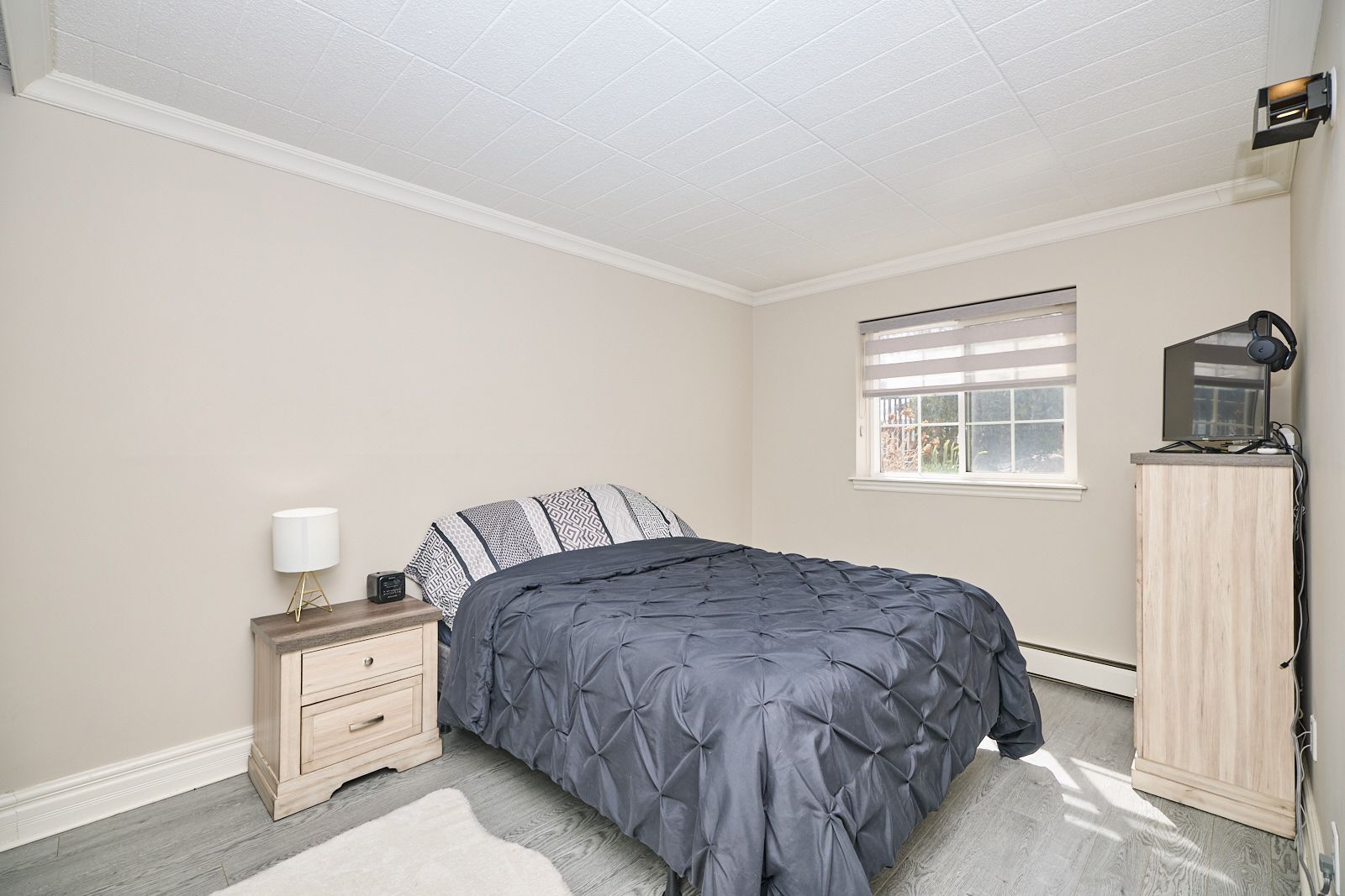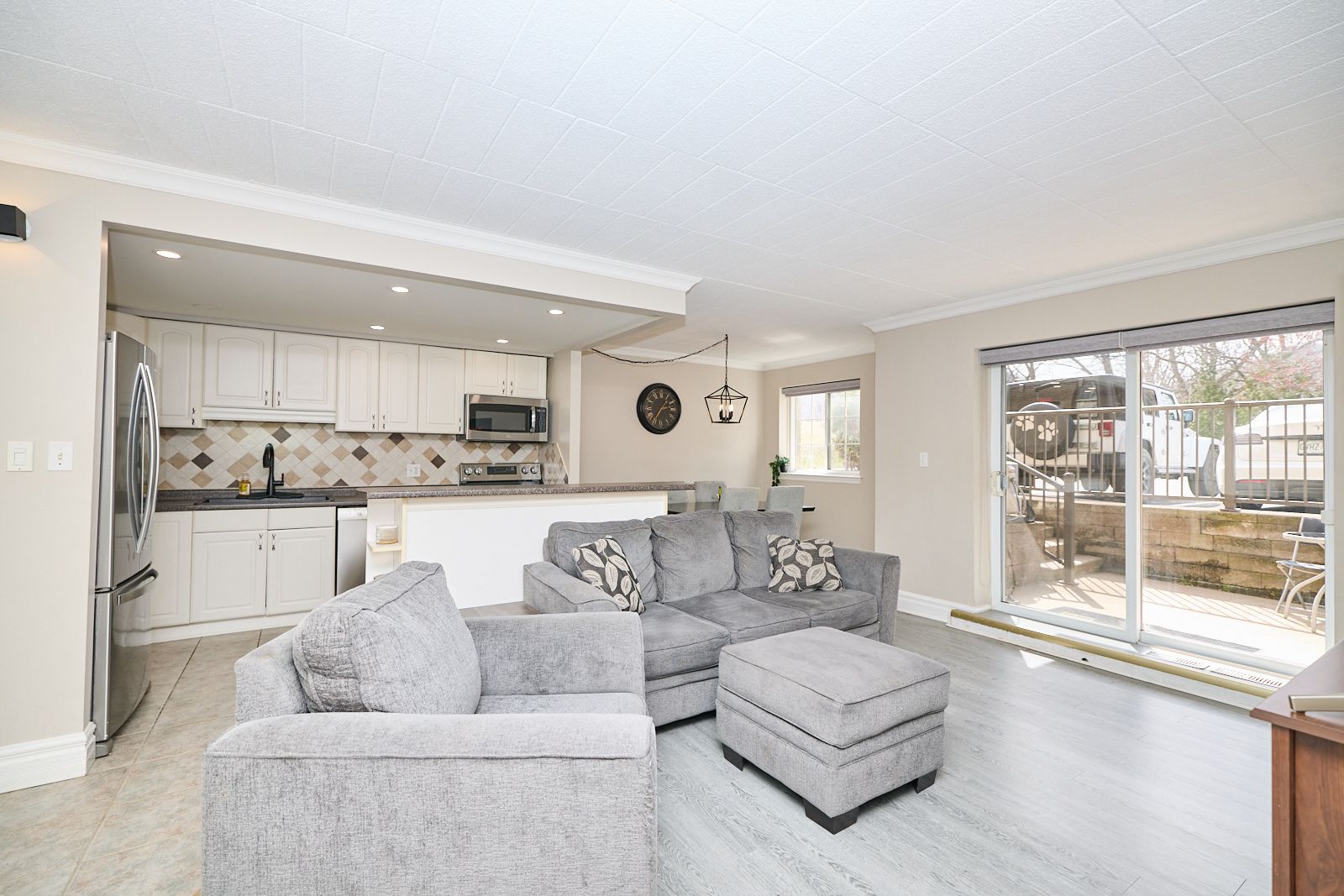 Discover the perfect blend of comfort and convenience in this charming 2-bedroom, 1-bathroom main floor condo, offering the perfect blend of style and convenience. This home features open-concept, laminate throughout, in-suite laundry and the kitchen features a spacious island and a bright eating area, ideal for entertaining or everyday living. Patio doors lead to a lovely terrace, perfect for morning coffee or evening relaxation. With two parking spots conveniently located right outside the unit, you'll enjoy seamless access. The condo fees include heat, hydro, water, internet, cable & parking. This quiet, smoke-free, pet-free building is just minutes from the qew and all major amenities. Don't miss this exceptional opportunity.