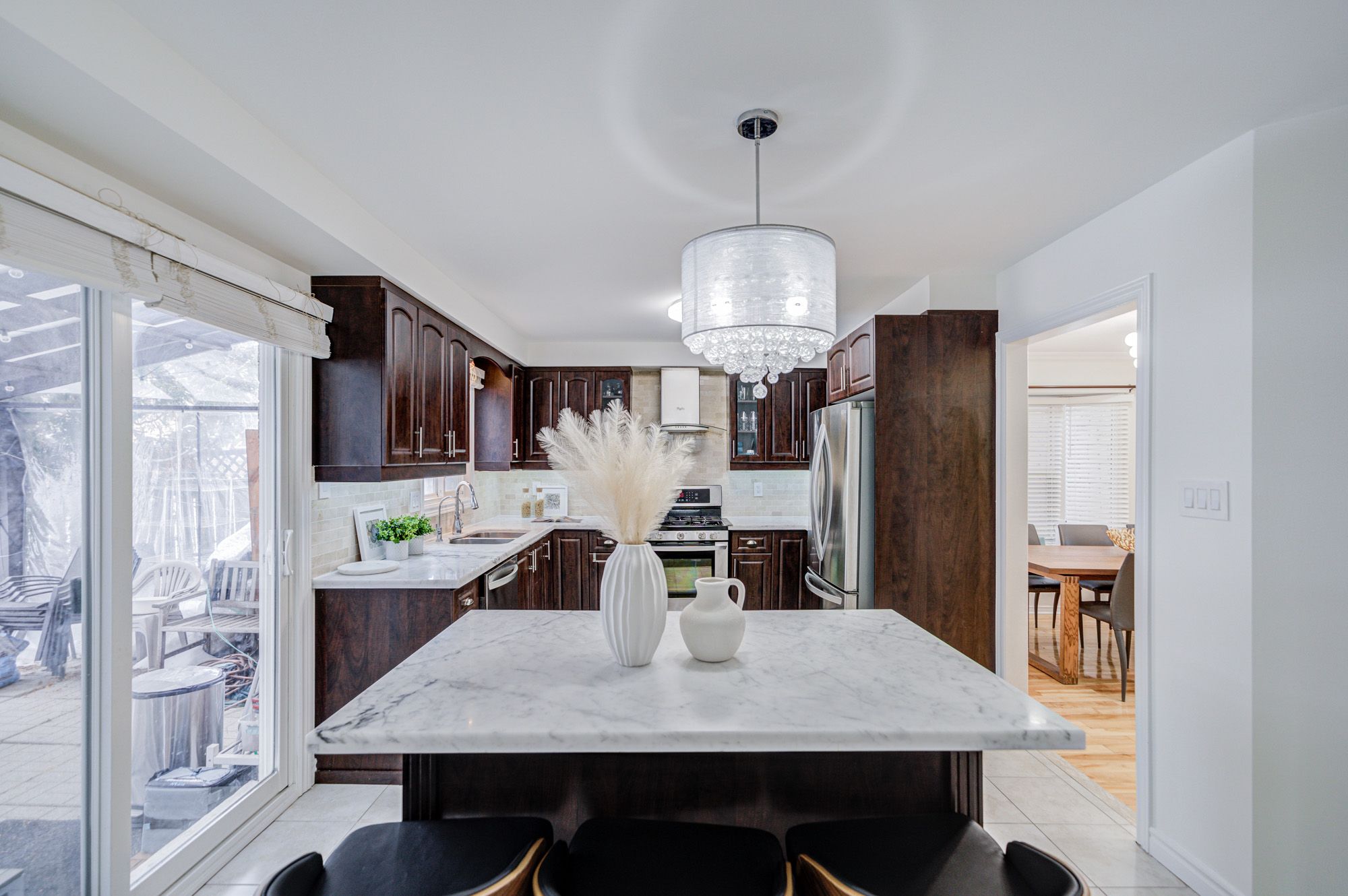 Welcome to this beautifully maintained 4-bedroom, 3-bath detached home nestled in a family-friendly neighbourhood! Featuring a bright and spacious layout *this home showcases hardwood flooring on the main level, pot lights and an elegant formal living and dining area perfect for entertaining *the kitchen offers centre island with breakfast bar, stainless steel appliances and a walkout to a covered backyard patio-ideal for outdoor gatherings *enjoy the convenience of main floor laundry and a double car garage *the private backyard retreat is perfect for relaxing or hosting *located just steps to great schools, ttc, parks and everyday amenities, *this home combines comfort, style and exceptional convenience for growing families!