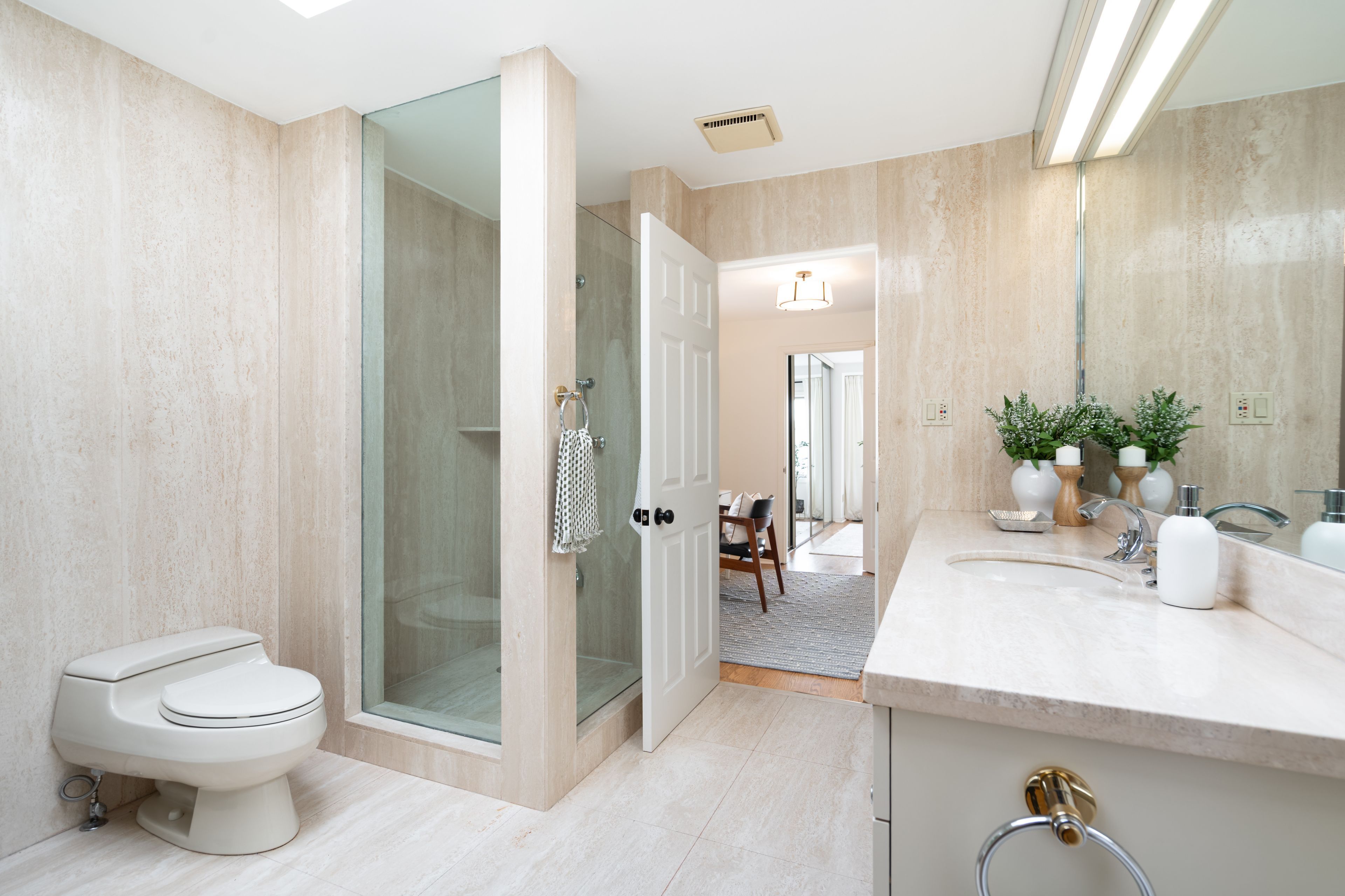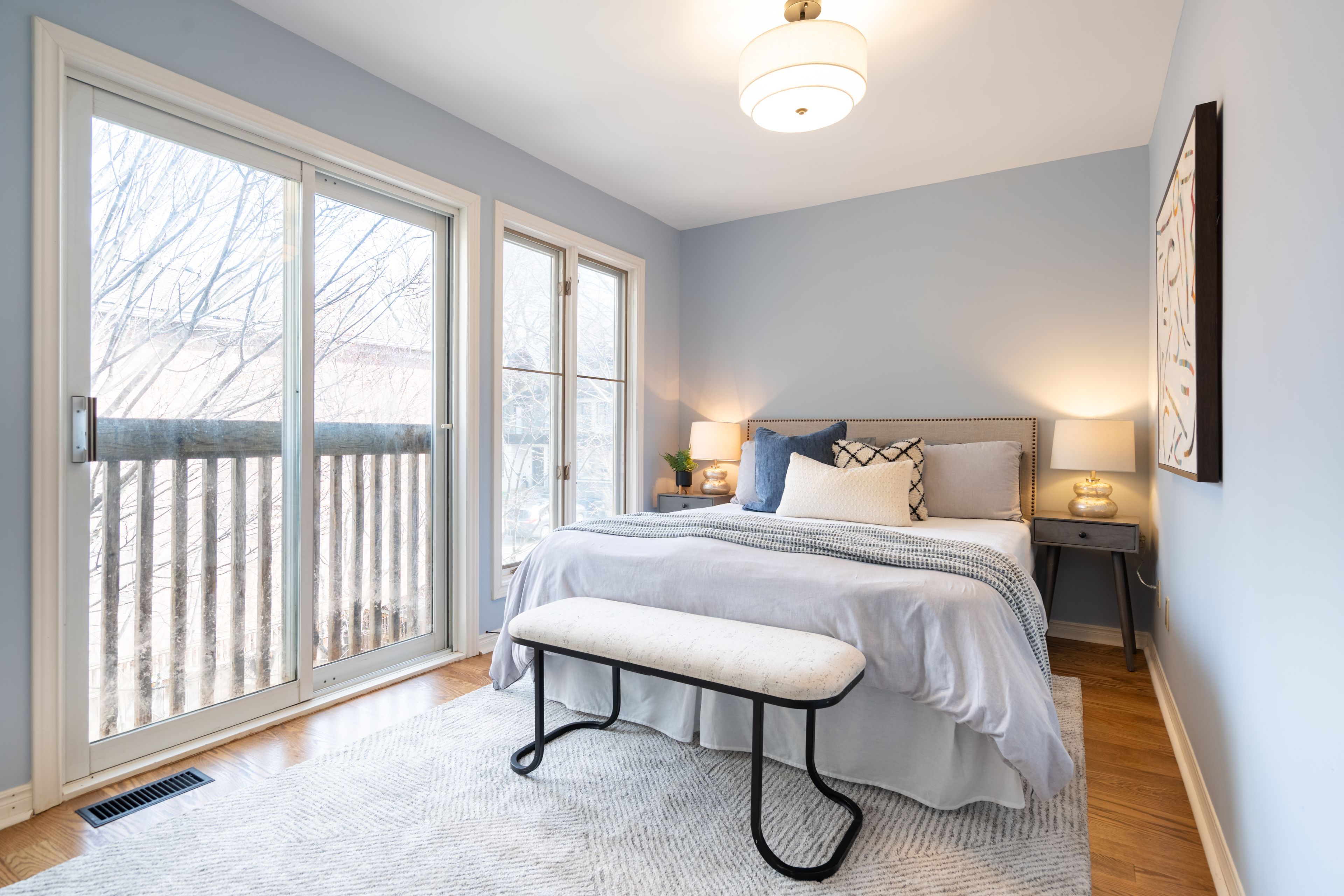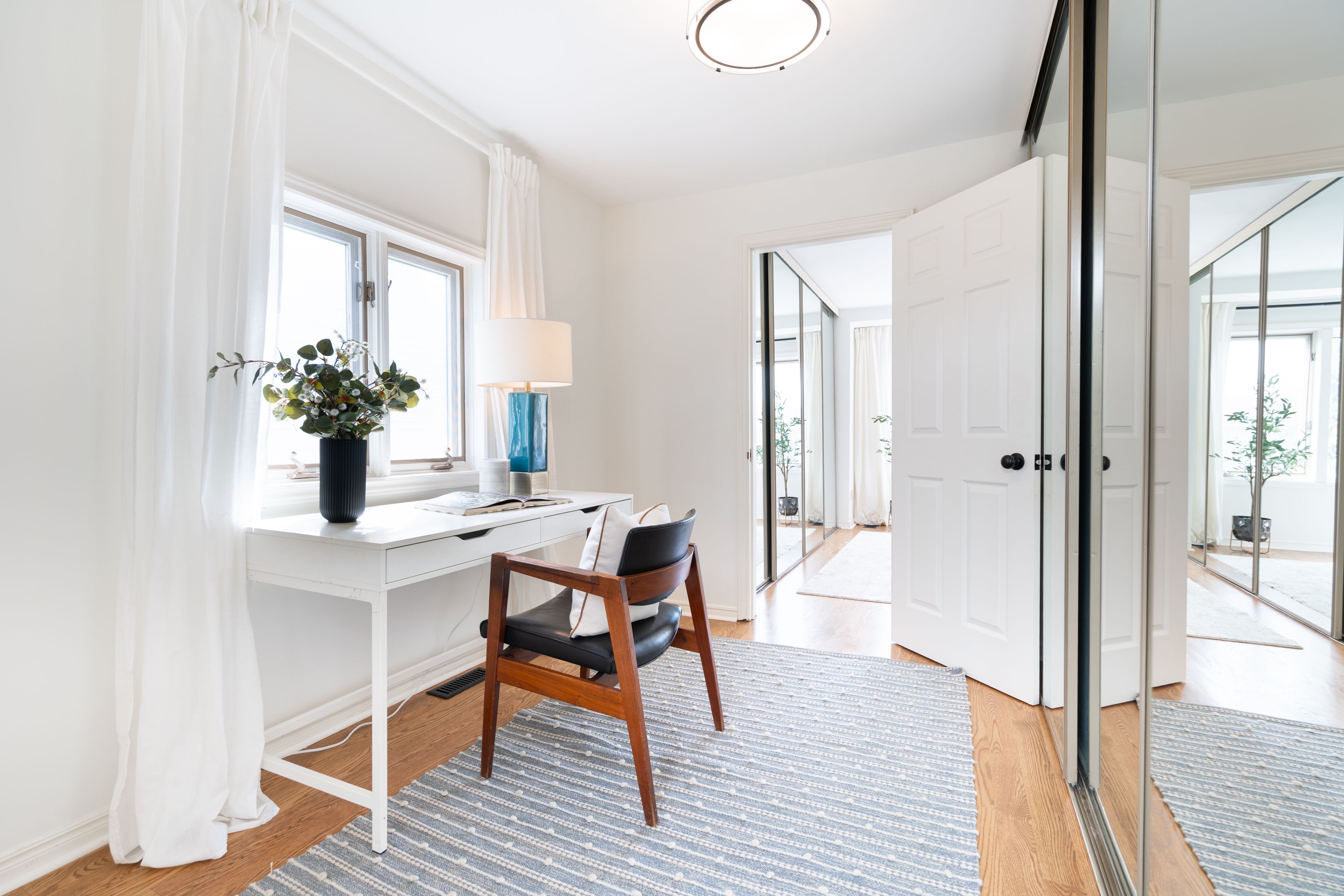 • Spacious primary bedroom with wall-to-wall closets and a private den.