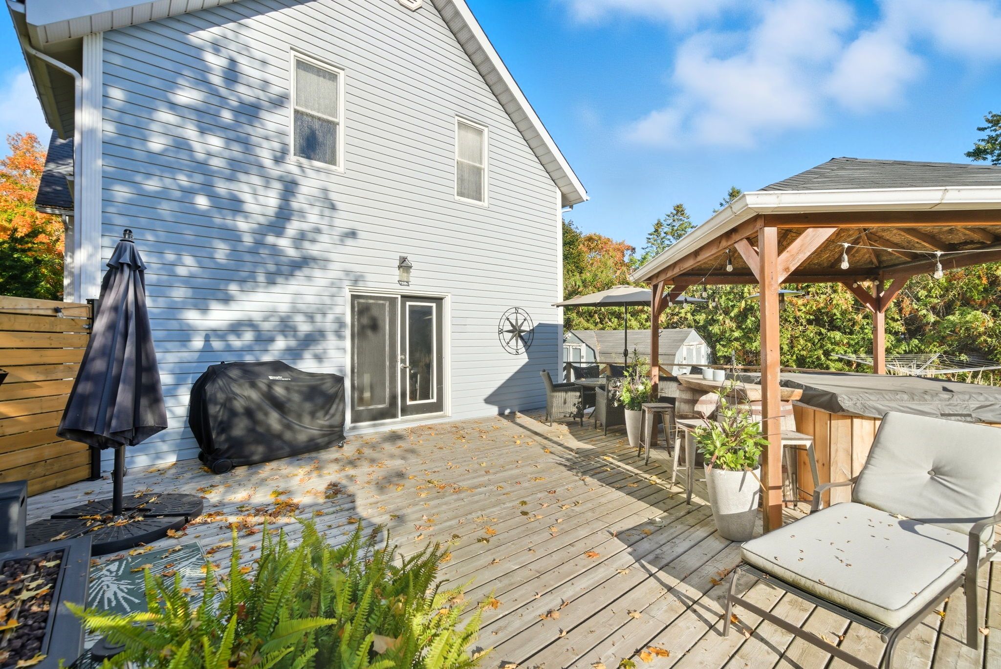 • Great room ideal for family gatherings with a gas fireplace and deck access.