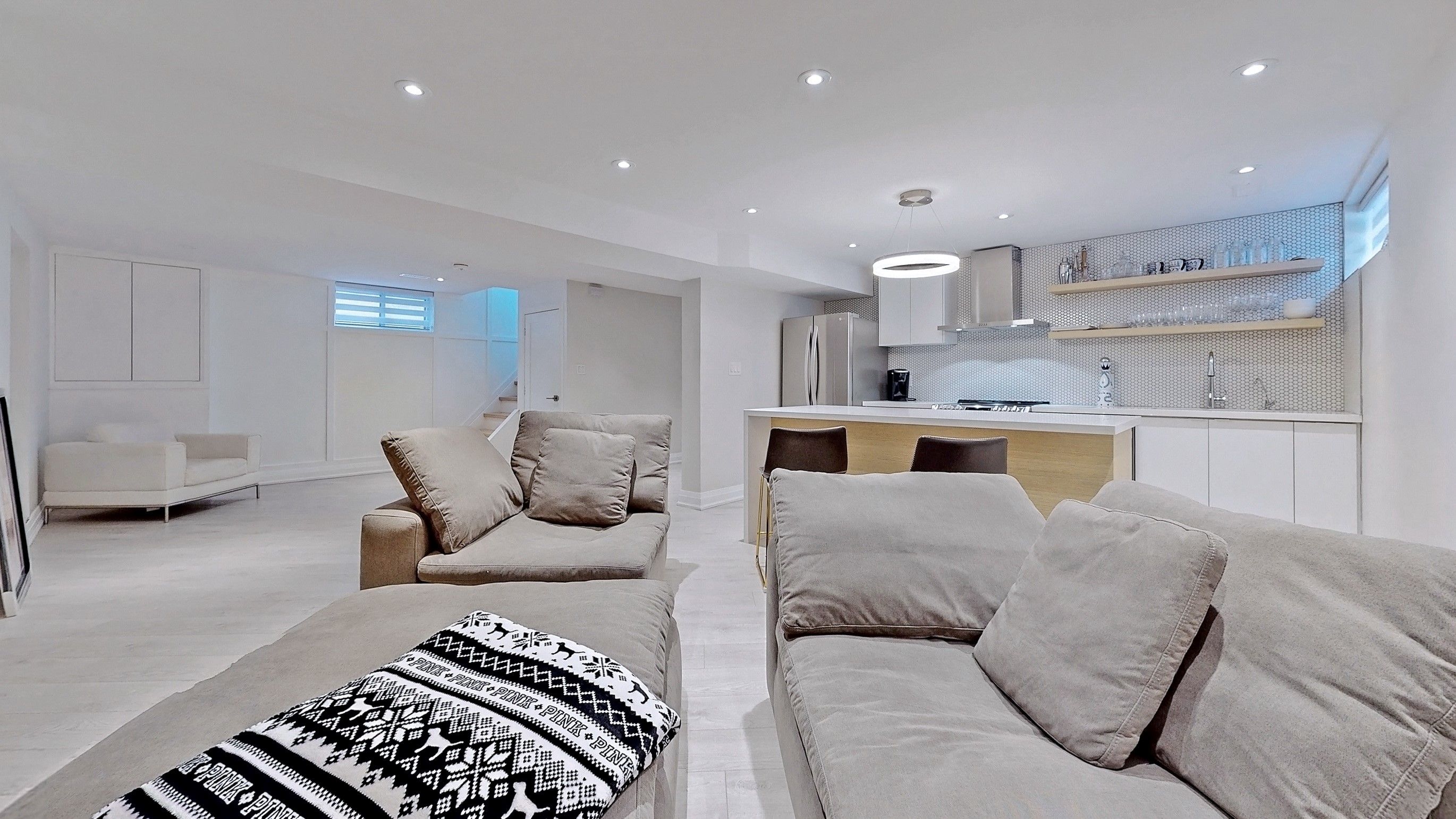 Discover this one-of-a-kind raised bungalow on an oversized lot in a prime toronto location. Thoughtfully updated, it features two sleek kitchens, a primary bedroom with a 2-piece ensuite, and a custom shared bathroom with a custom double vanity (vessel sinks with wall mounted faucets). Enjoy a 7-car driveway, 1-car garage (250sqft) and a fully finished basement for extended family or the savvy real estate investor. Spacious, stylish and loaded with possibilities.