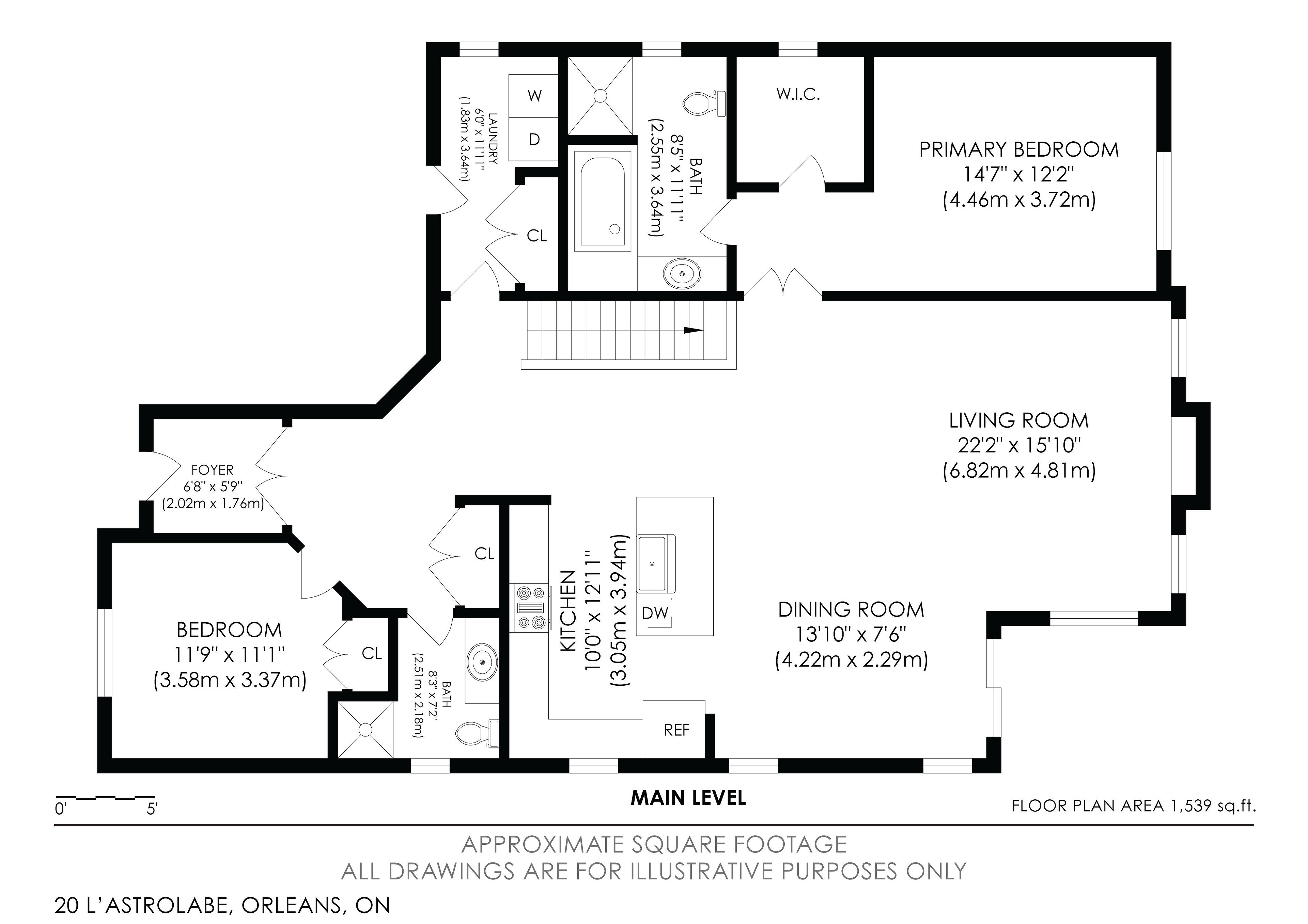 • Spacious primary bedroom with walk-in closet and private ensuite.