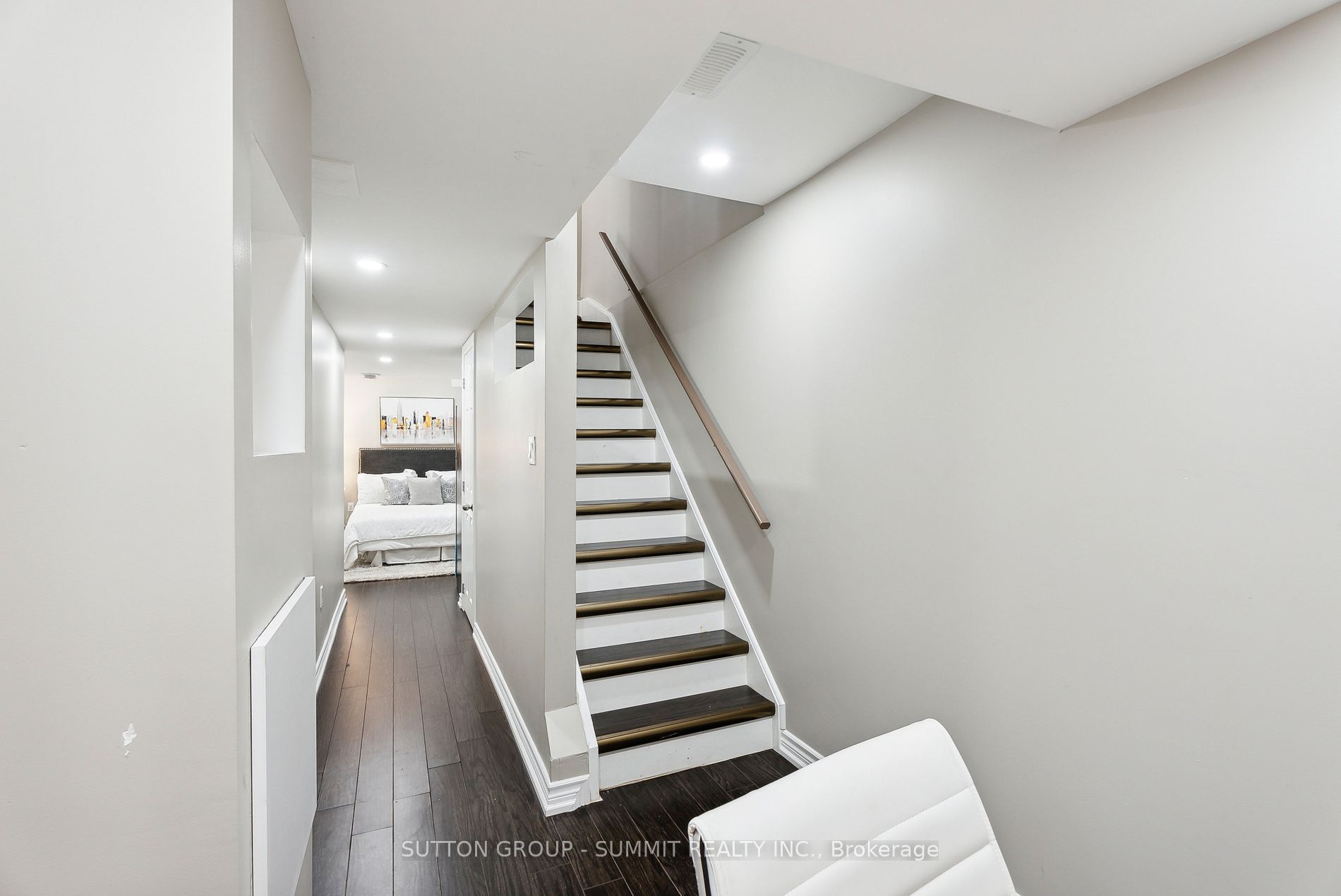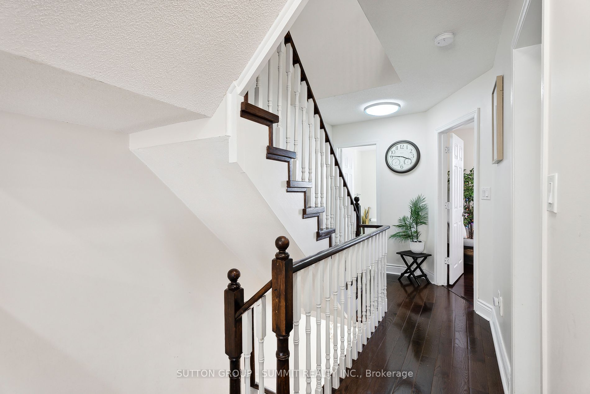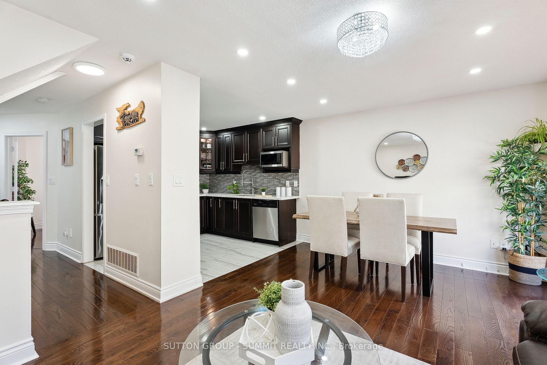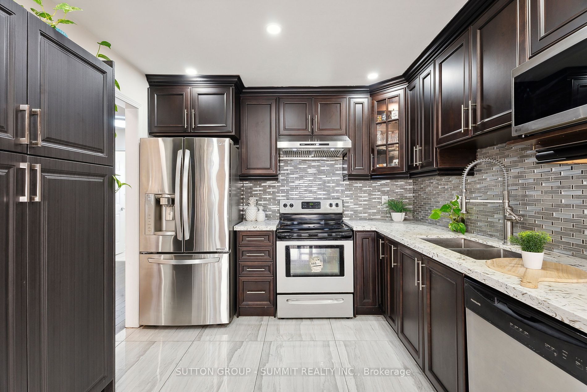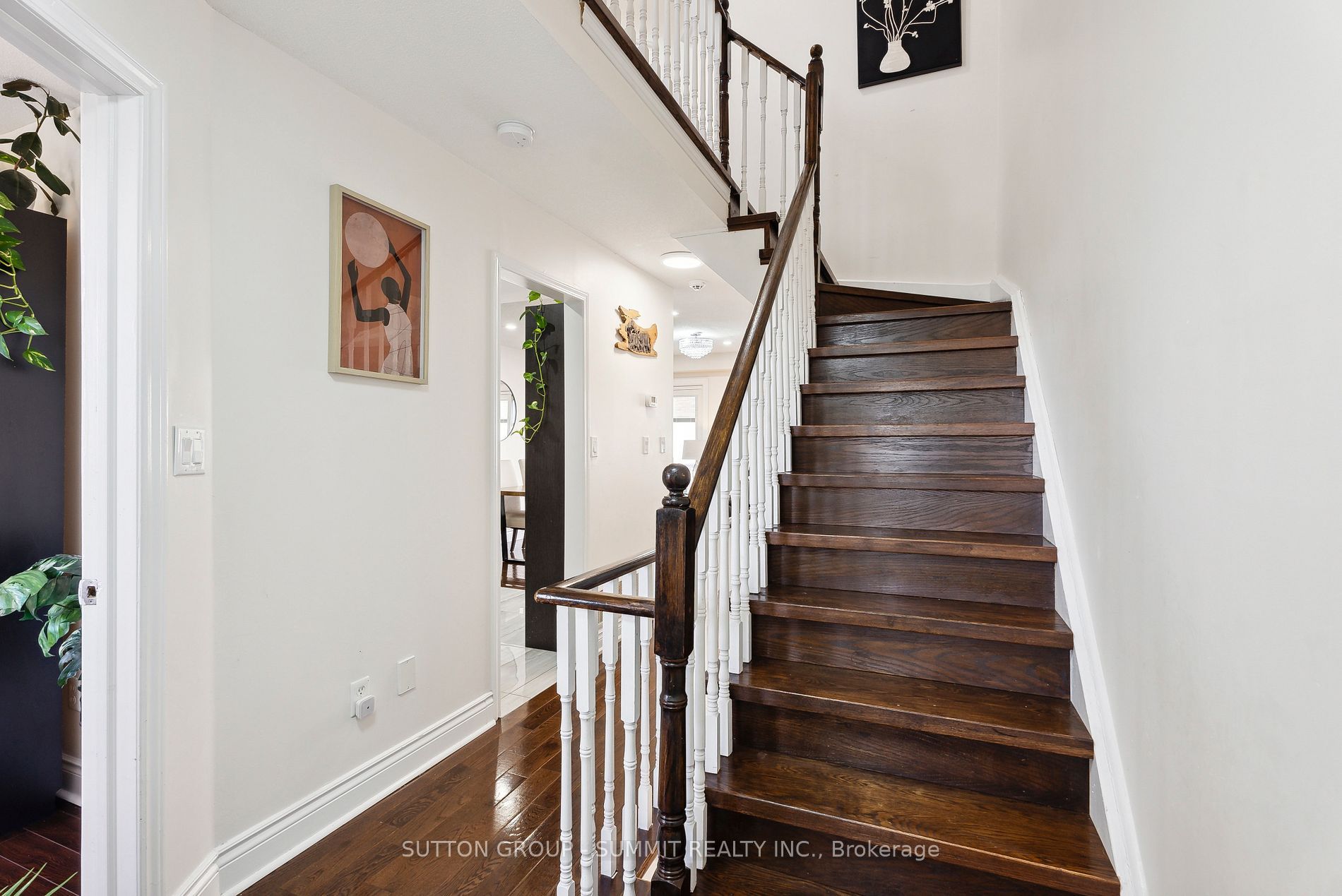 Welcome to this beautifully designed 4+1 bedroom, 4 bathroom townhouse in one of the most sought-after neighbourhoods. This home offers a perfect blend of comfort, convenience, and style and is ideal for families, professionals, or savvy investors. Key features:hardwood floors throughout. The finished basement has a full washroom and one ss fridge ready to be rented with a separate entrance from the garage. Large windows on all the floors with california shutters make the rooms bright and airy. The living and dining area has a way out to the balcony. Fully equipped with stainless steel appliances, sleek cabinetry, and a spacious kitchen. A cozy backyard on the main floor with a fully decked-up patio, perfect for bbq and gatherings. The main bedroom has a walk-in closet and ensuite bathroom. Other rooms are equipped with generous closets. Attached garage with an automated garage door and a designated parking spot where two cars can fit in back to back. Updates: roofing done last summer, central humidifier, upgraded bathrooms, energy-efficient fixtures and pot lights, new dryer, automated garage door. Location highlights:central convenience: it is within walking distance to parks and playgrounds, schools, hospitals, a community center, groceries, shopping centers, a gym, good daycares, and dining options. Excellent transport links: public transport is at the doorstep, and there is easy access to go train and bus and major highways within 2 min drive. Vibrant community: friendly and quiet neighbourhood. This townhouse offers a place to live and a lifestyle of ease and comfort. Don't miss this rare opportunitybook your private tour today!