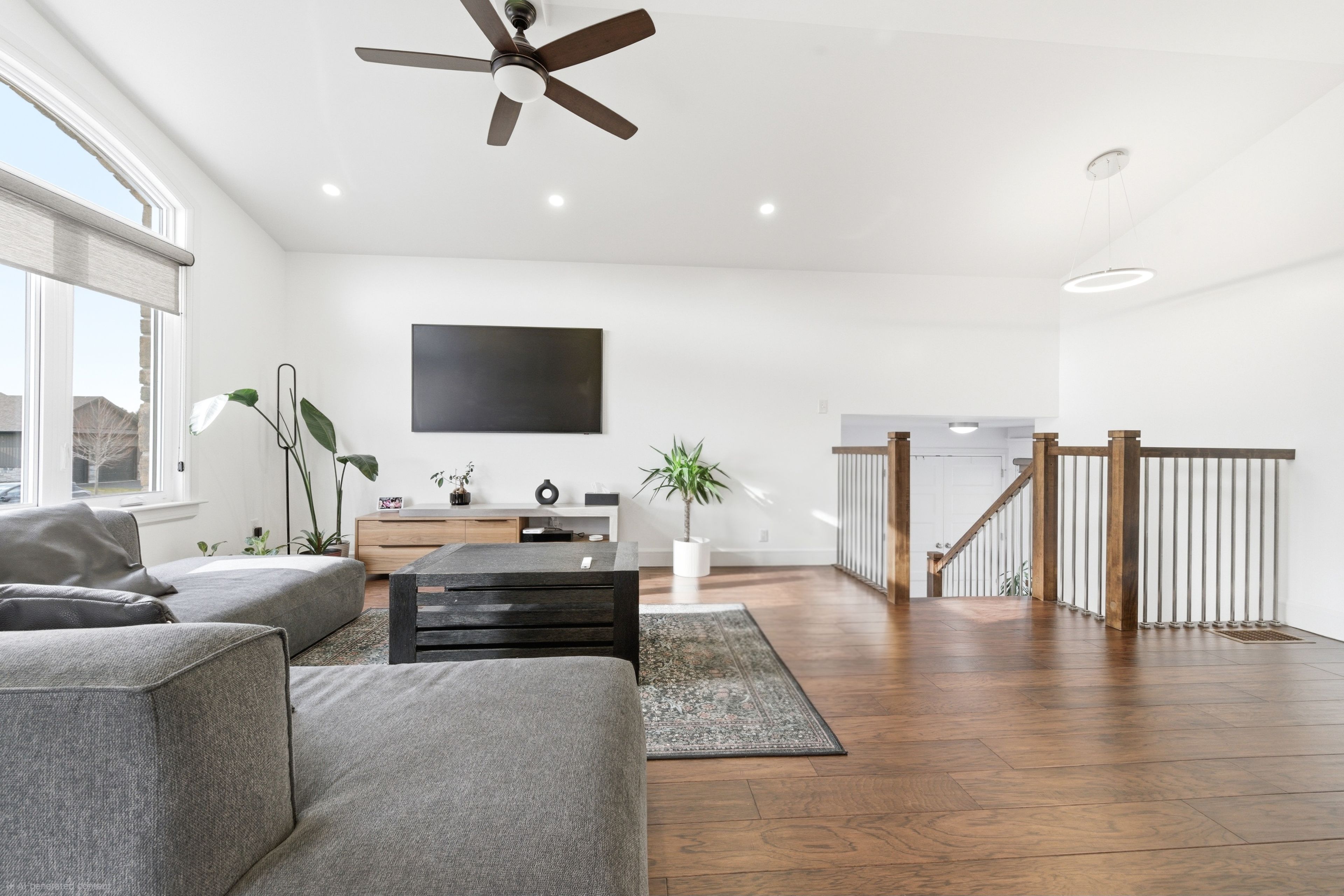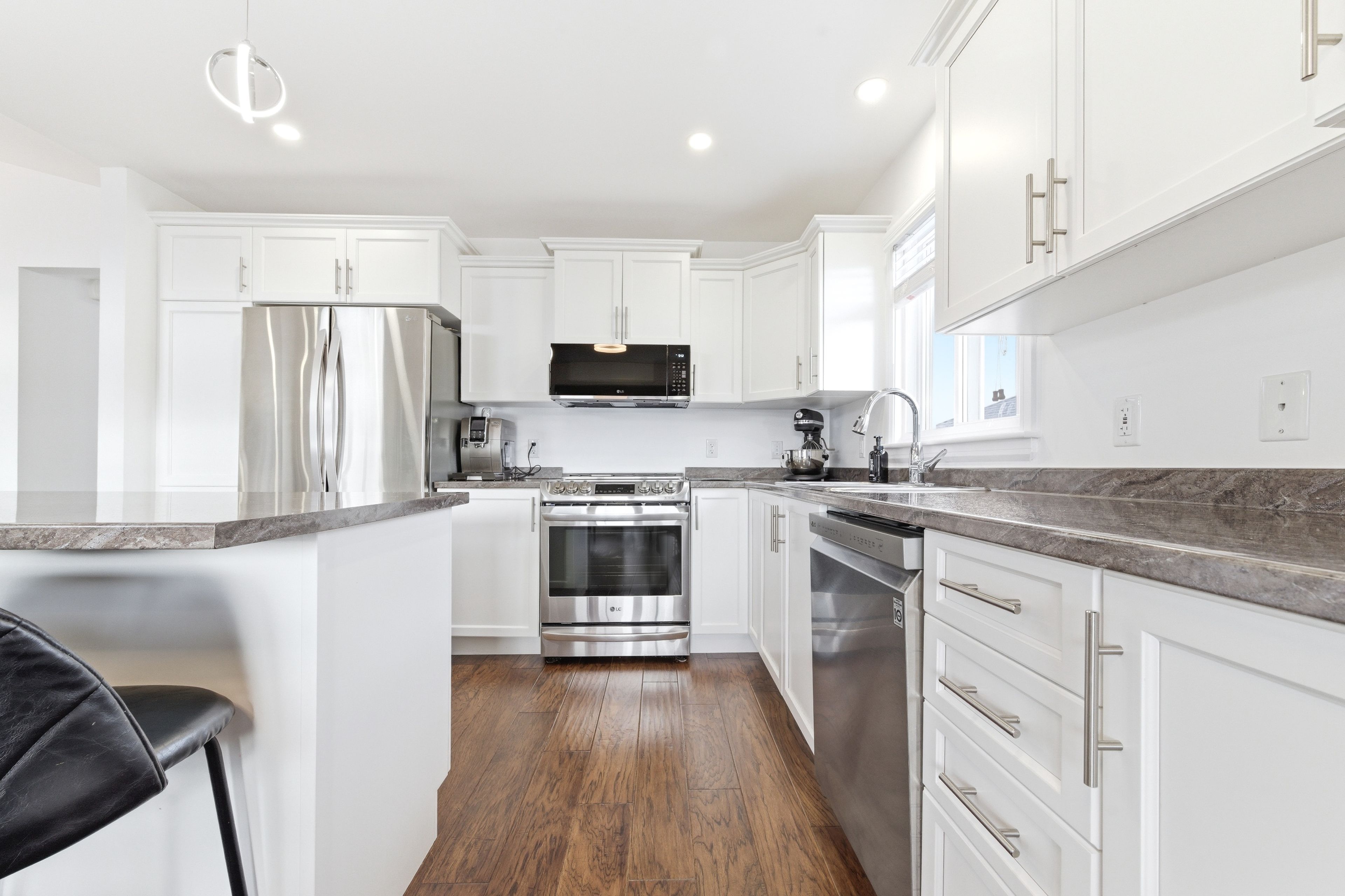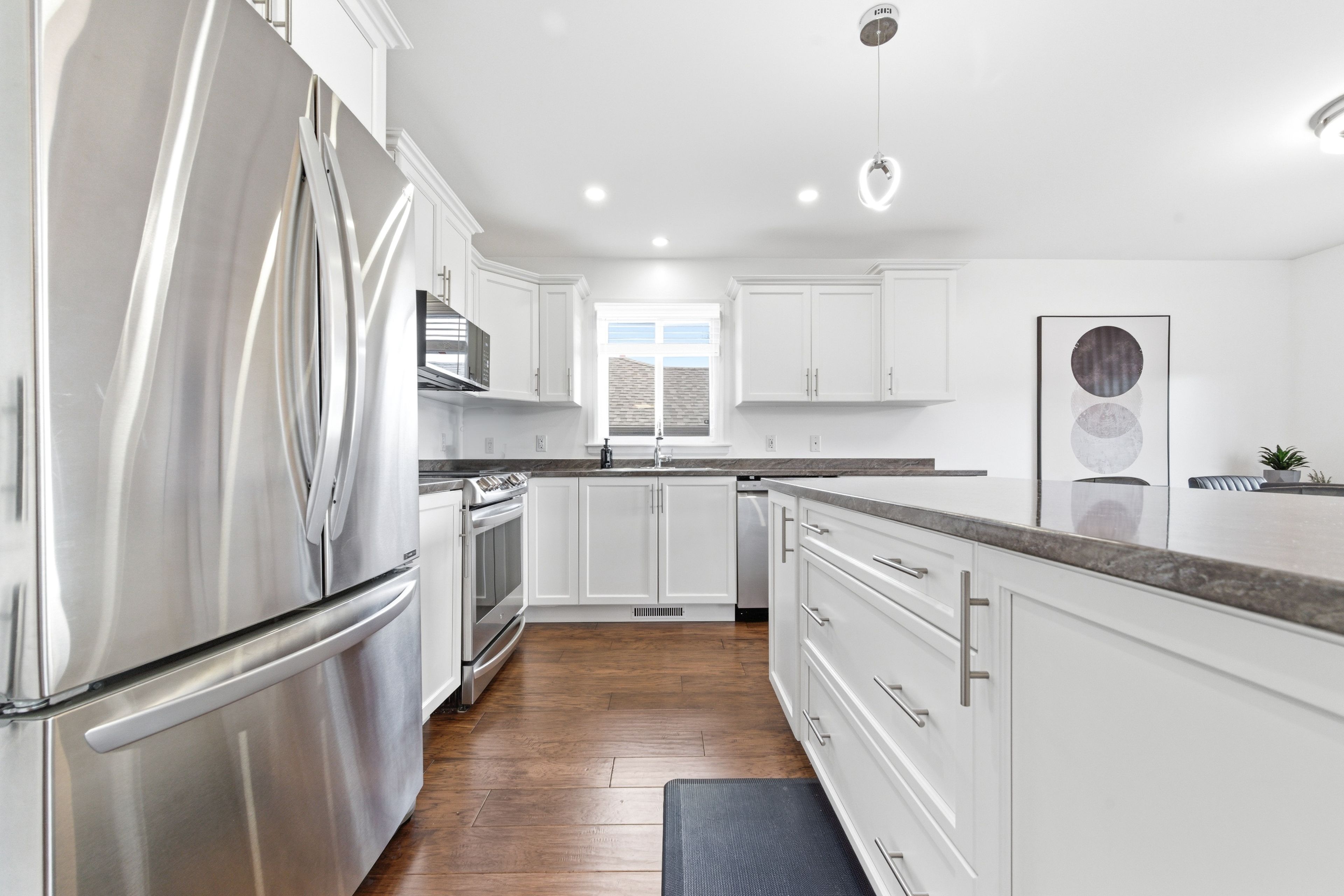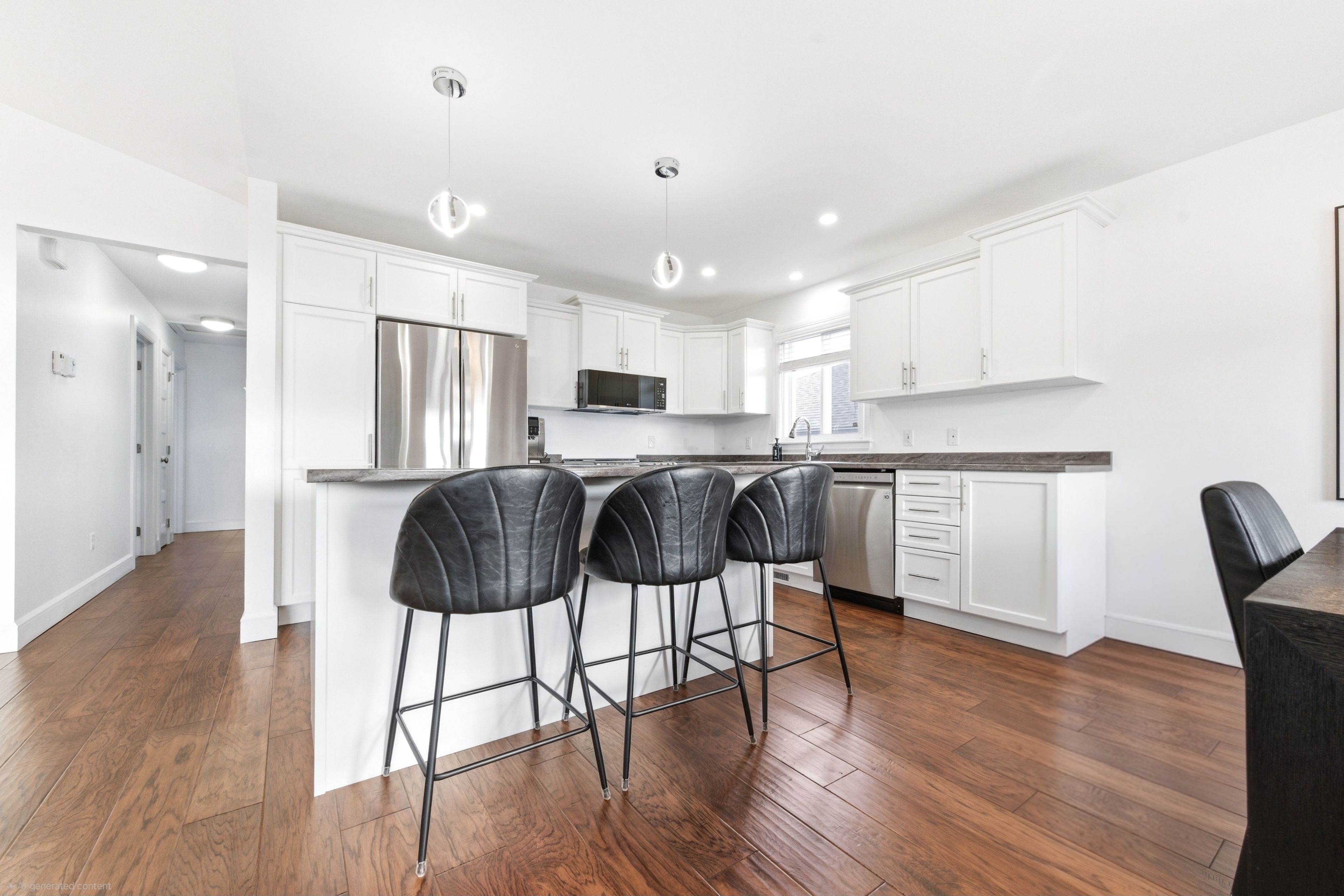 • Bright, open-concept main living area with modern kitchen and island.
