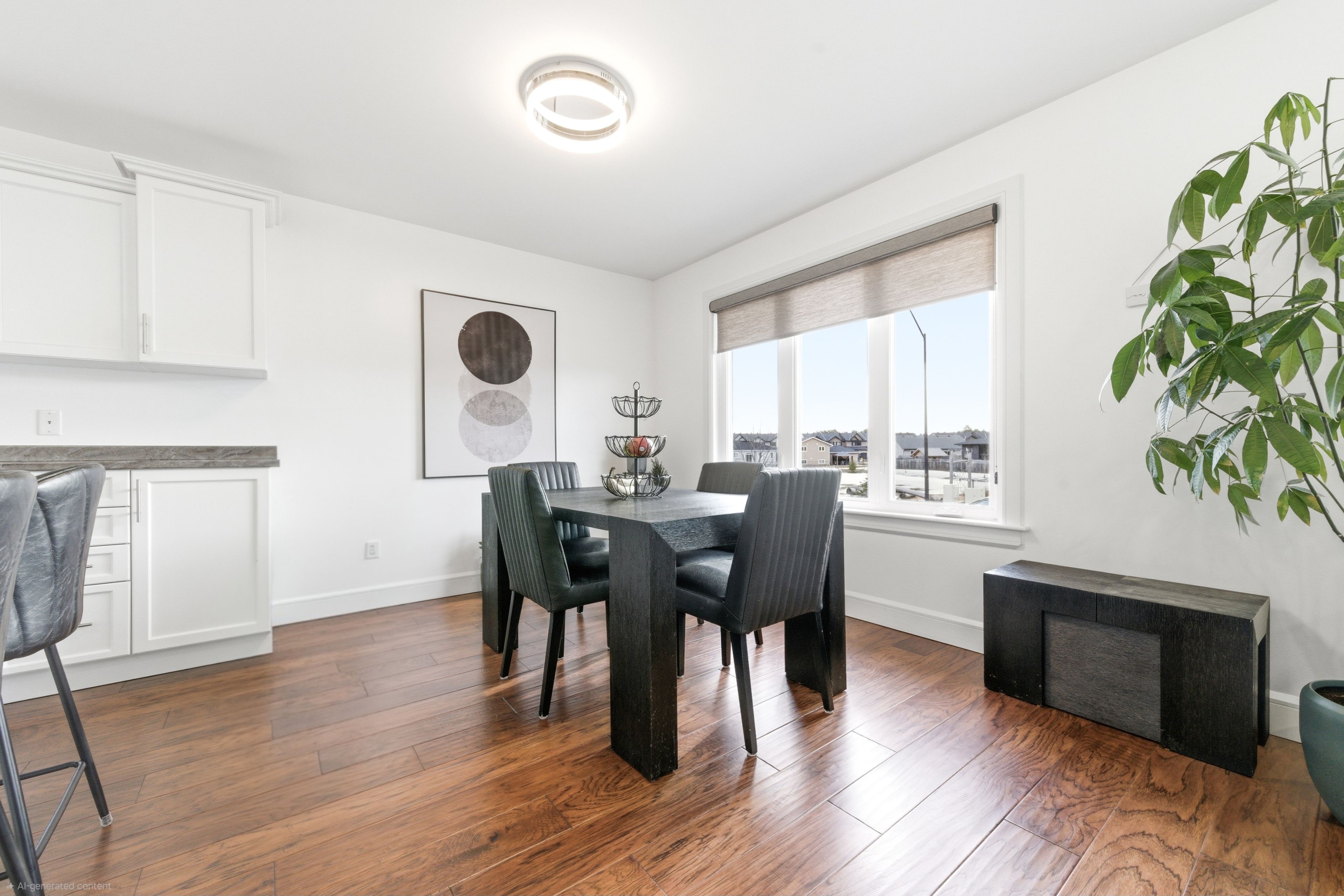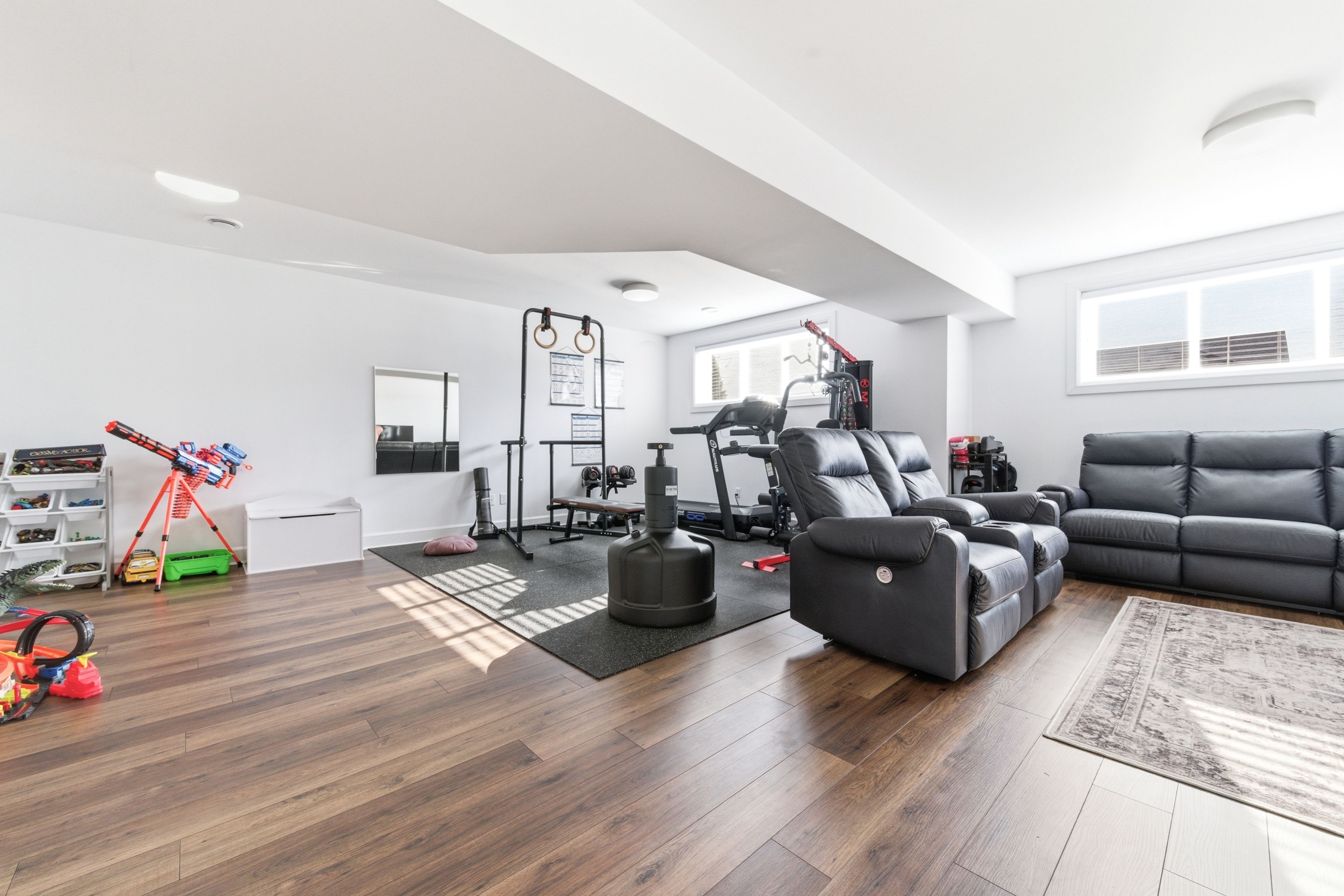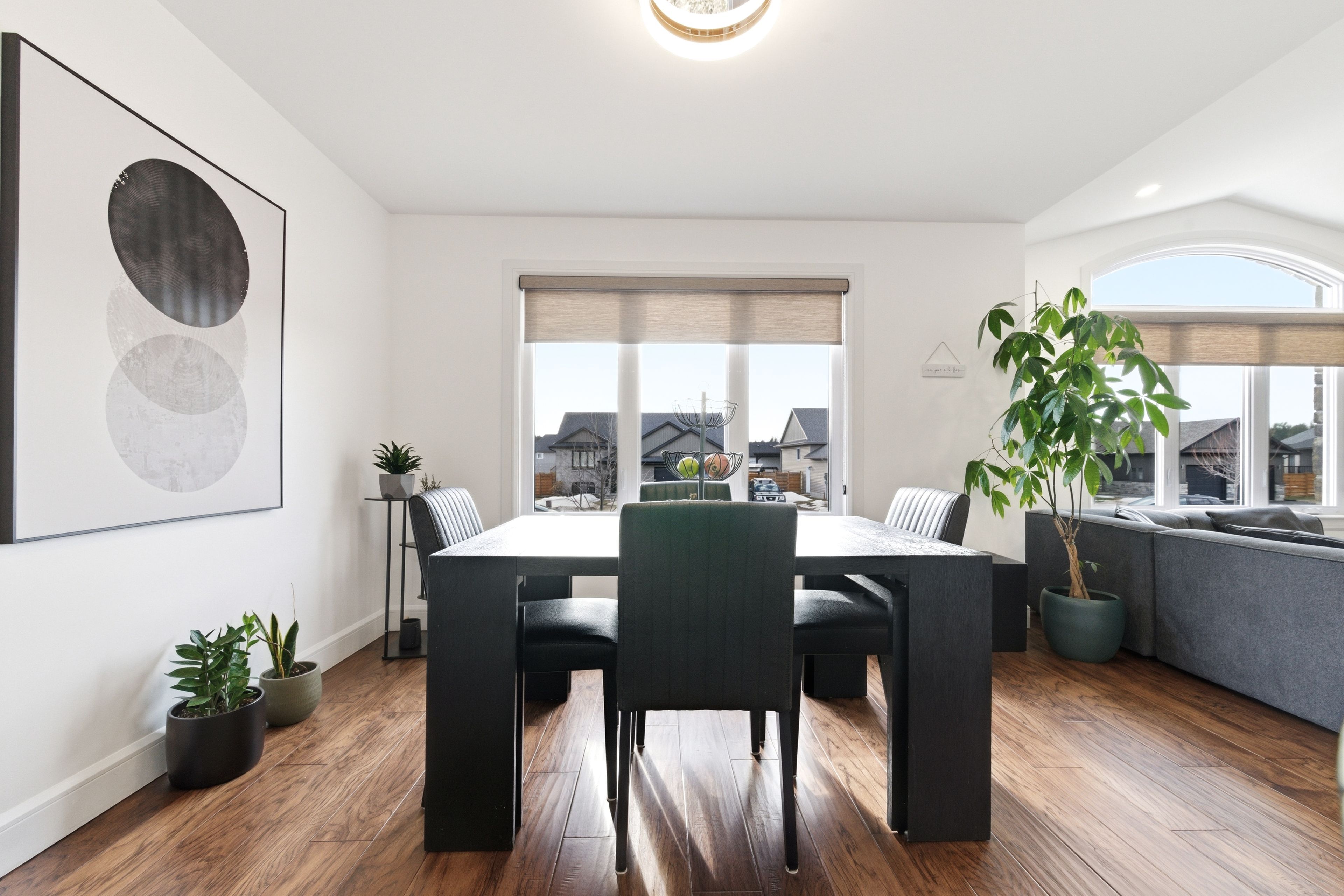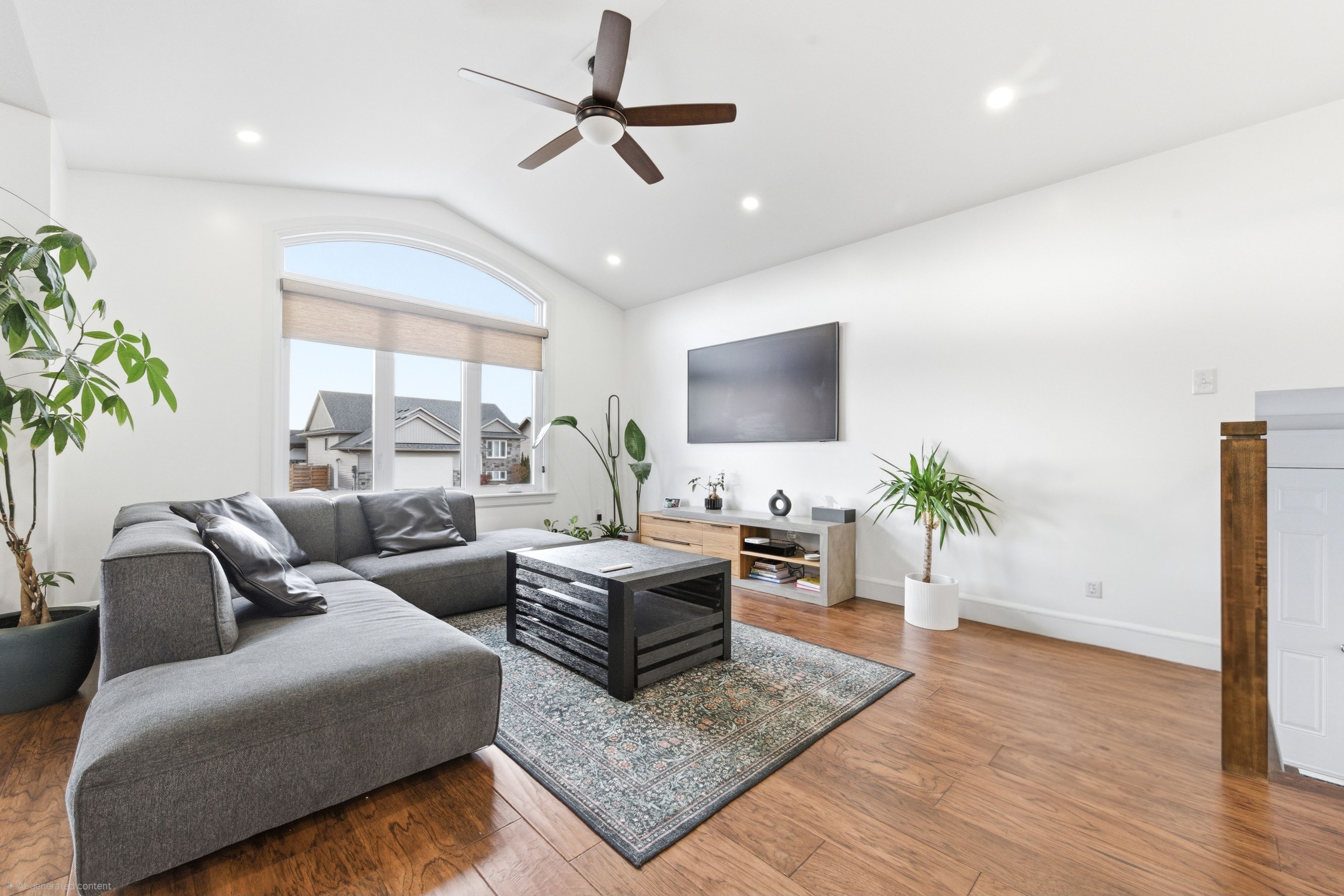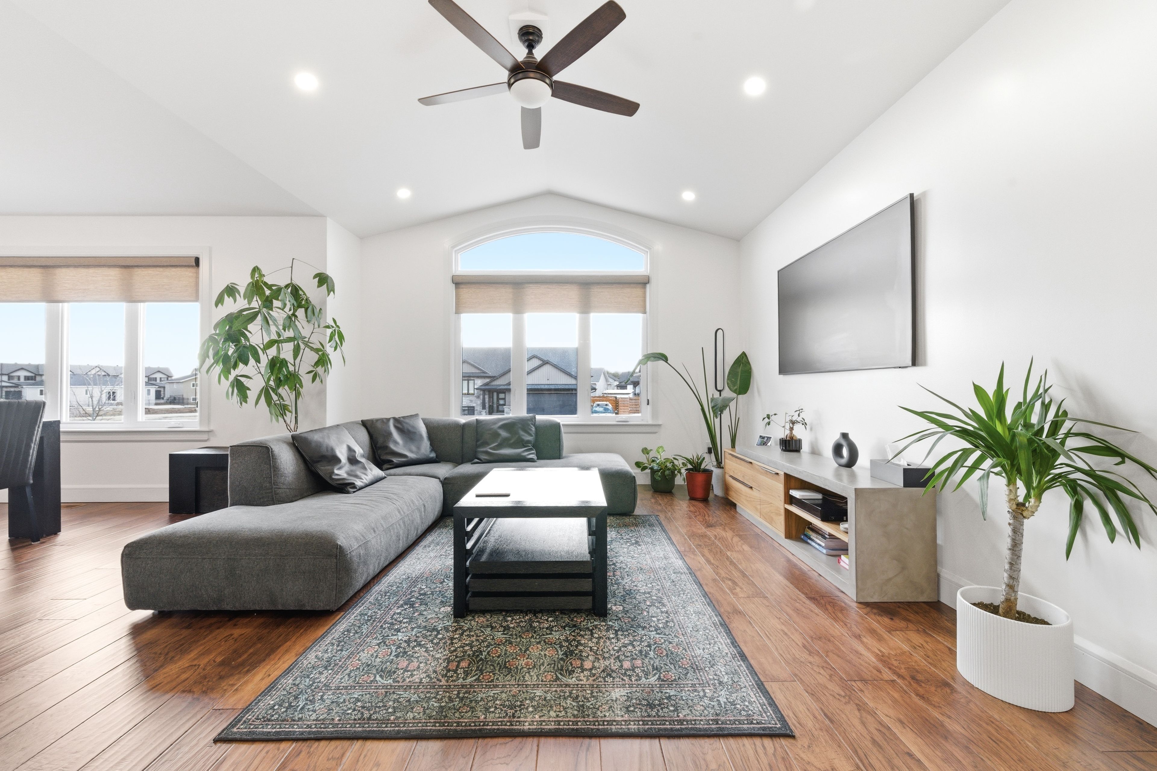 • Bright, open-concept main living area with modern kitchen and island.