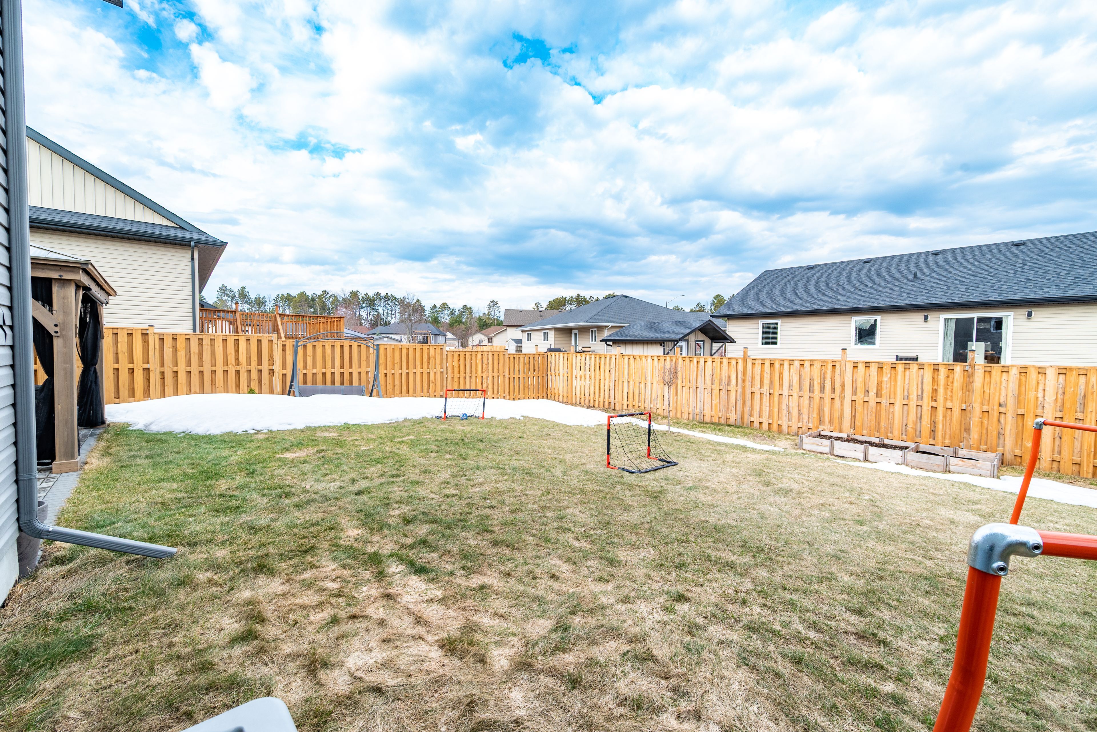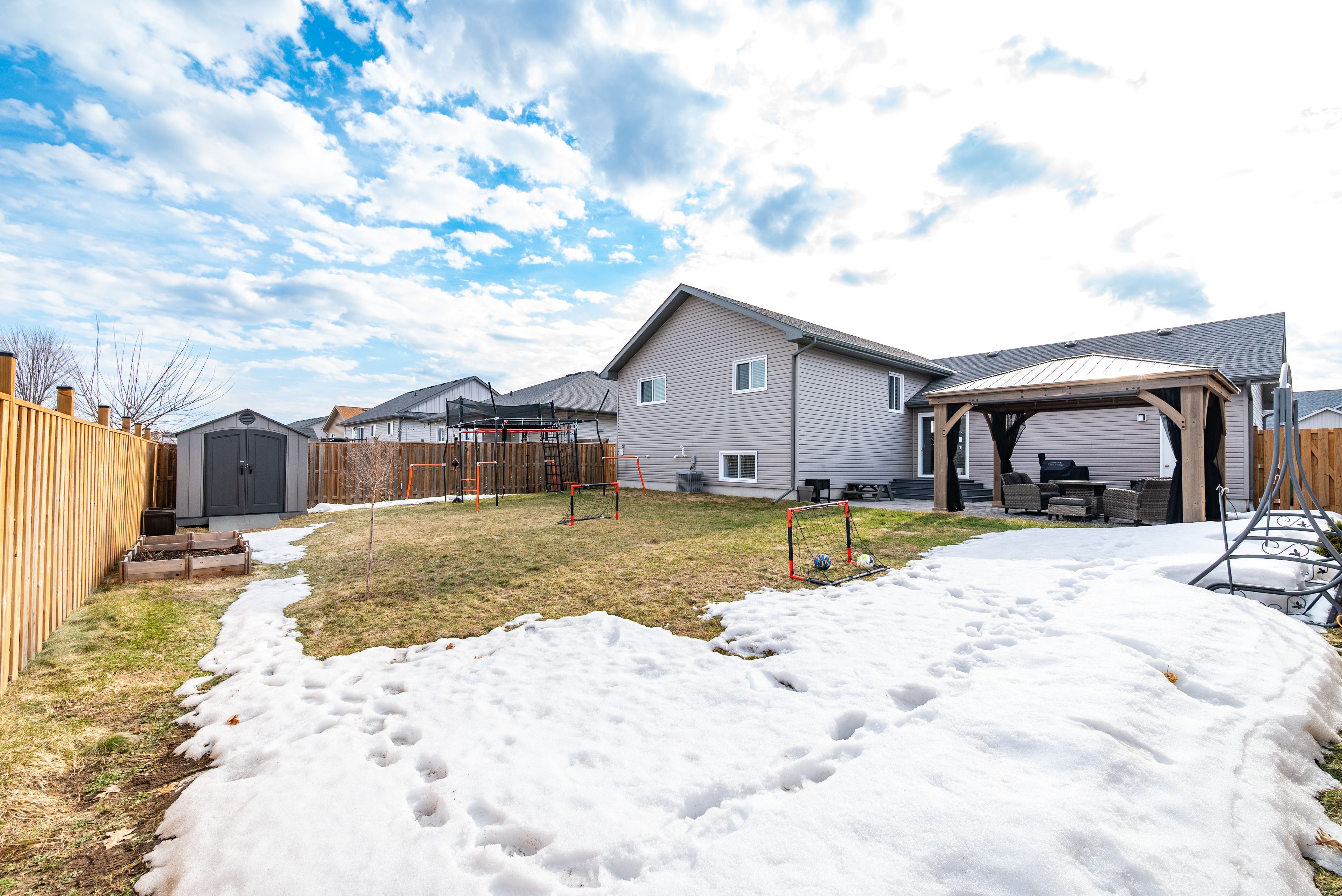 • Backyard with patio, gazebo, and nearby park for family enjoyment.
