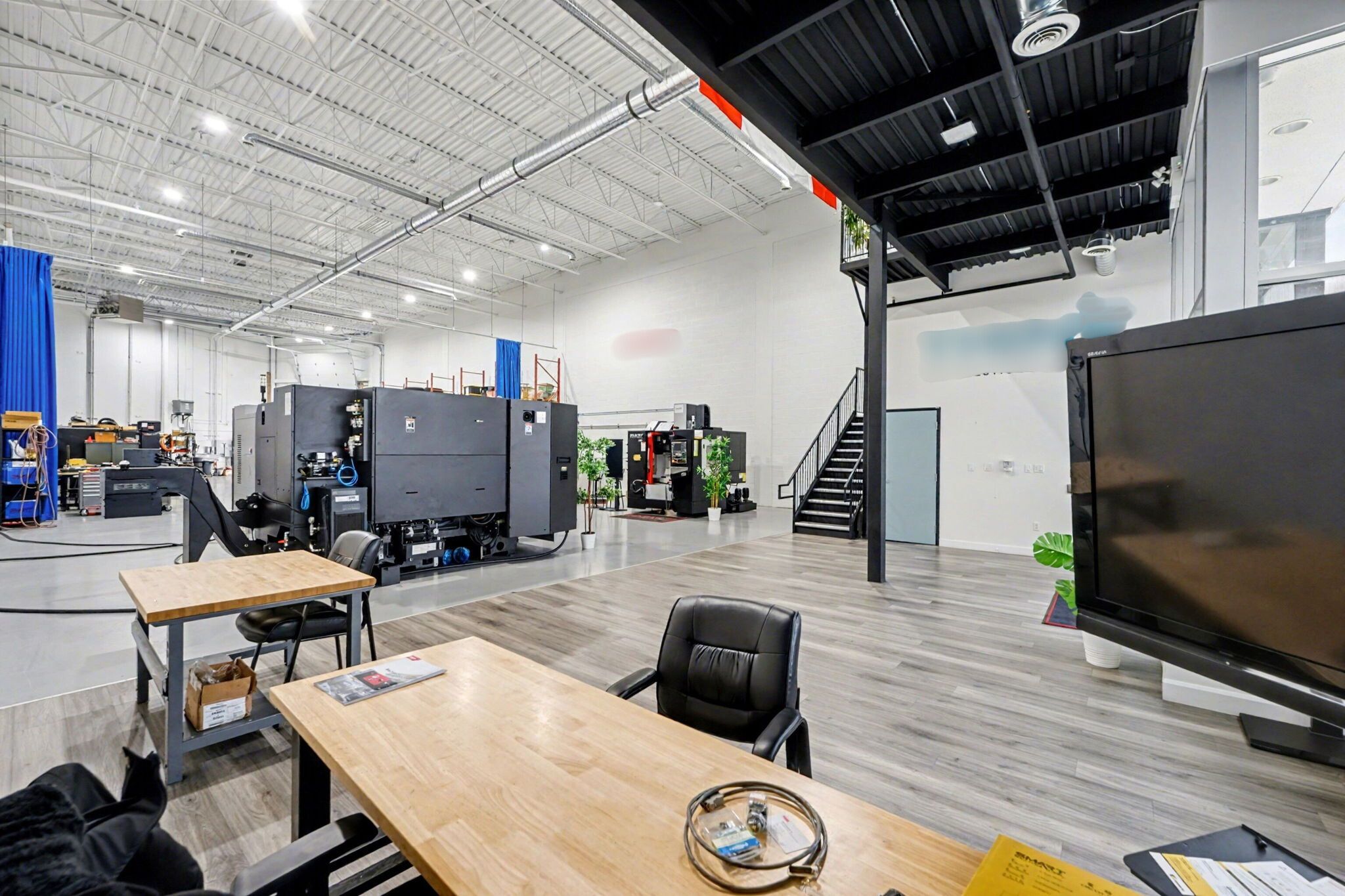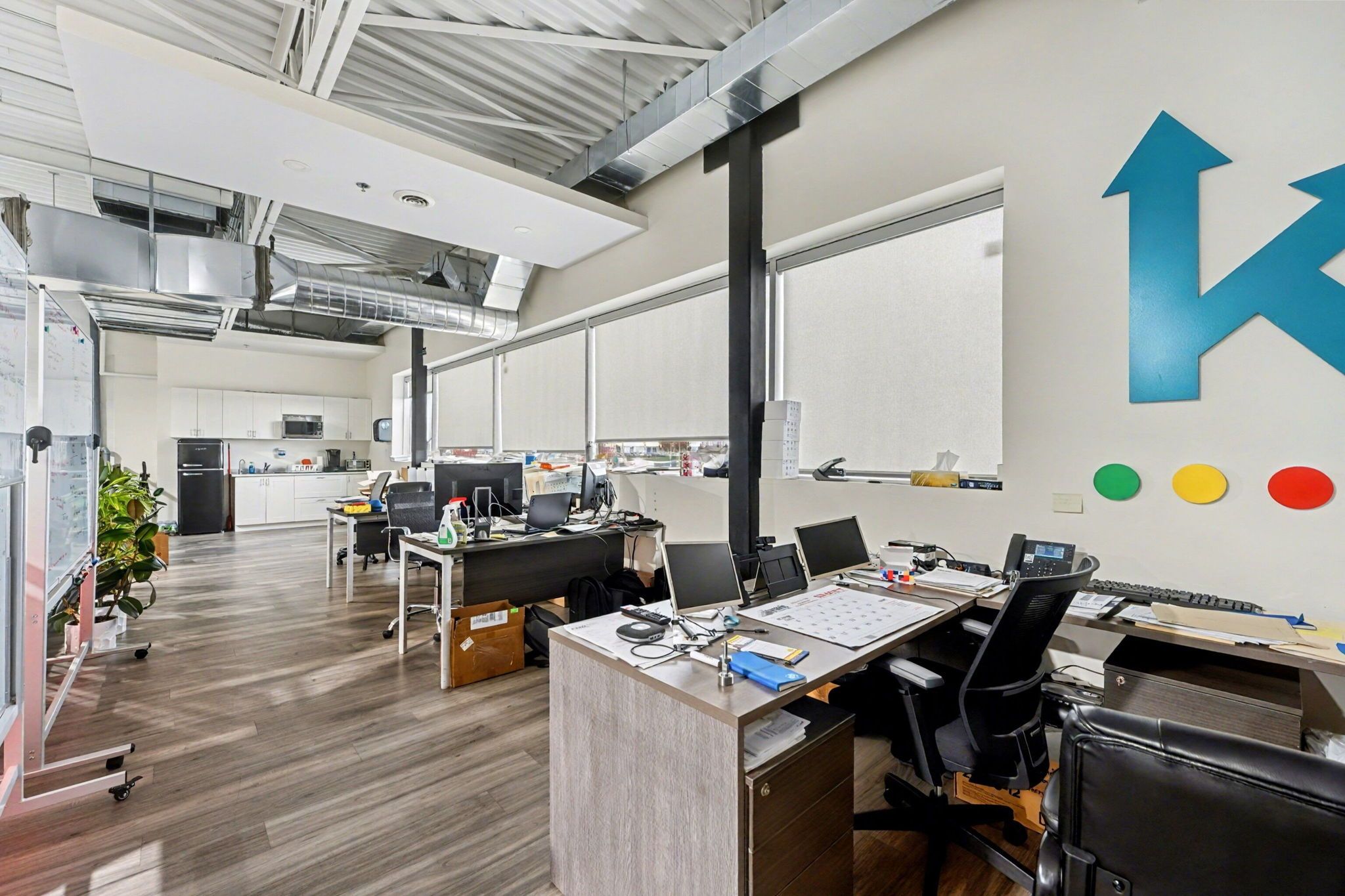 • Second-floor mezzanine includes office, kitchen, and additional workspaces.