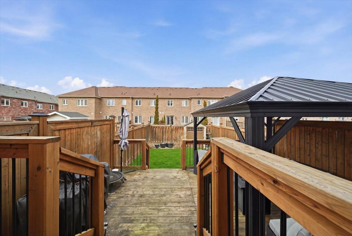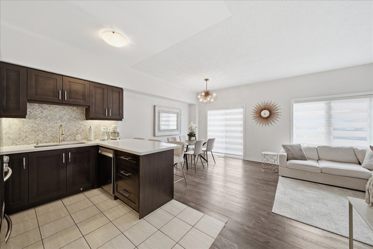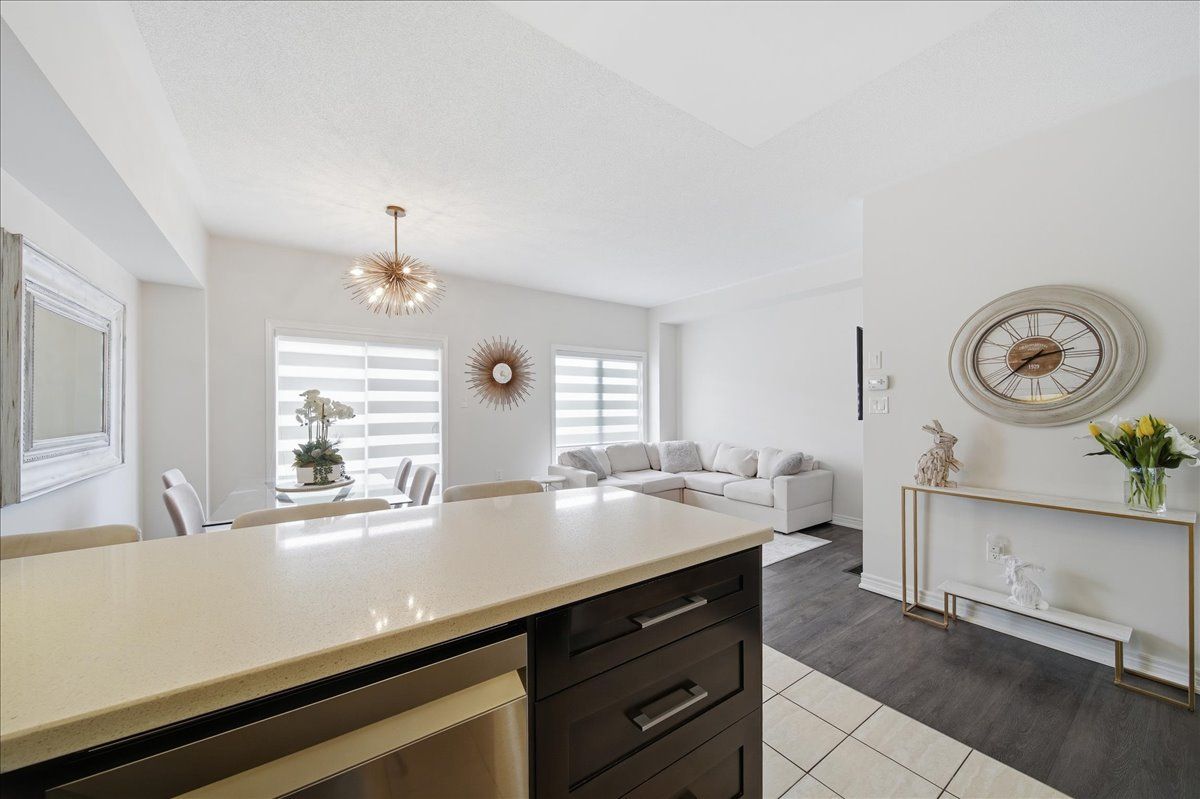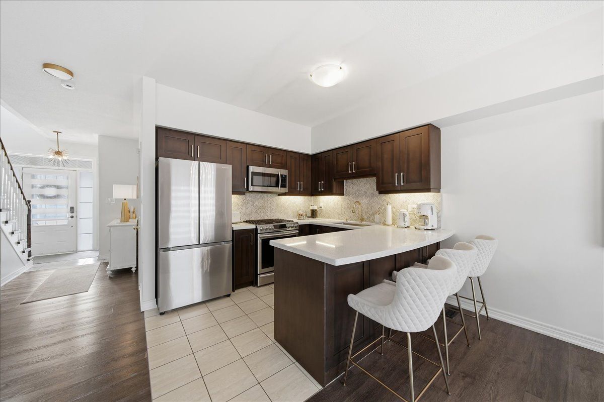 Beautifully upgraded and full of style, this stunning 3-bedroom freehold townhouse in the highly desirable bradford community offers modern finishes, thoughtful upgrades, and incredible indoor-outdoor living. Featuring a bright open-concept main floor with 9' ceilings, the home showcases high-end vinyl flooring throughout the main and second levels and has been professionally decorated, creating a warm yet contemporary feel throughout. The modern kitchen is a showstopper, complete with sleek quartz countertops, elegant cabinetry, and under-mount lighting, seamlessly flowing into the living and dining areas with a walkout to a breathtaking custom two-tier patio, deal for entertaining or relaxing outdoors. Upstairs, you'll find three generously sized bedrooms, while the professionally finished basement (2021) offers additional living space with pot lights and a stylish 3-piece bathroom, perfect for a recreation area, guest suite, or home office. Enjoy the convenience of direct garage access, an extended interlock parking pad, and exceptional curb appeal with beautifully landscaped grounds. A true pride of ownership, this home is move-in ready and not to be missed!
