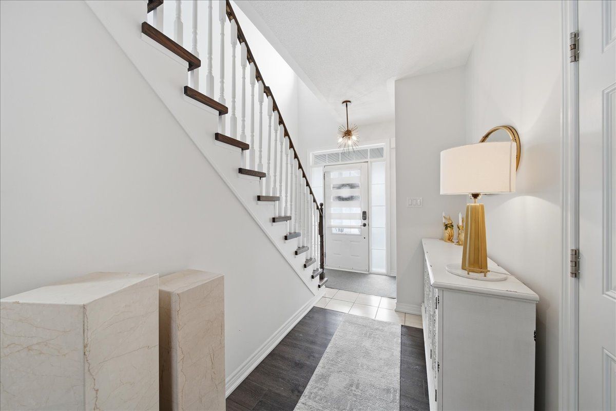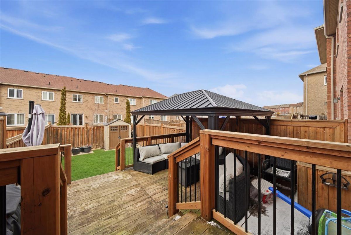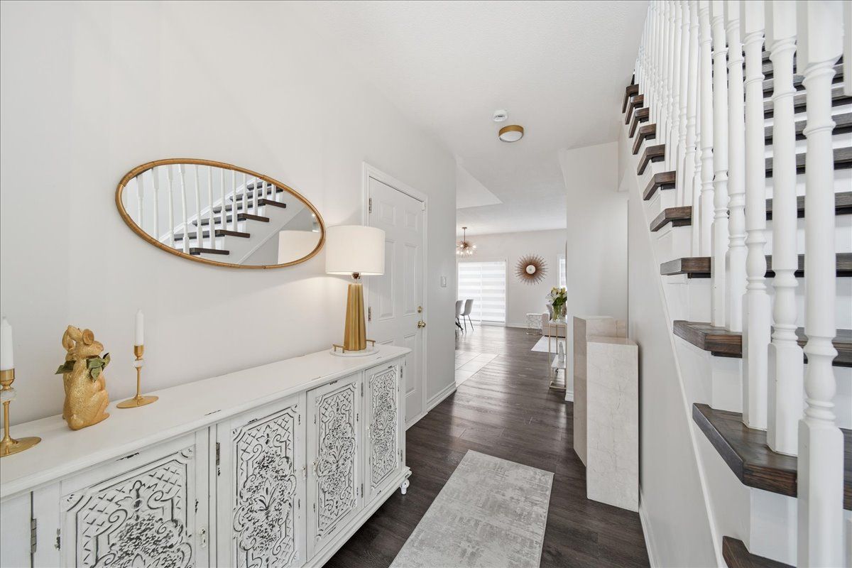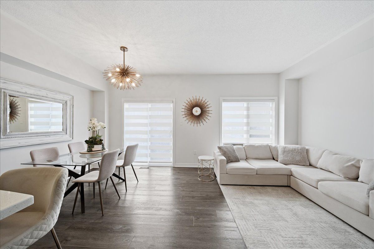 Beautifully upgraded and full of style, this stunning 3-bedroom freehold townhouse in the highly desirable bradford community offers modern finishes, thoughtful upgrades, and incredible indoor-outdoor living. Featuring a bright open-concept main floor with 9' ceilings, the home showcases high-end vinyl flooring throughout the main and second levels and has been professionally decorated, creating a warm yet contemporary feel throughout. The modern kitchen is a showstopper, complete with sleek quartz countertops, elegant cabinetry, and under-mount lighting, seamlessly flowing into the living and dining areas with a walkout to a breathtaking custom two-tier patio, deal for entertaining or relaxing outdoors. Upstairs, you'll find three generously sized bedrooms, while the professionally finished basement (2021) offers additional living space with pot lights and a stylish 3-piece bathroom, perfect for a recreation area, guest suite, or home office. Enjoy the convenience of direct garage access, an extended interlock parking pad, and exceptional curb appeal with beautifully landscaped grounds. A true pride of ownership, this home is move-in ready and not to be missed!