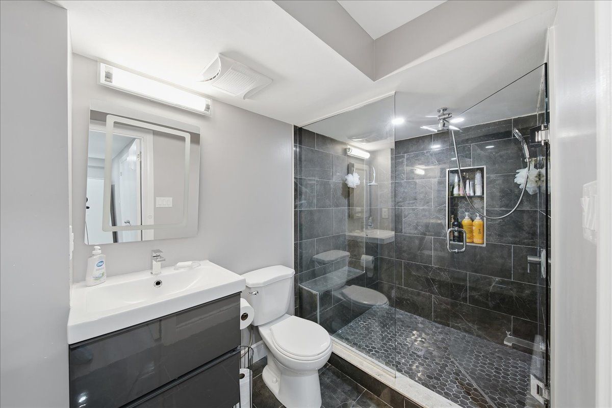 • Finished basement with pot lights and a stylish bathroom for extra living space.