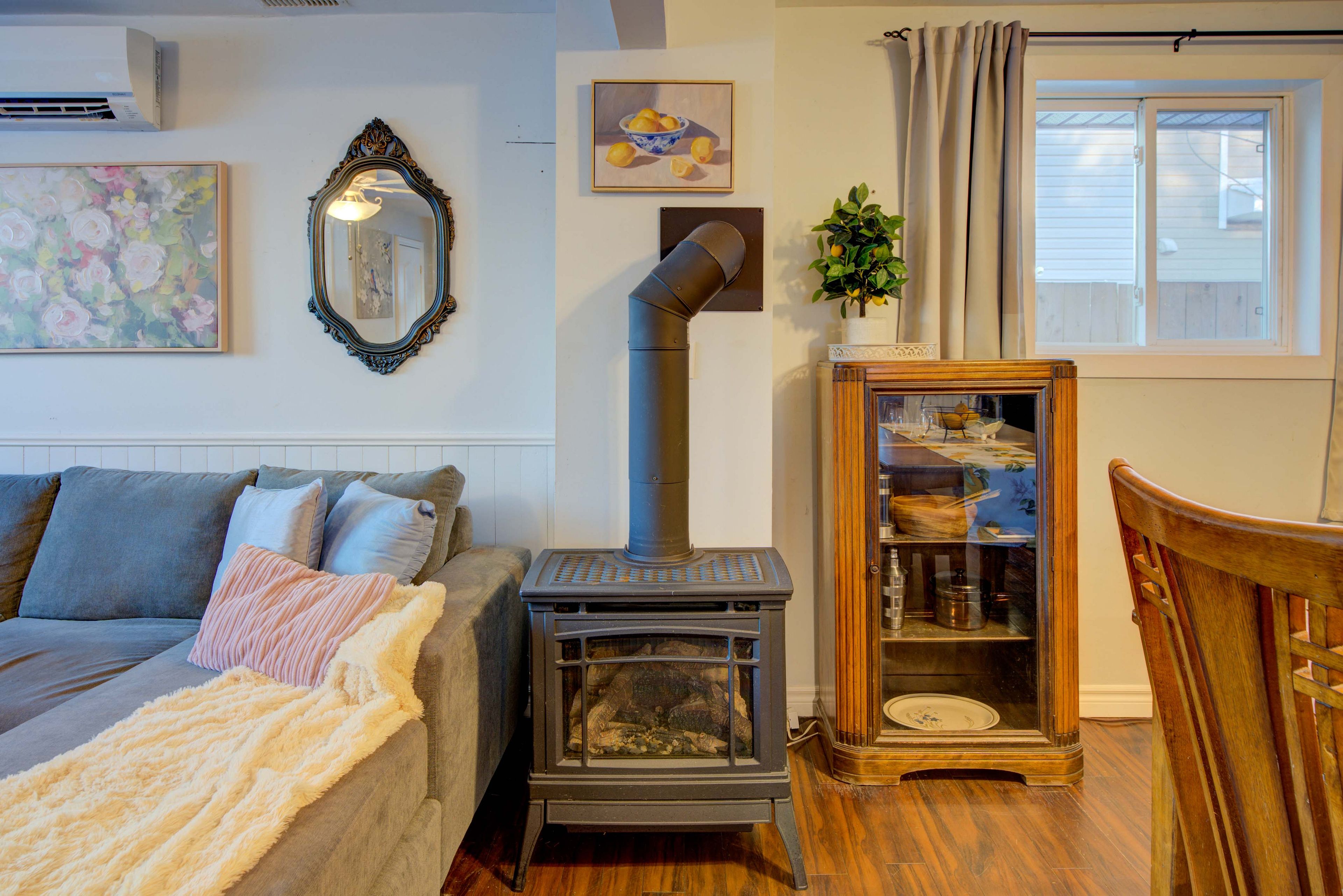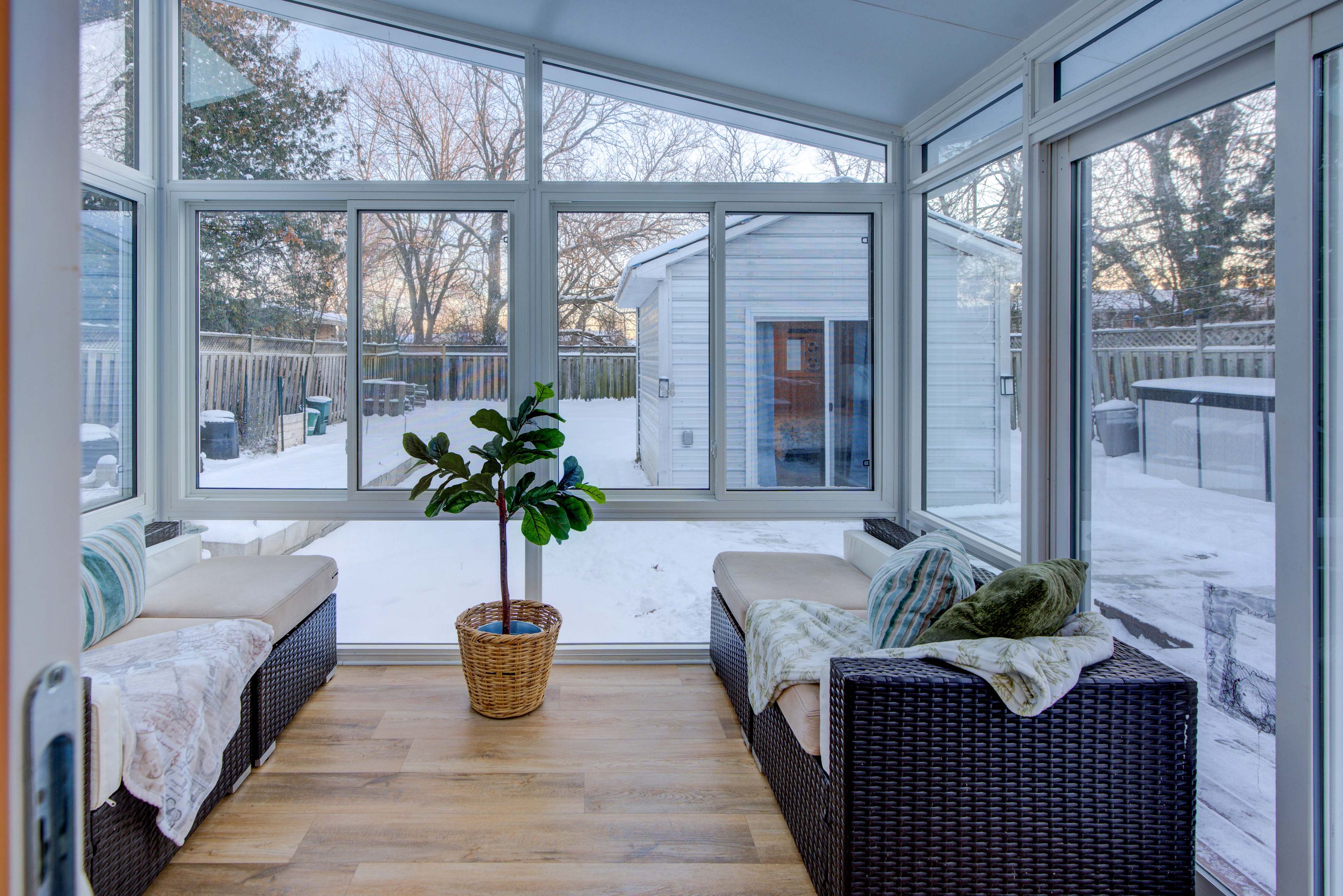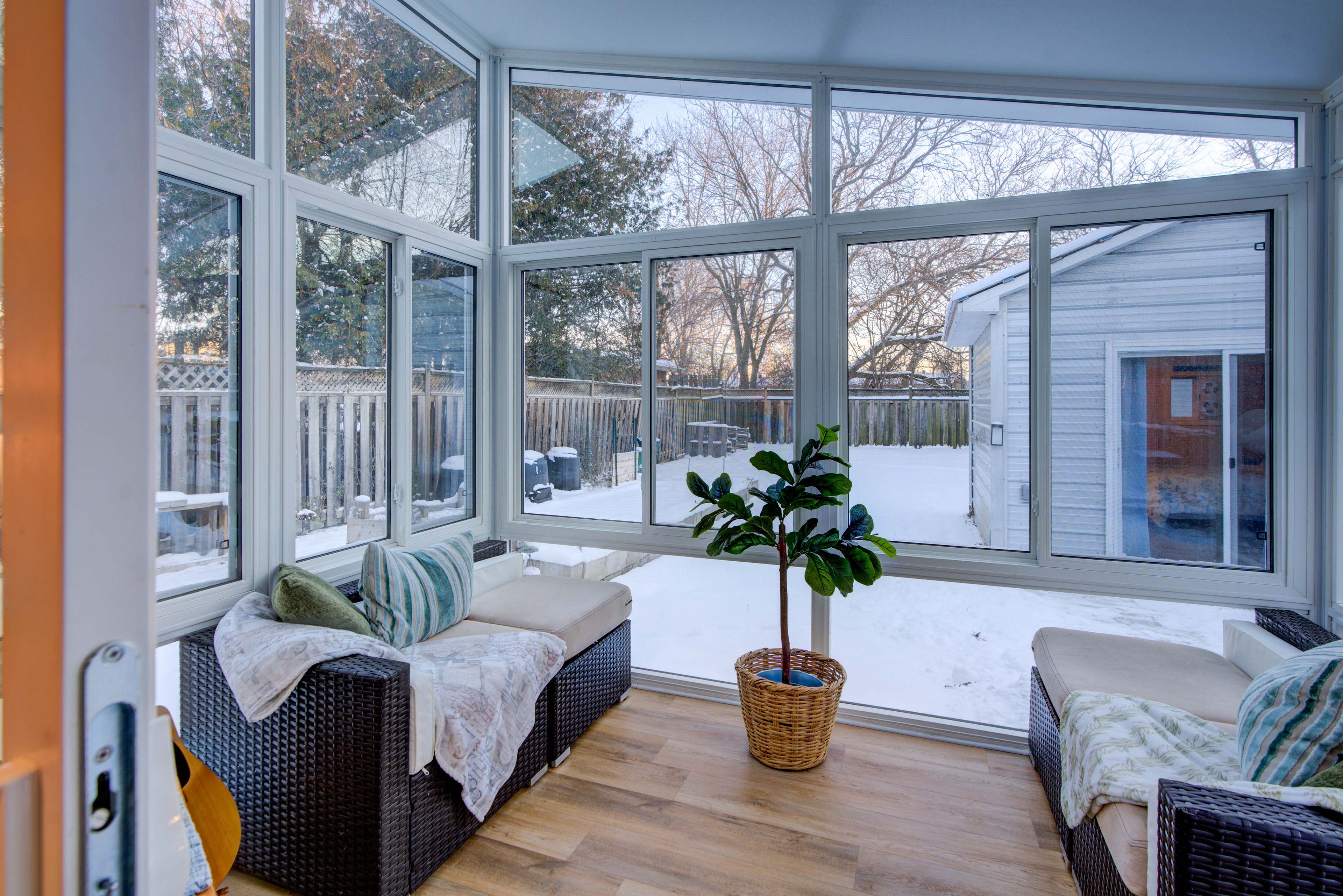 Discover incredible value in this charming, single-family detached home. Perfect for anyone seeking comfort, convenience, and a spacious outdoor retreat. Set on a large, fully fenced rear yard, this property offers privacy and room to truly enjoy the outdoors. Step inside to an inviting open-concept layout featuring a bright living room, dining area, and kitchen-all flowing seamlessly together for easy everyday living. With two comfortable bedrooms, a full bathroom, a dedicated laundry room, and a stunning rear sunroom, everything you need is conveniently located on one level. Just steps from the back door, a detached bunkie provides flexible extra space with r12 insulation and electricity-ideal for guests, a studio, or a quiet home office. An original barn/garage adds even more versatility, perfect for storage, a workshop, or sheltered parking. This home has been thoughtfully updated with a newer furnace (2023), natural gas stove for heating (2020), newer appliances (2020 & 2024), added insulation, upgraded electrical (2025), and a brand-new heat pump (2025). Move in with confidence and enjoy the perfect blend of country charm and city convenience. A must-see opportunity you won't want to miss!
