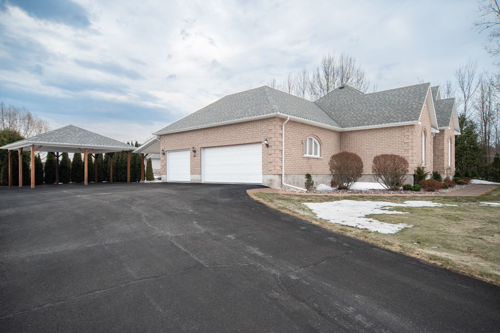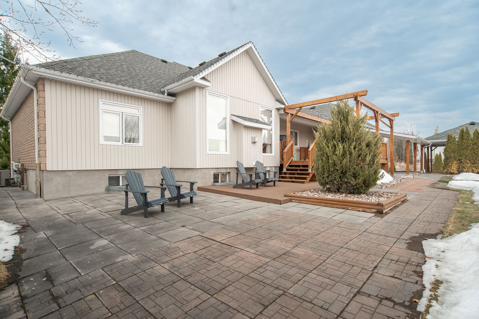 Stunning executive 3+1 bedroom, 3 bathroom home set in a prestigious neighbourhood ideally located between petawawa and pembroke, offering breathtaking views of the ottawa river and deeded water access-perfect for kayaking, paddleboarding, and seadooing. This stately, meticulously maintained home boasts impressive high ceilings. The spectacular living room offers a gas fireplace and vaulted ceiling that creates a warm and inviting focal point. The bright open kitchen features remote-controlled blinds (also in living room) quartz counters and flows seamlessly into the main living space-ideal for both everyday living and entertaining. The spacious primary suite offers a private retreat complete with a walk through closet and ensuite bath. The main bathroom has been tastefully updated and includes a jet tub/shower combo. The finished lower level expands your living space with a fourth bedroom, additional bathroom, large family room, theatre room and a dedicated gym area-perfect for growing families, guests, or multi-functional living. Car enthusiasts and hobbyists will appreciate the attached insulated triple car garage with hot and cold water, along with a convenient double carport. Step outside to a large back deck or hang out in the gazebo, perfect for relaxing or hosting, surrounded by a beautifully maintained yard featuring a patio and full irrigation system installed in 2024. This immaculate home has been lovingly cared for and extensively updated, including shingles on the house (2021), carport shingles (2025), water softener (2022), hot water tank (2022), duct cleaning (2022), well pump (2024), gas furnace (2024), and updated main floor window panes (2022), along with new lighting and fresh paint throughout. A rare opportunity to own a turn-key home with upscale features, exceptional maintenance, and deeded access to the ottawa river in one of the area's most sought-after communities.