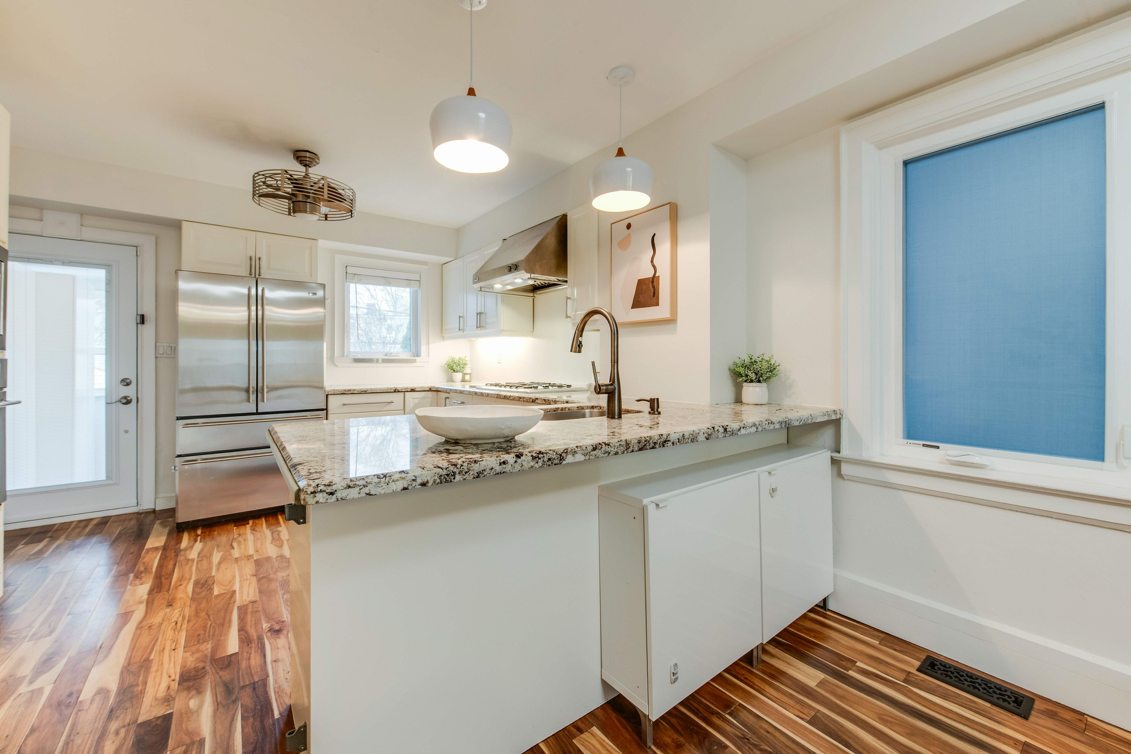 • Open-concept main floor featuring modern kitchen and rare powder room.