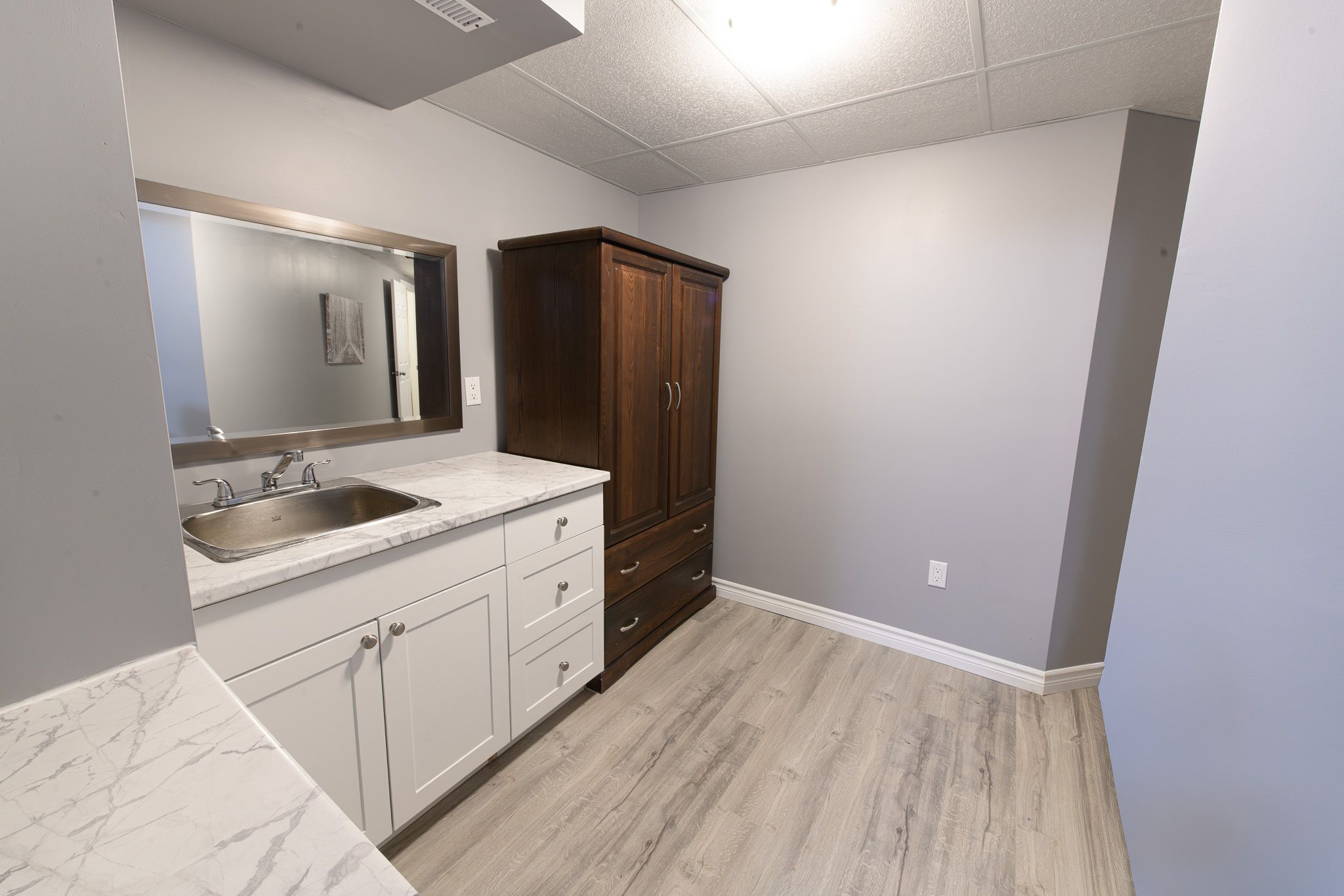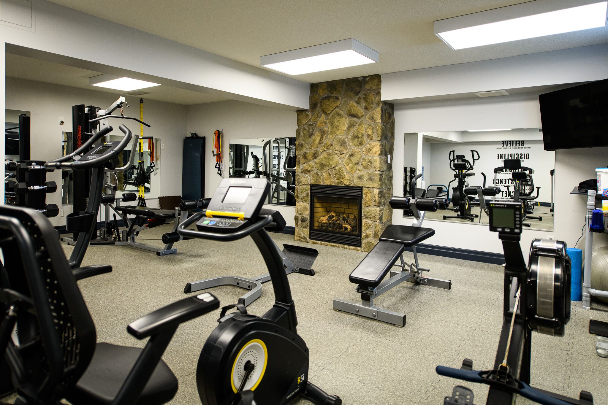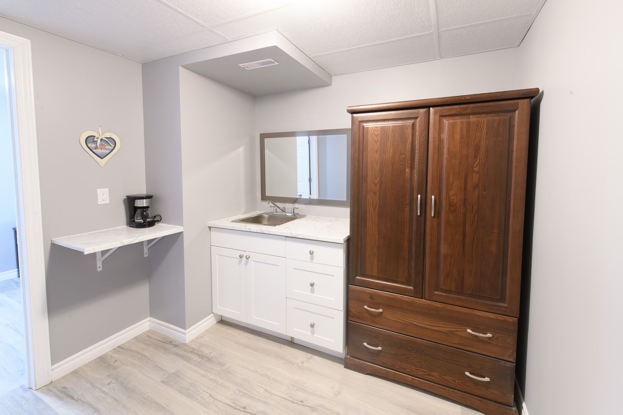 • Finished lower level with recreation area and kitchenette for guests.