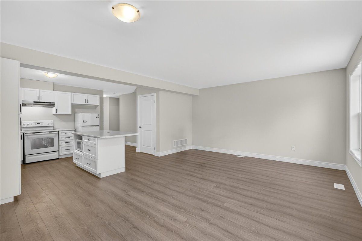 • Bright, open-concept main floor connects kitchen, dining, and living areas.