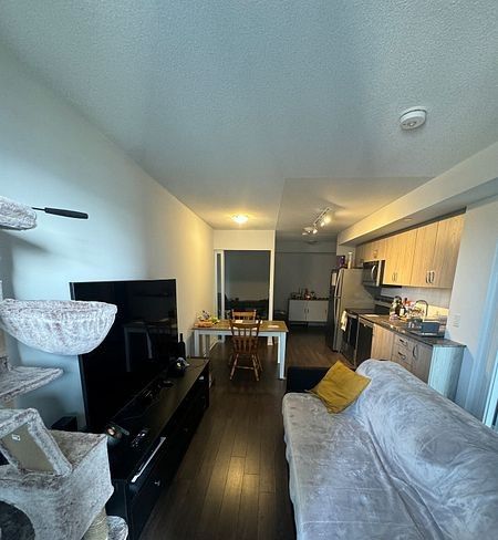 Welcome to this beautifully condo offers 2 spacious bedrooms, 2 full bathrooms, and a den. Suit perfectly for a home office or a dining space. The primary bedroom features a private ensuite, large windows, lots of natural light and showcase breathtaking views. Modern finishes throughout, laminate flooring, countertops with stylish backsplash, stainless steel appliances. Private balcony offers your own outdoor retreat-not shared with other unit. Additionally in-suite laundry, a owned parking spot, and 2 (two) storage locker. You will love the building's luxurious rooftop pool for relaxing or entertaining against the city skyline. Located in one of toronto's most vibrant neighborhoods, steps from public transit, schools parks, al-jannah mosque, restaurants, shopping centers, recreational facilities, groceries, min to hwy 401, building amenities such as concierge, guest suites, gym, outdoor pool, party/meeting room, etc. Don't miss this opportunity to live in a space that has lot to offer! Must see