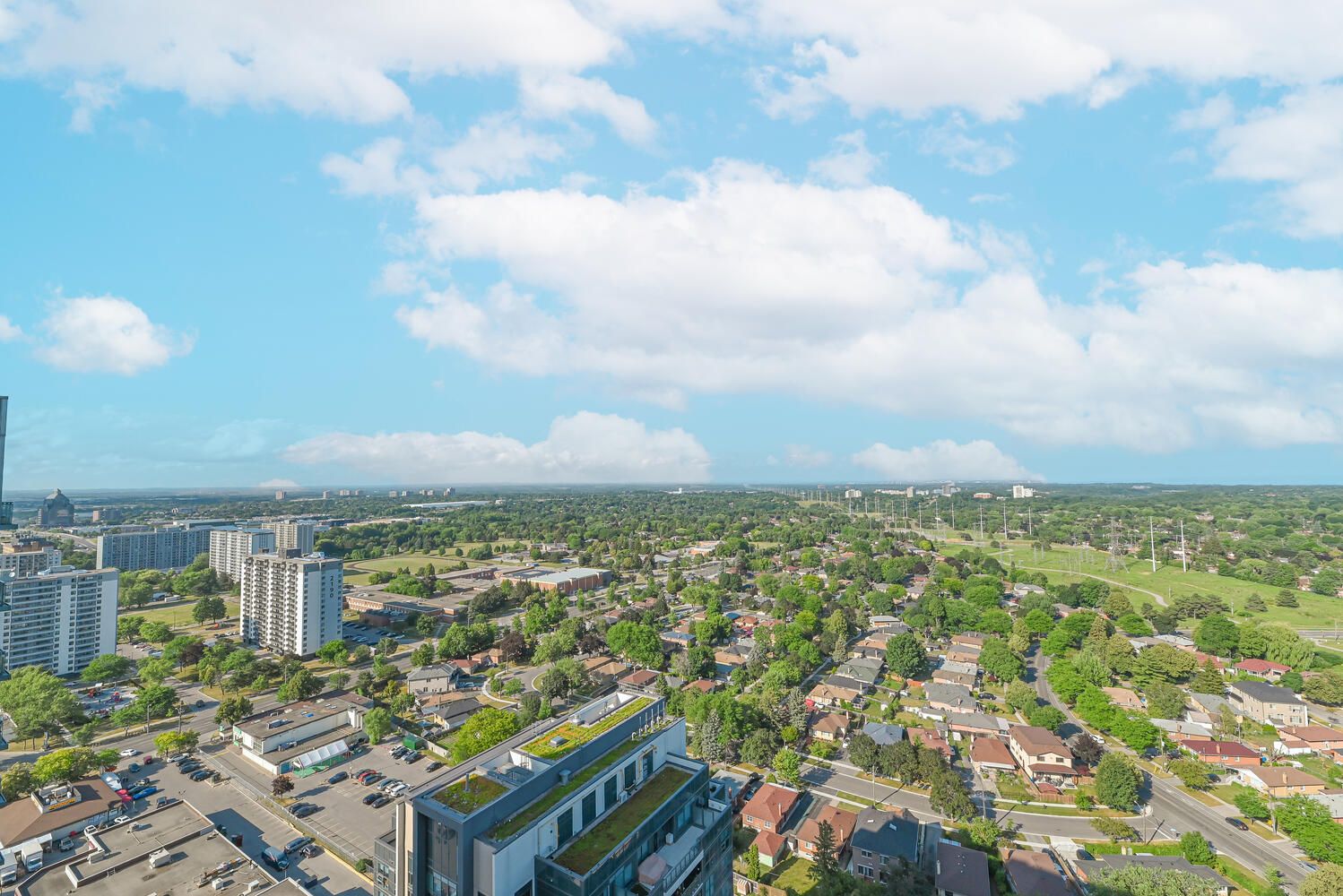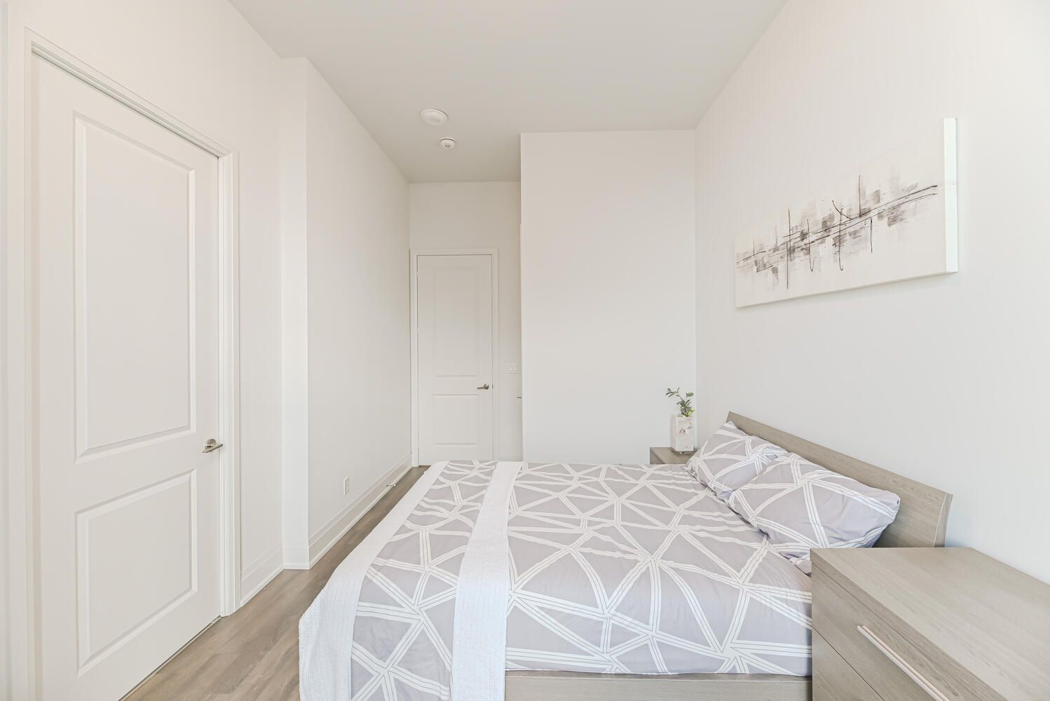 Welcome to this beautifully condo pan-house 2 + 1 spaciousbedrooms, 2 full bathrooms, and a den. Suit perfectly for a homeoffice or a dining space. The primary bedroom features a privateensuite, large windows, lots of natural light and showcasebreathtaking views. Modern finishes throughout, laminate flooring,countertops with stylish backsplash, stainless steel appliances. Private balcony offers your own outdoor retreat-not shared withother unit. Additionally in-suite laundry, a owned two parkingspots. You will love the building's luxurious rooftop pool forrelaxing or entertaining against the city skyline. Located in oneof toronto's most vibrant neighborhoods, steps from publictransit, parks, restaurants, shopping centers, recreationalfacilities, mosque, groceries, min to hwy 401, schools, buildingamenities such as concierge, guest suites, gym, outdoor pool,party/meeting room, etc. Don't miss this opportunity! Must see