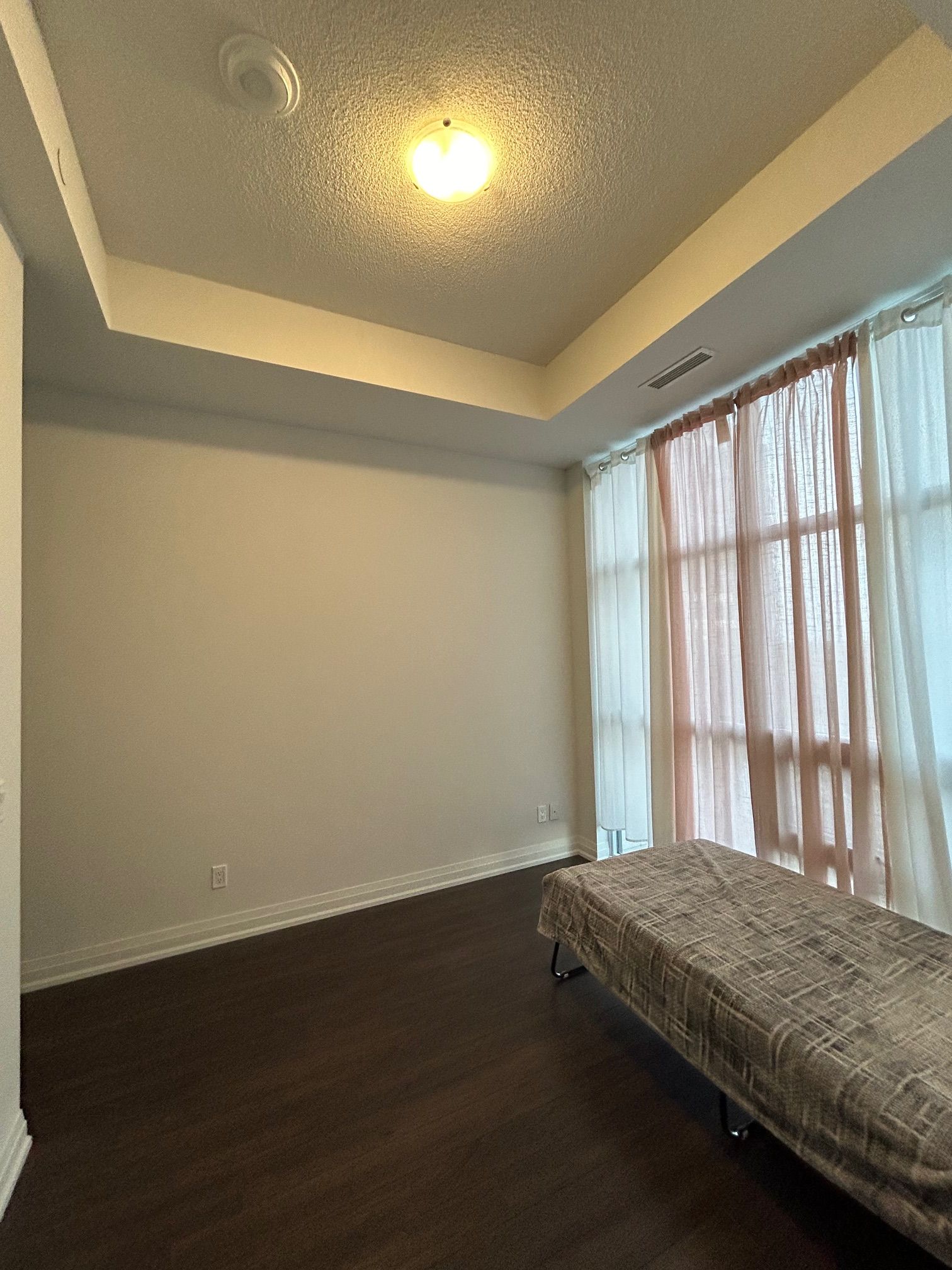 • Modern 725 sq. ft. unit with high 11-foot ceilings and floor-to-ceiling windows.