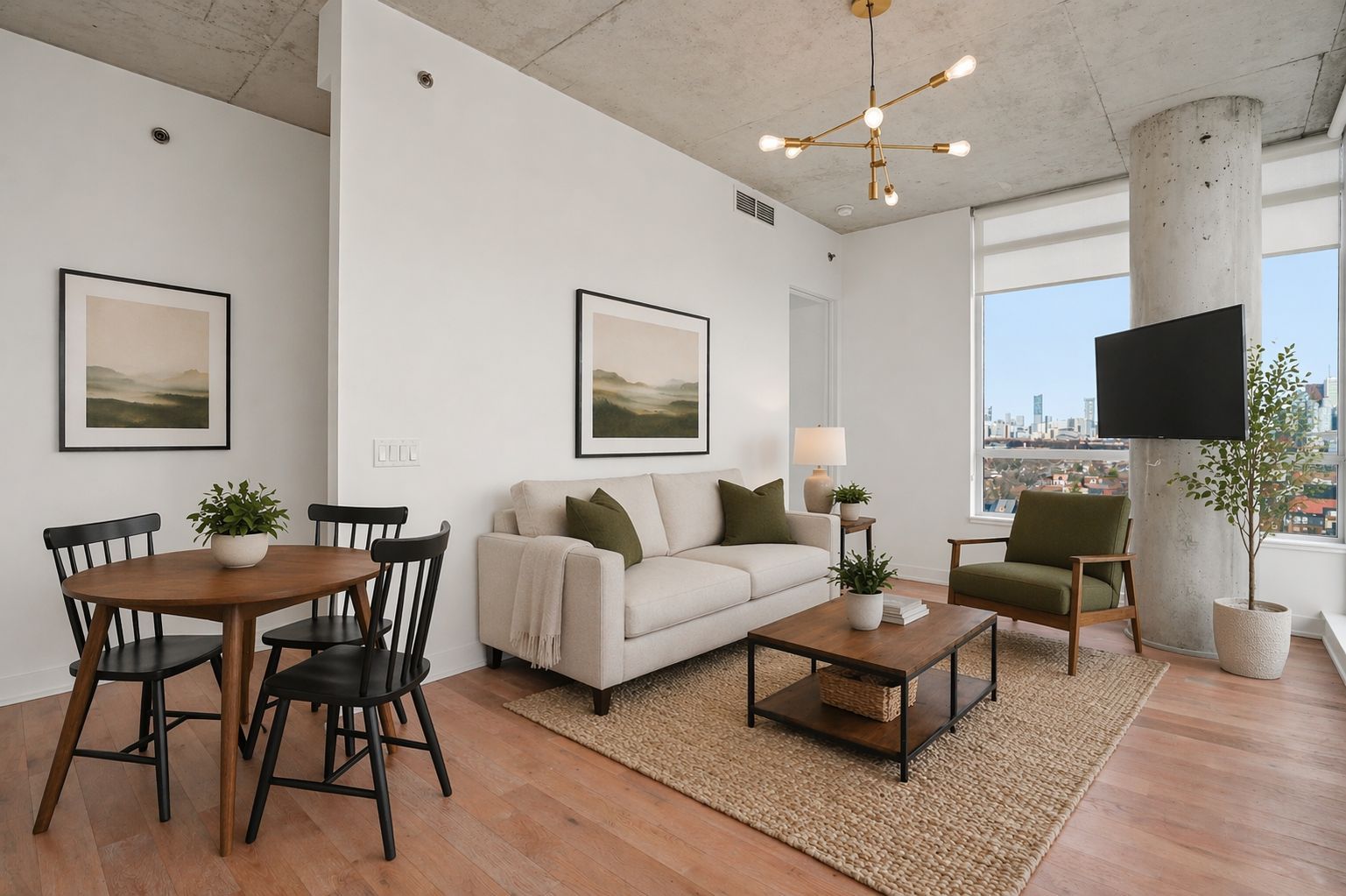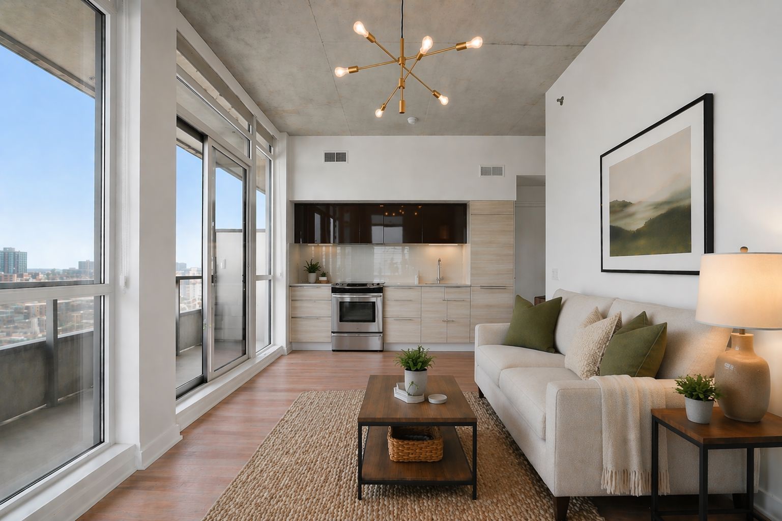 • Open-concept layout with floor-to-ceiling windows for ample light.