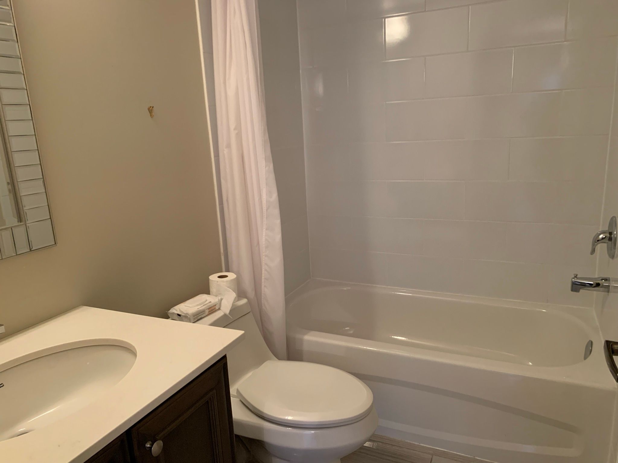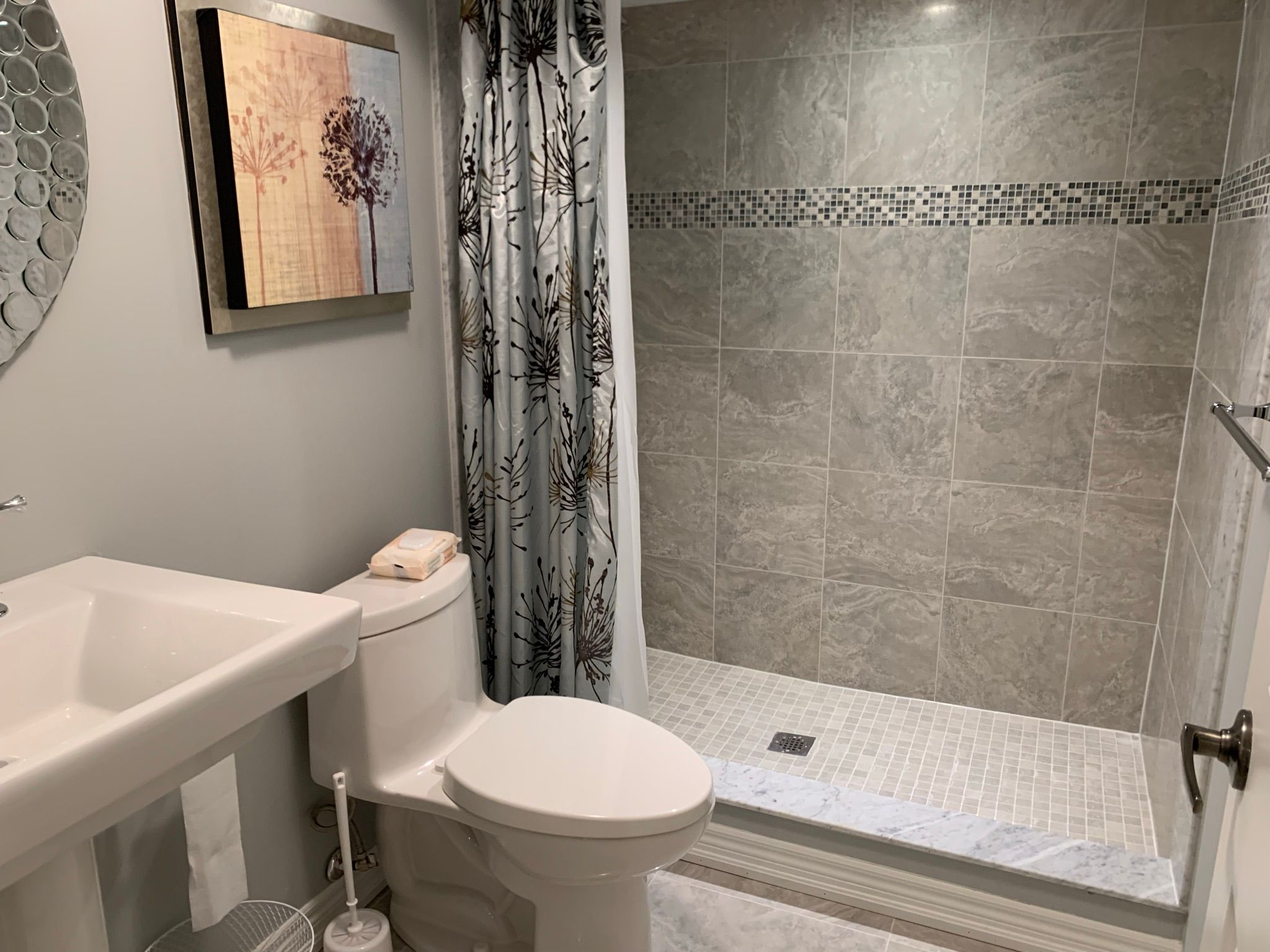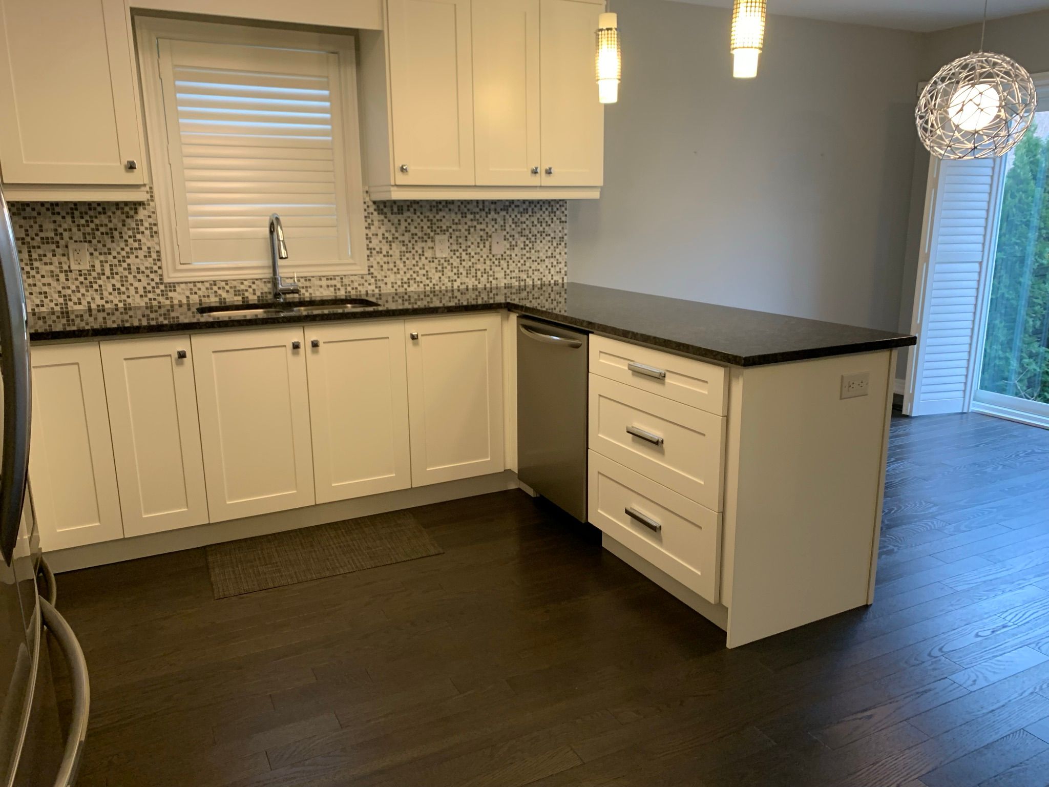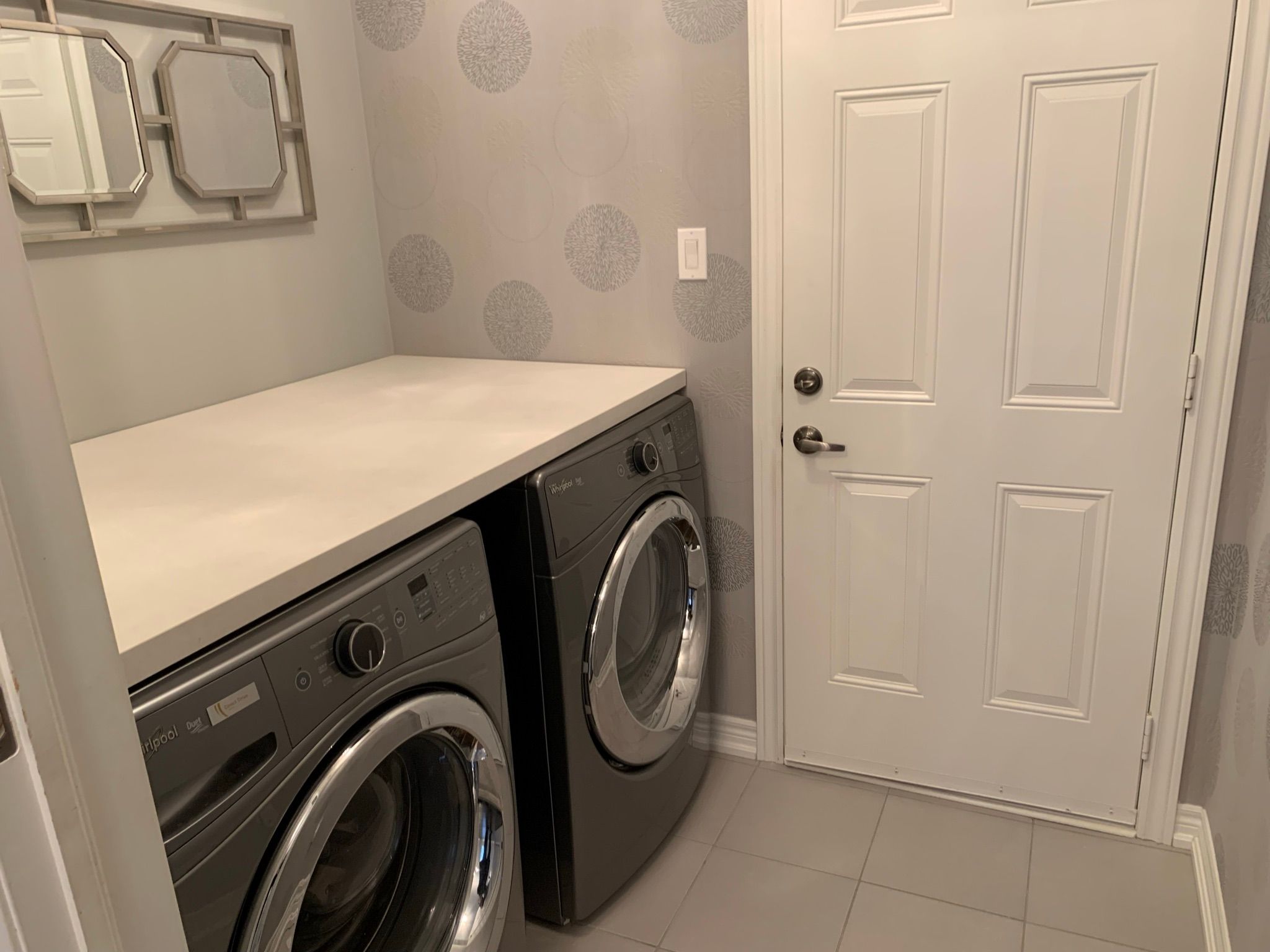 • Open concept kitchen features modern quartz countertops and stainless appliances.